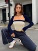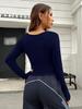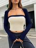 Ropa transfronteriza para mujer 2024, top sin cuello con costuras de colores contrastantes europeos y americanos, top sexy, dulce, picante, ajustado, de manga larga corta