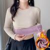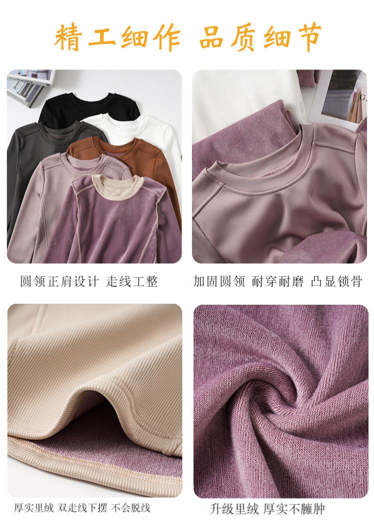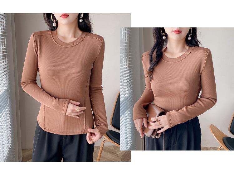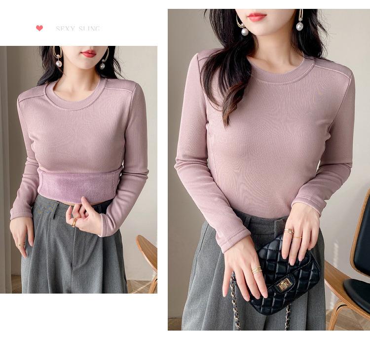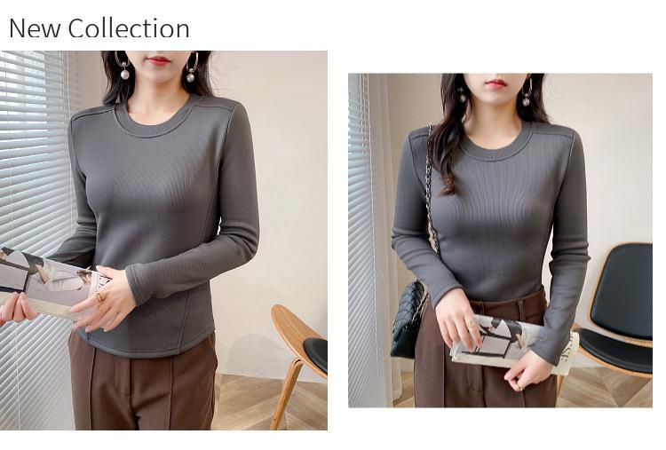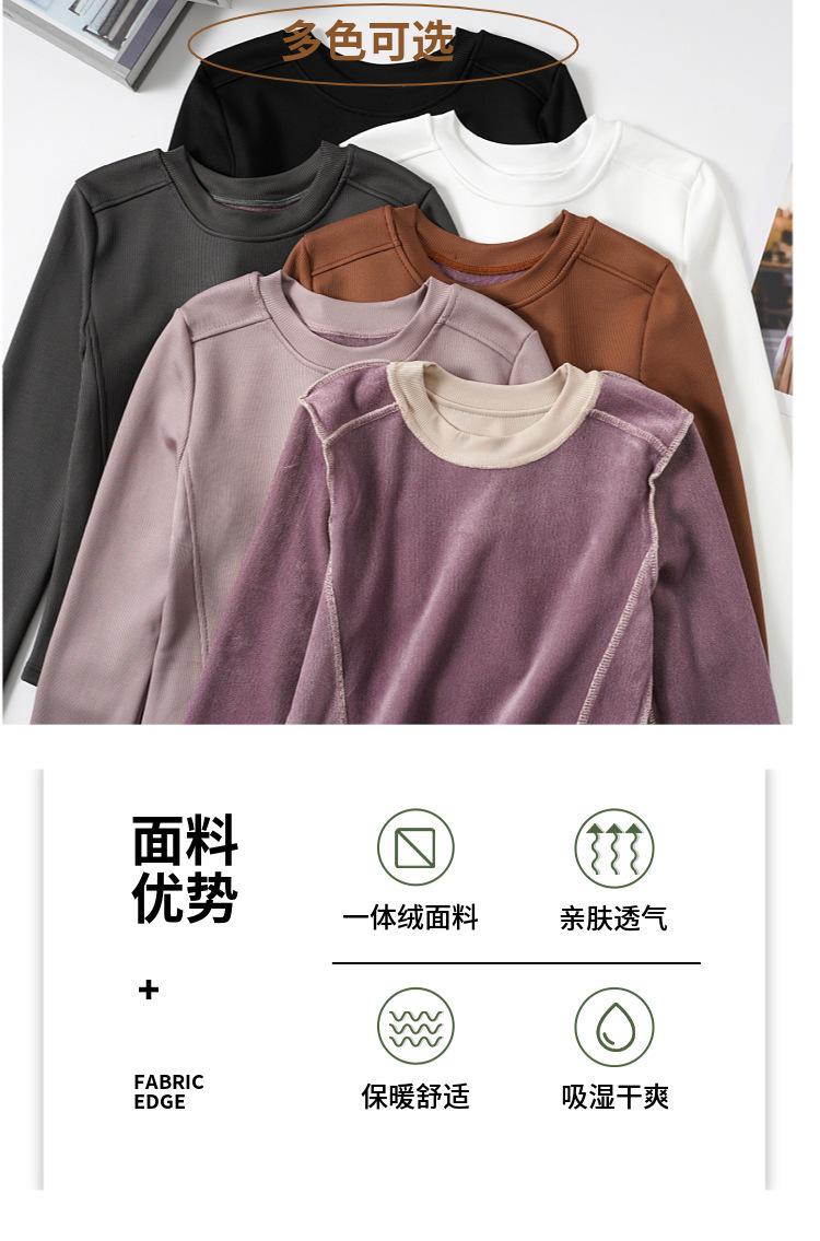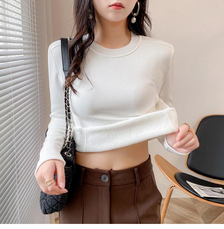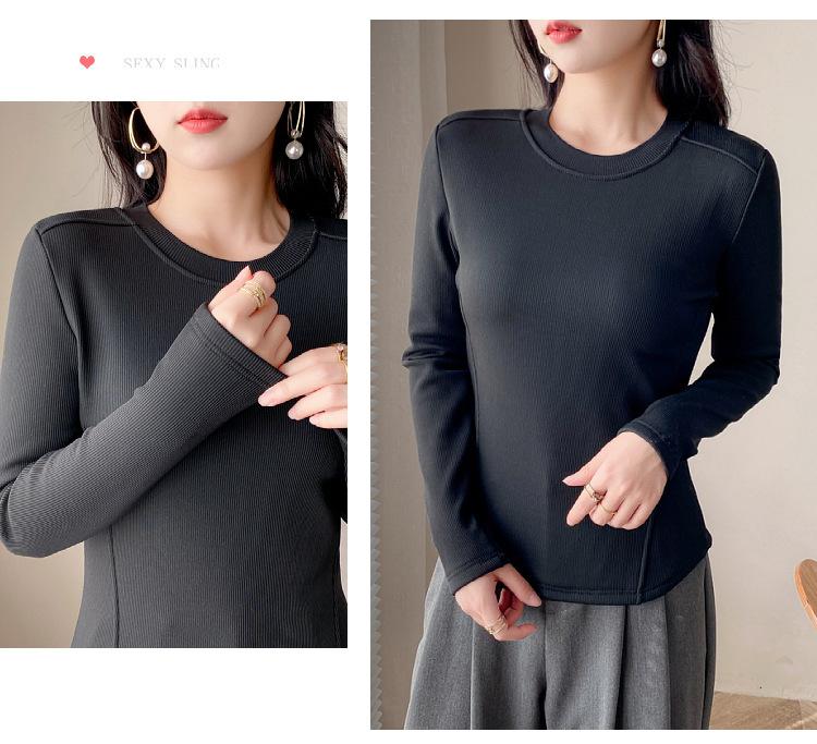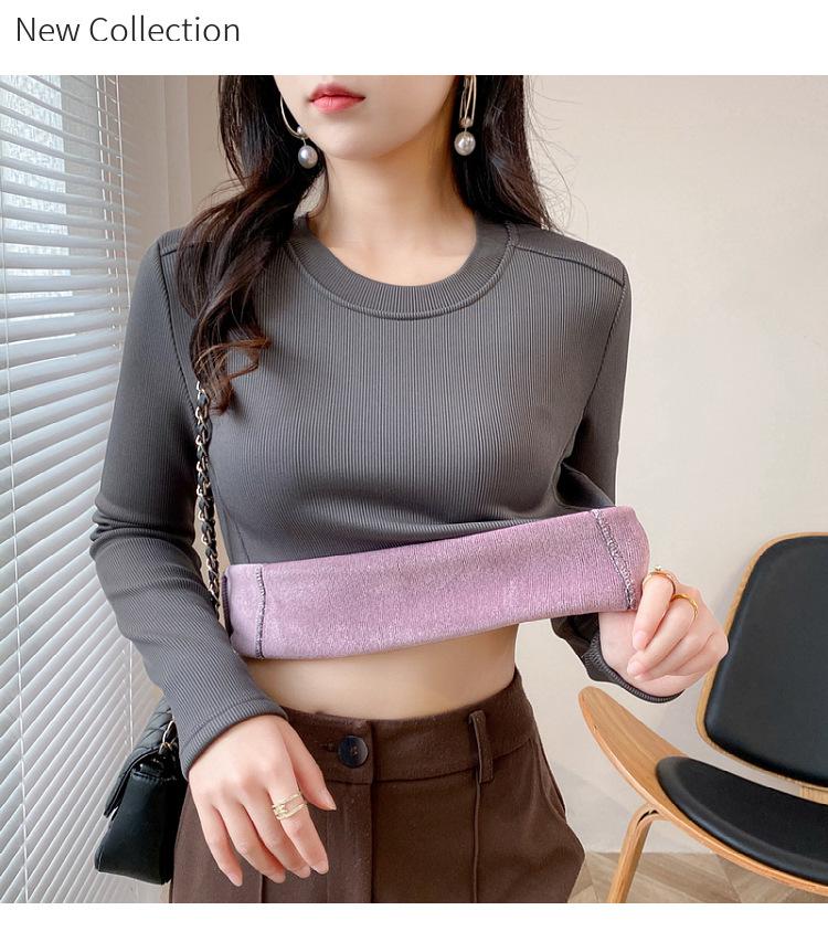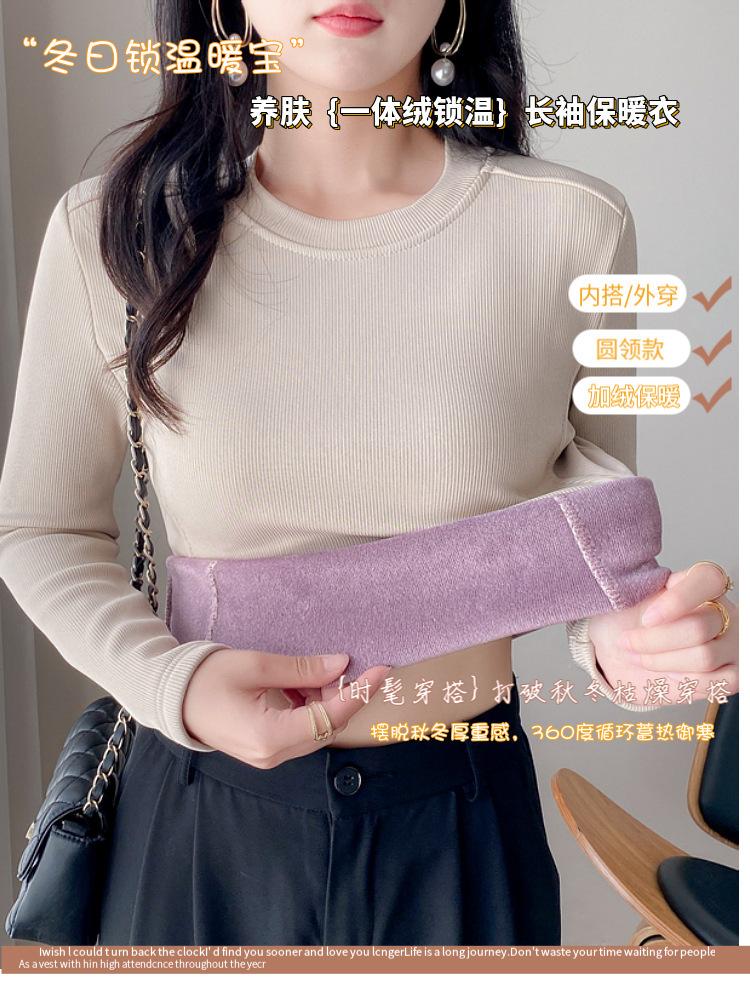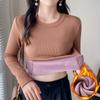 Top Térmico de Terciopelo de Una Pieza con Forro Polar de Manga Larga Camiseta Base Otoño e Invierno 2025 Principios de Otoño Nuevo Cuello Redondo Top Interior y Exterior