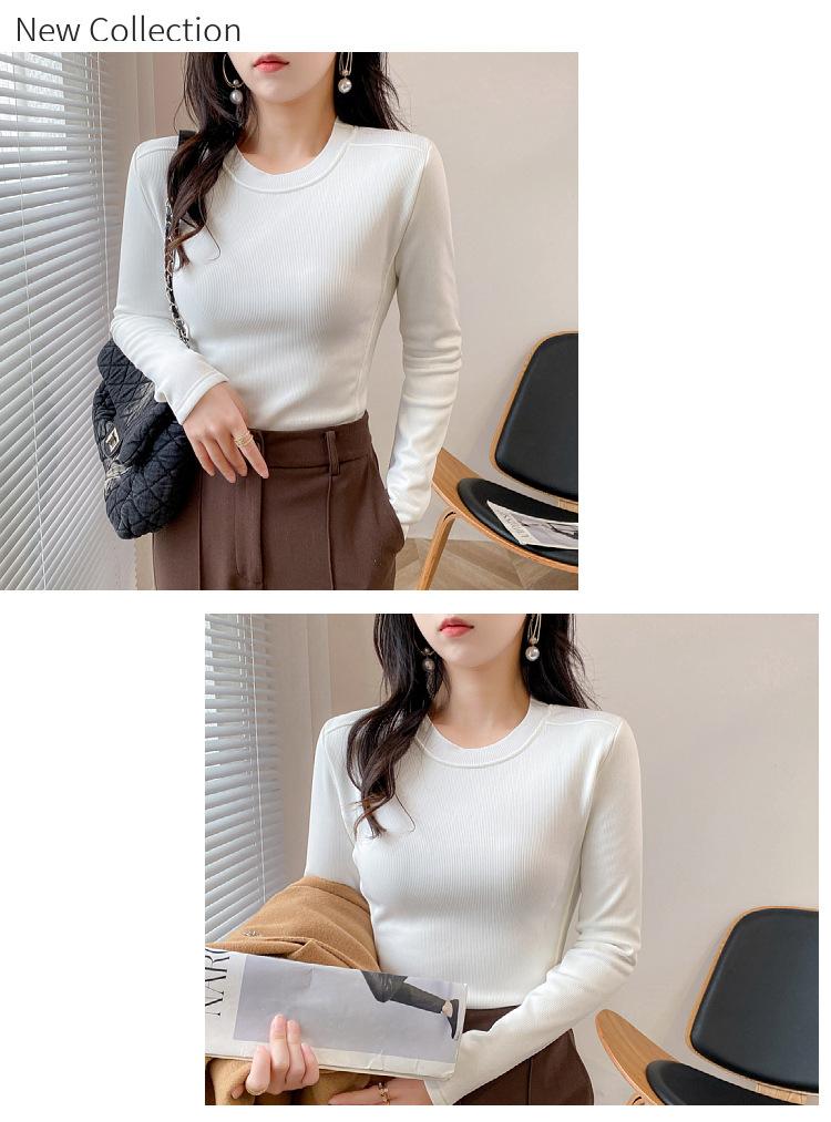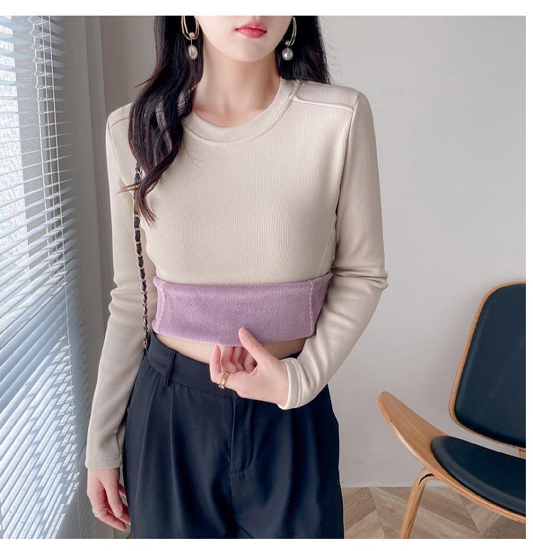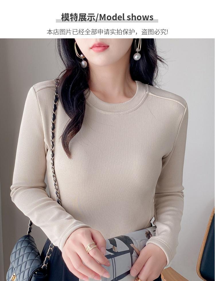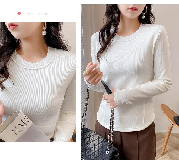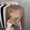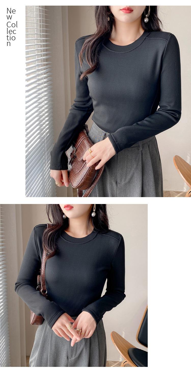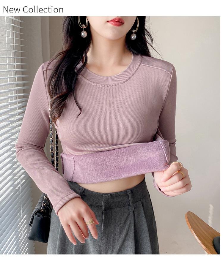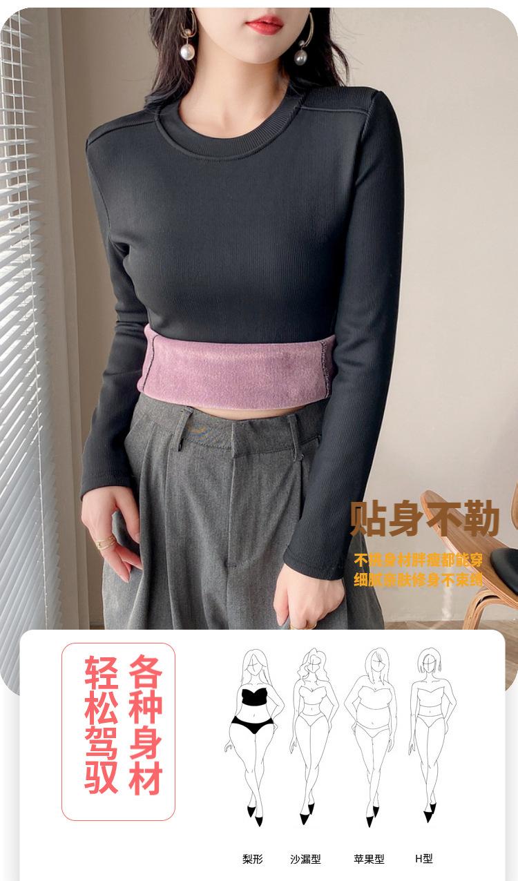 Top Térmico de Terciopelo de Una Pieza con Forro Polar de Manga Larga Camiseta Base Otoño e Invierno 2025 Principios de Otoño Nuevo Cuello Redondo Top Interior y Exterior
