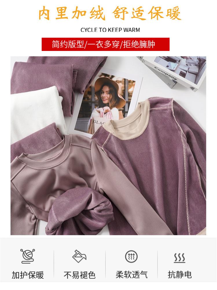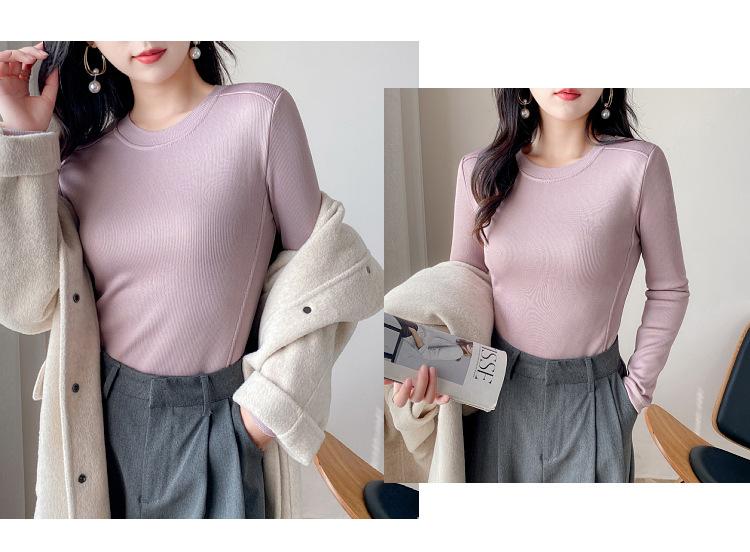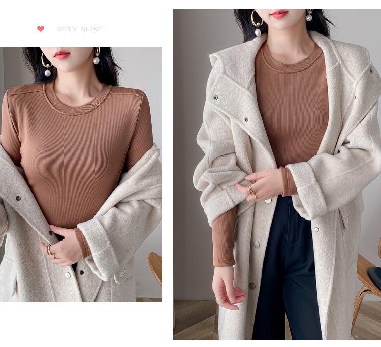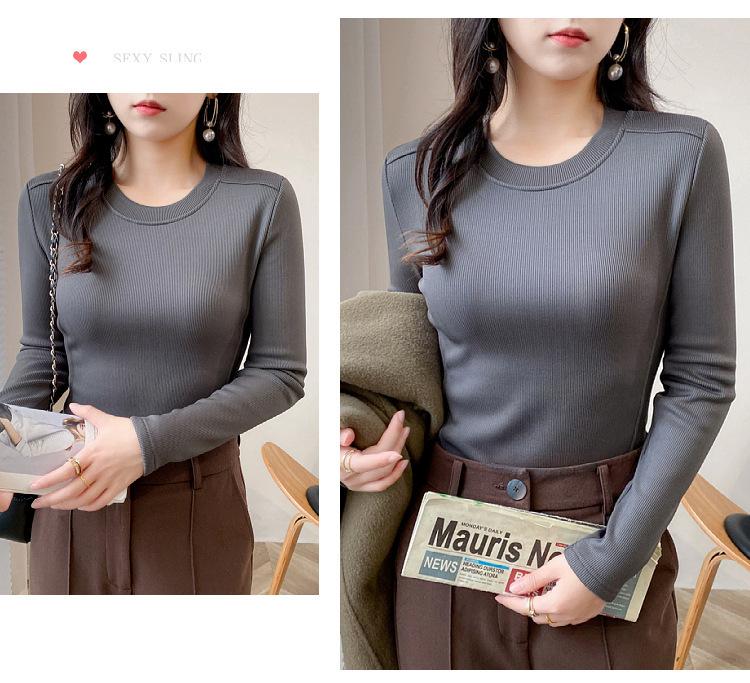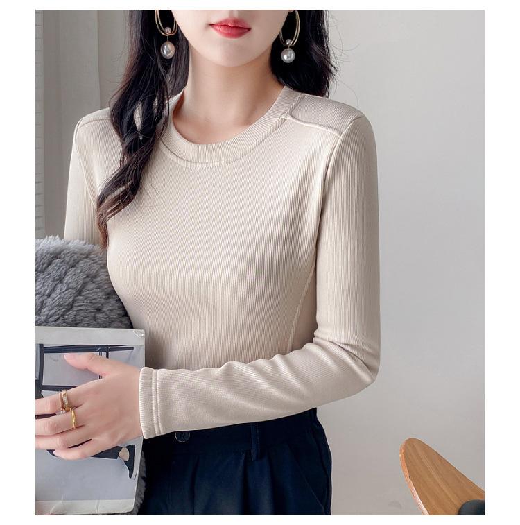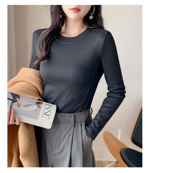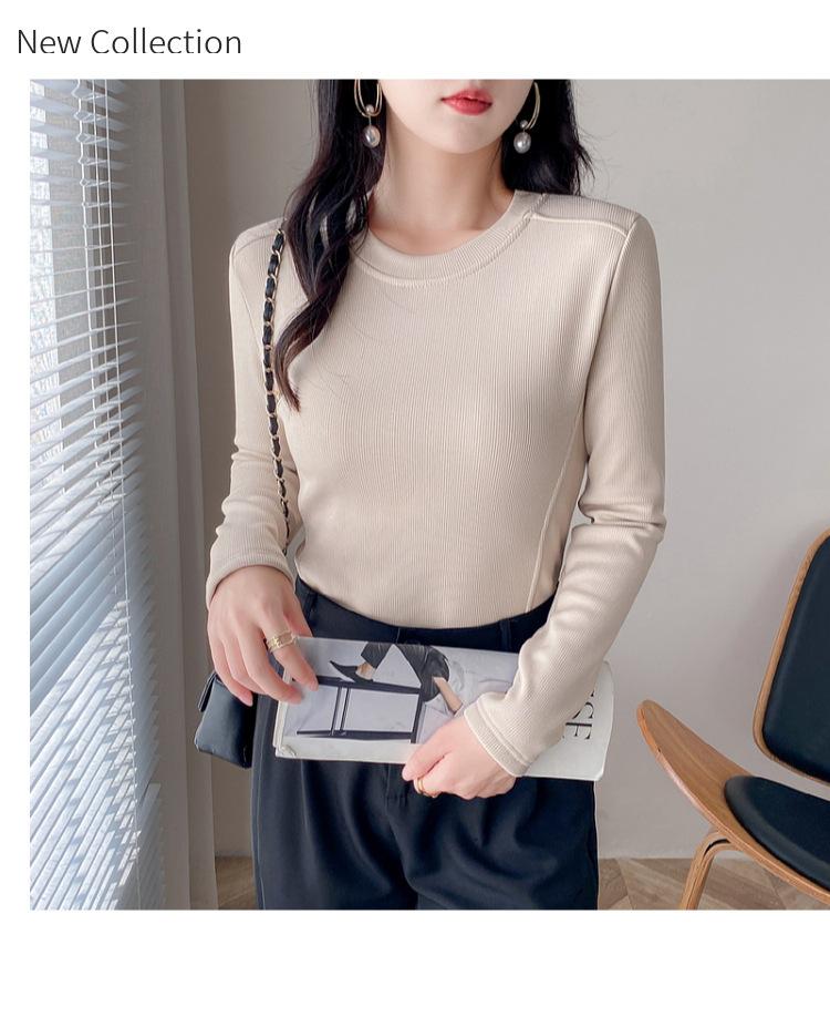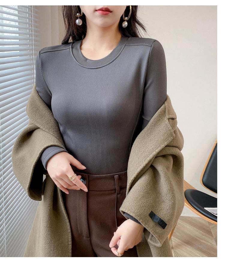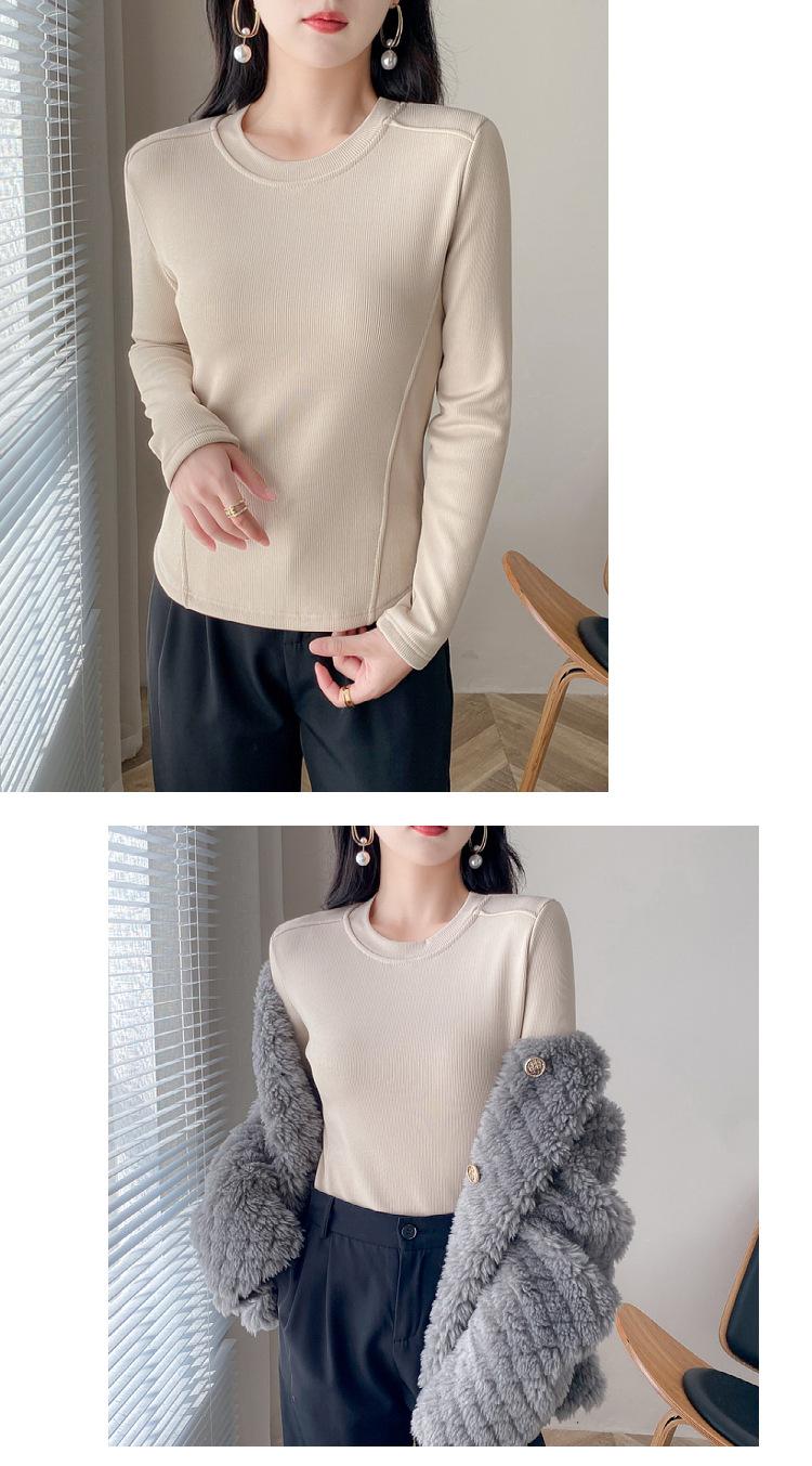 Top Térmico de Terciopelo de Una Pieza con Forro Polar de Manga Larga Camiseta Base Otoño e Invierno 2025 Principios de Otoño Nuevo Cuello Redondo Top Interior y Exterior