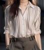 Camisa de manga larga para mujer, primavera 2025, nuevo estilo, moda de nicho, estilo retro, estilo extranjero, blusa holgada a rayas, primavera y otoño, tendencia