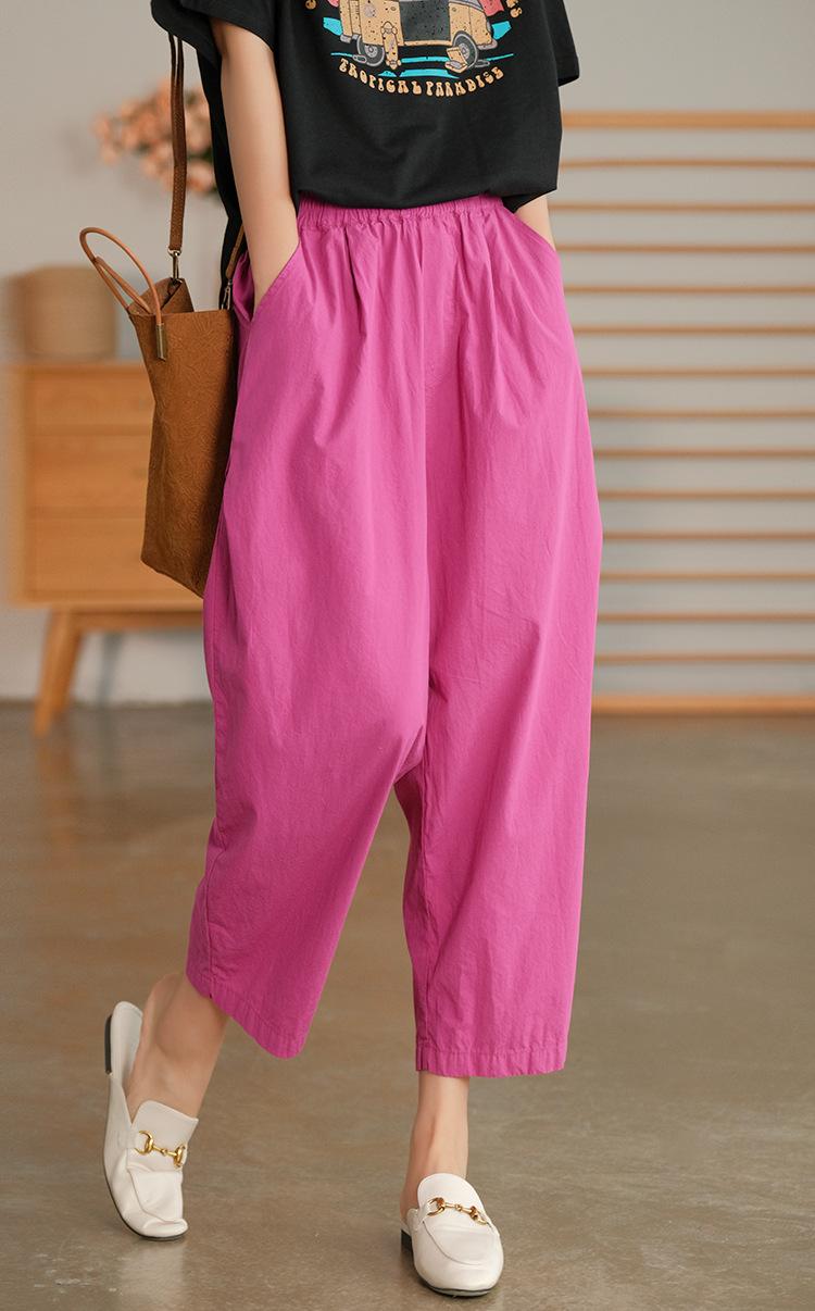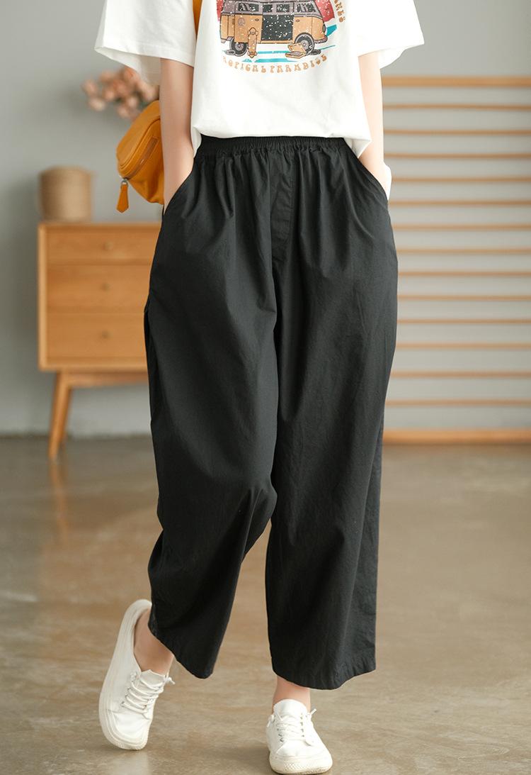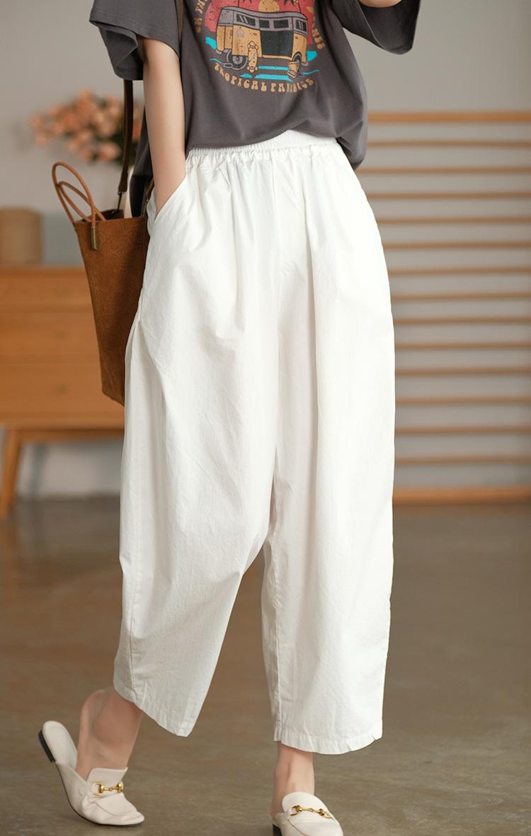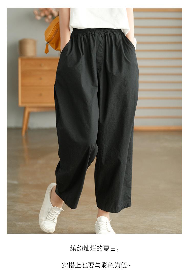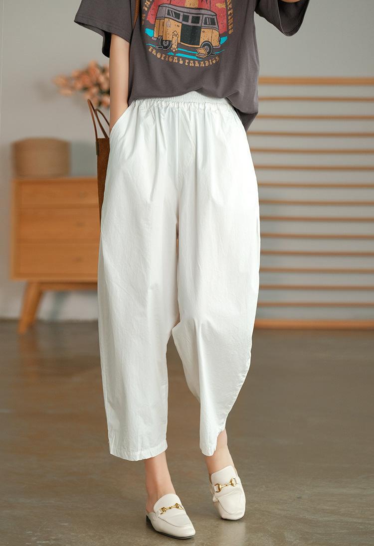 Pantalones Harlan holgados de algodón y lino de color liso, estilo artístico, hasta el tobillo, informales, para mujer, verano 2024, n.° 620