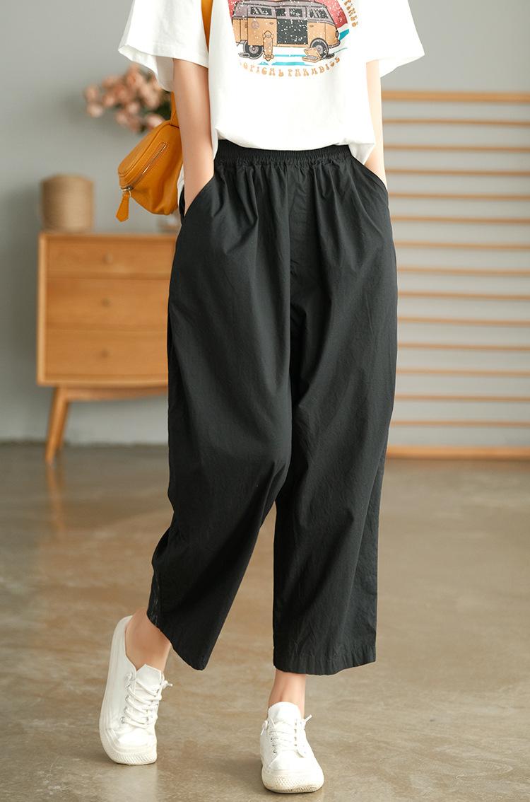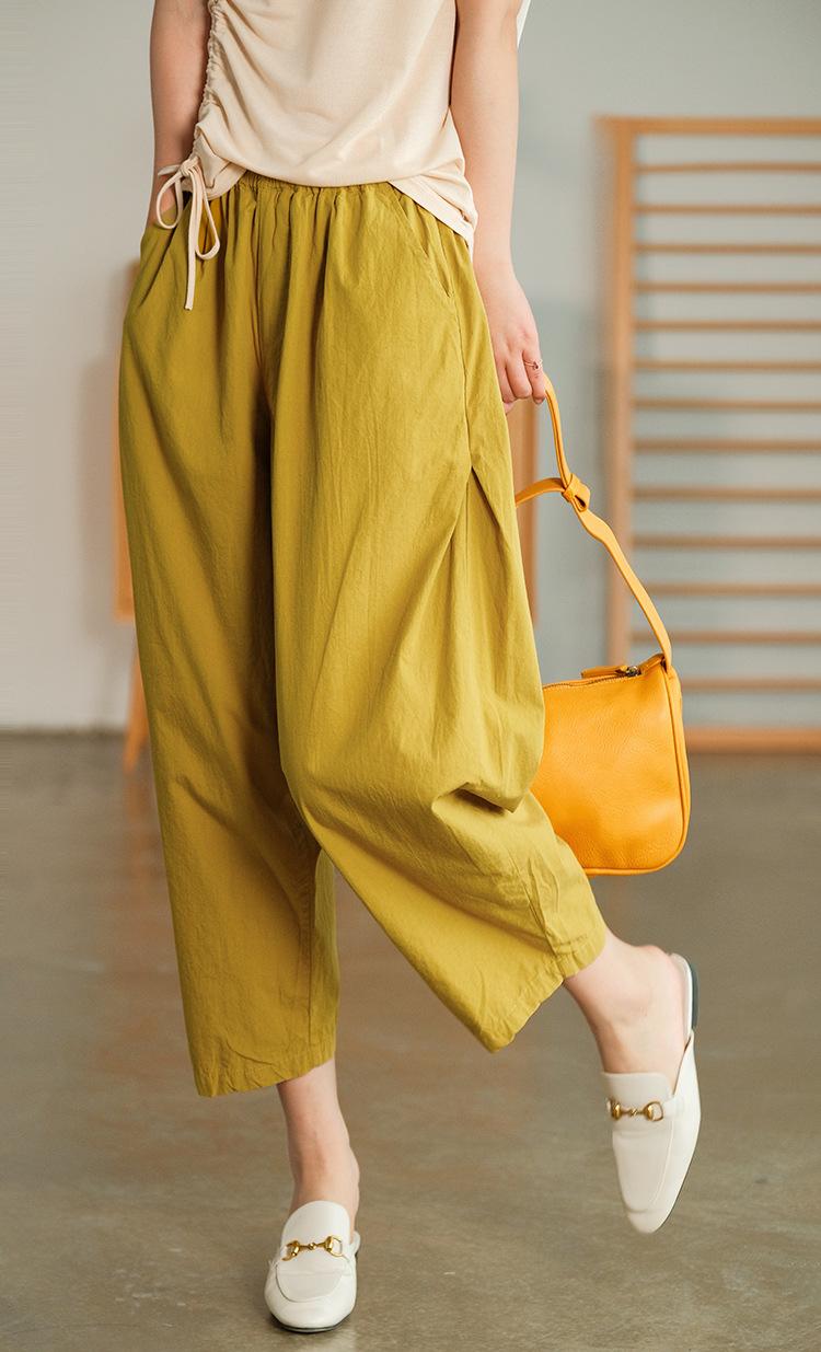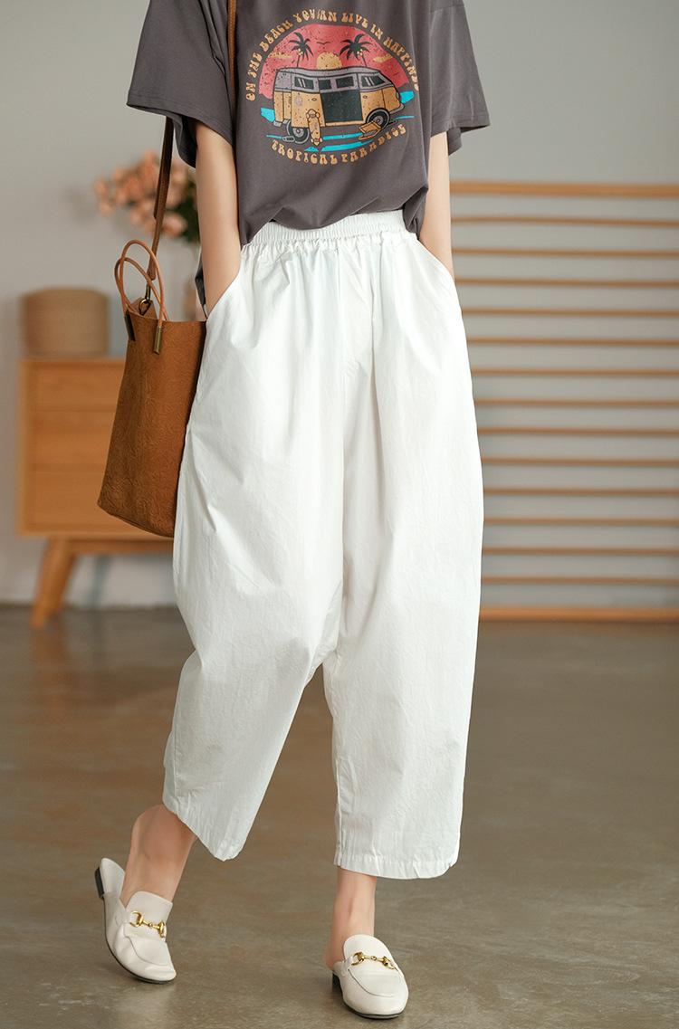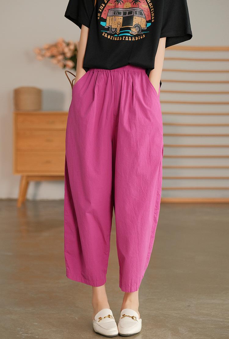 Pantalones Harlan holgados de algodón y lino de color liso, estilo artístico, hasta el tobillo, informales, para mujer, verano 2024, n.° 620
