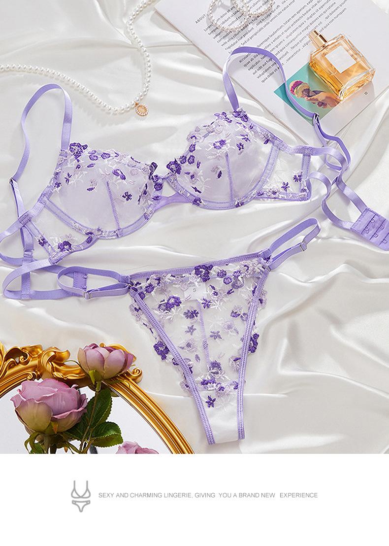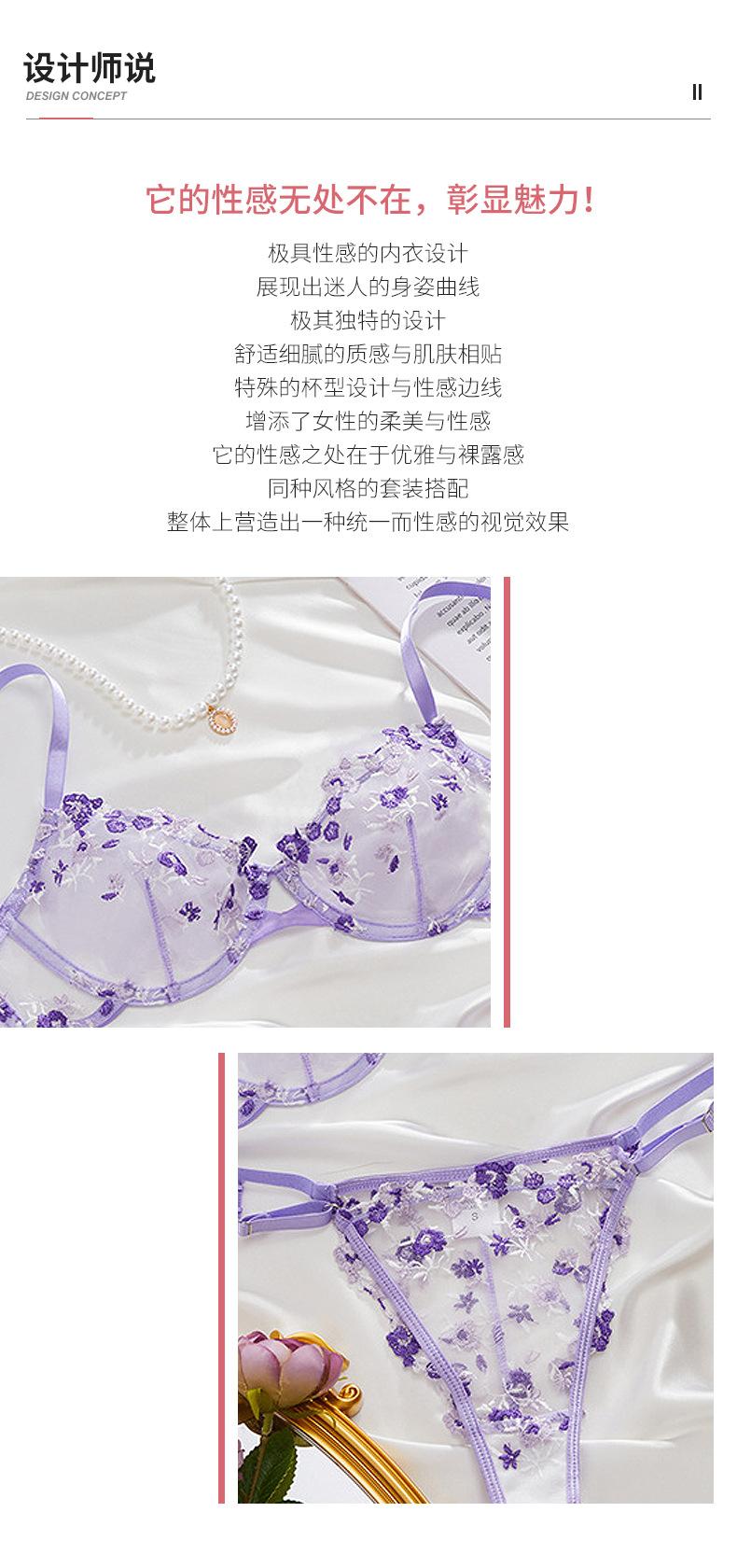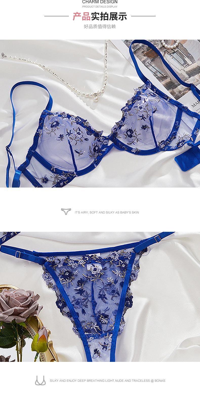 Ropa interior sexy ultrafina transfronteriza de Europa y Estados Unidos para niñas, encaje bordado, encaje puro, quiero reunir sujetador, ropa interior, traje de ropa interior