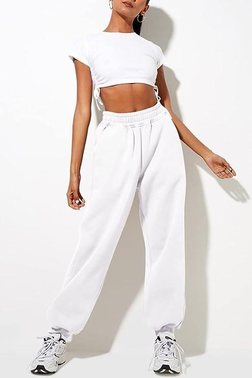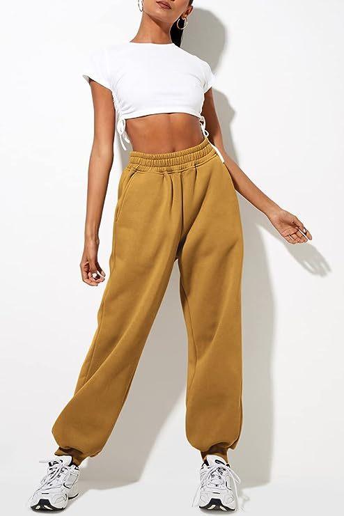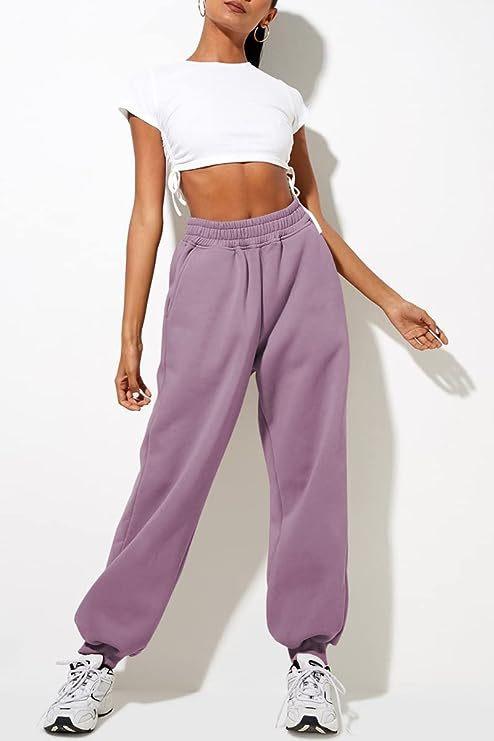 Pantalones deportivos ajustados, holgados y casuales de cintura alta para mujer de Amazon 2023