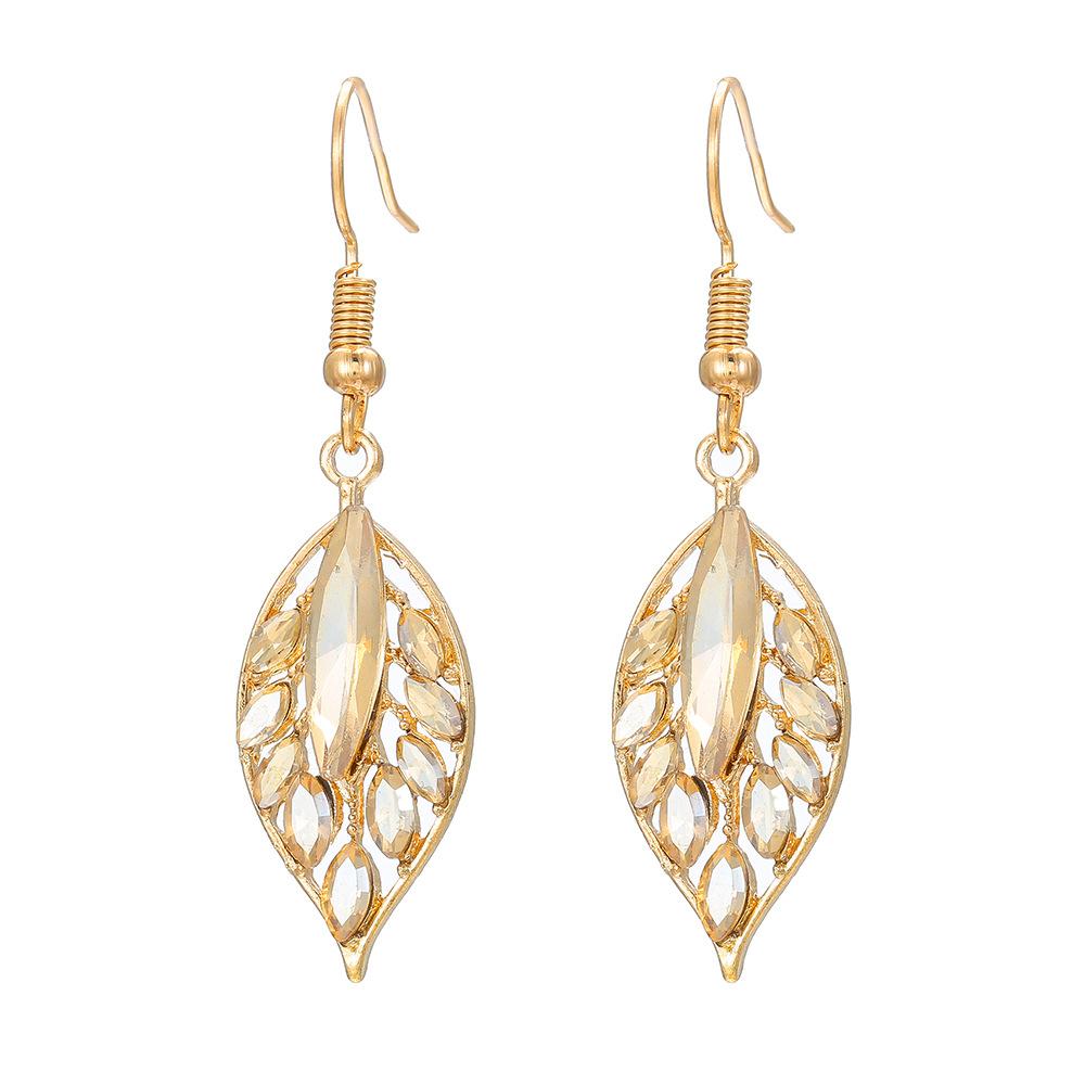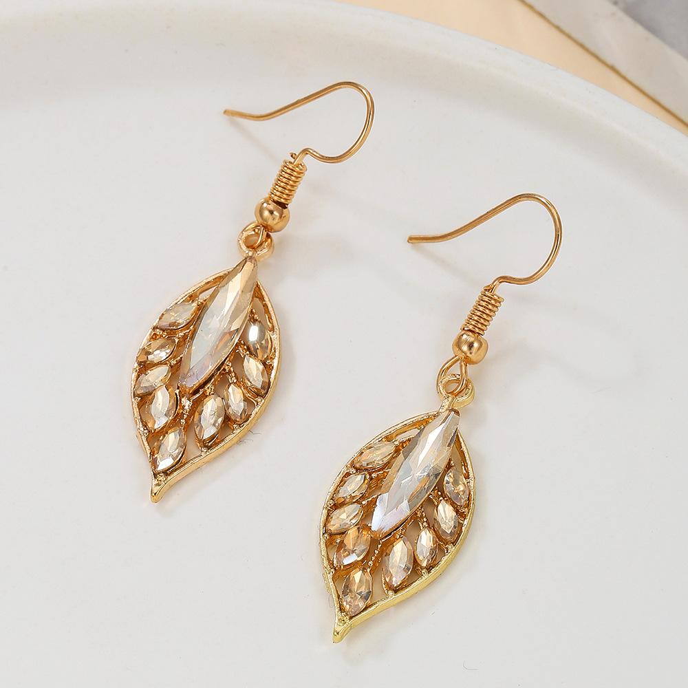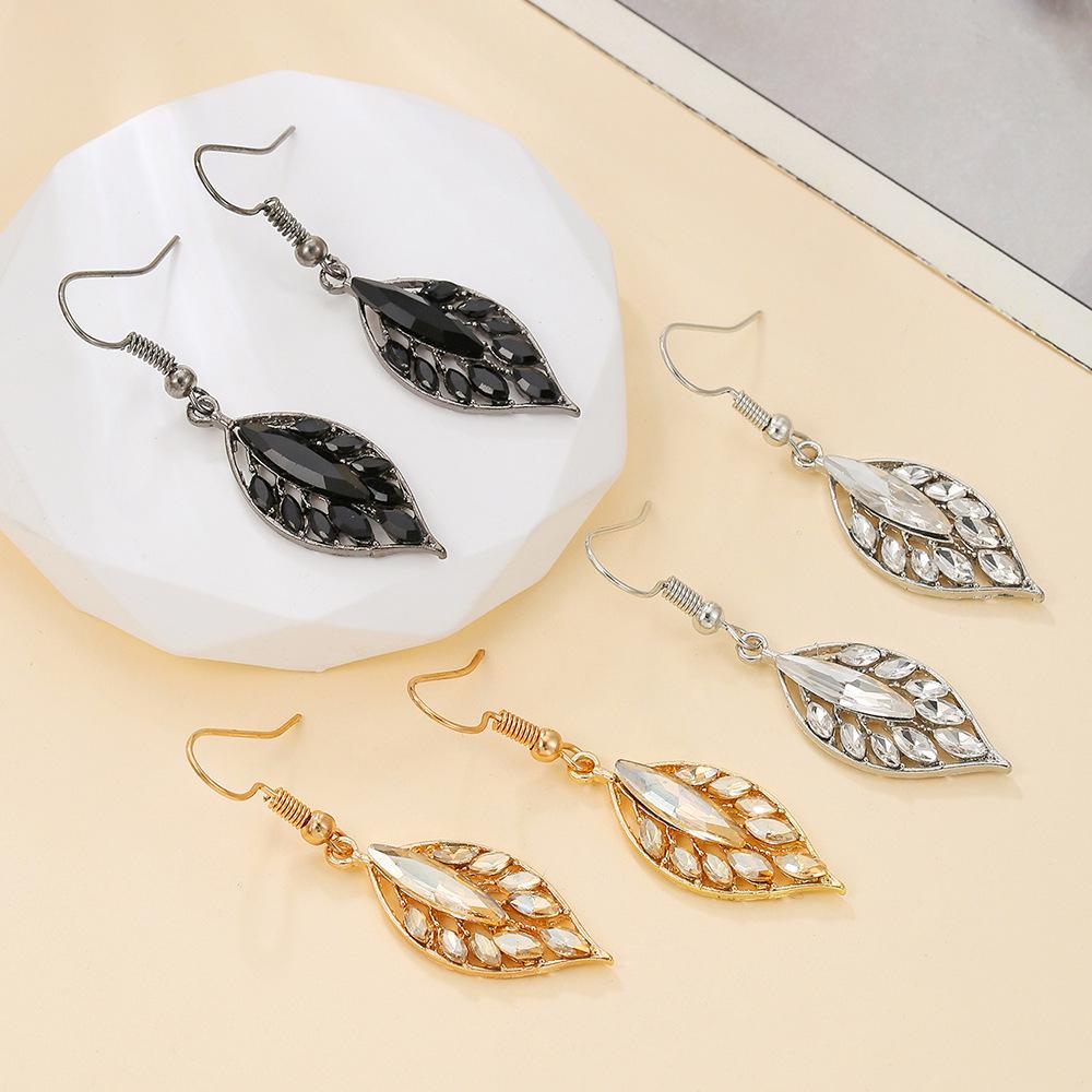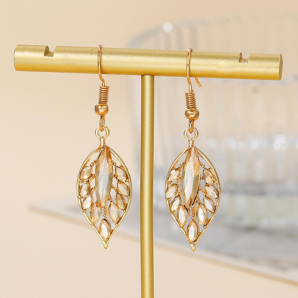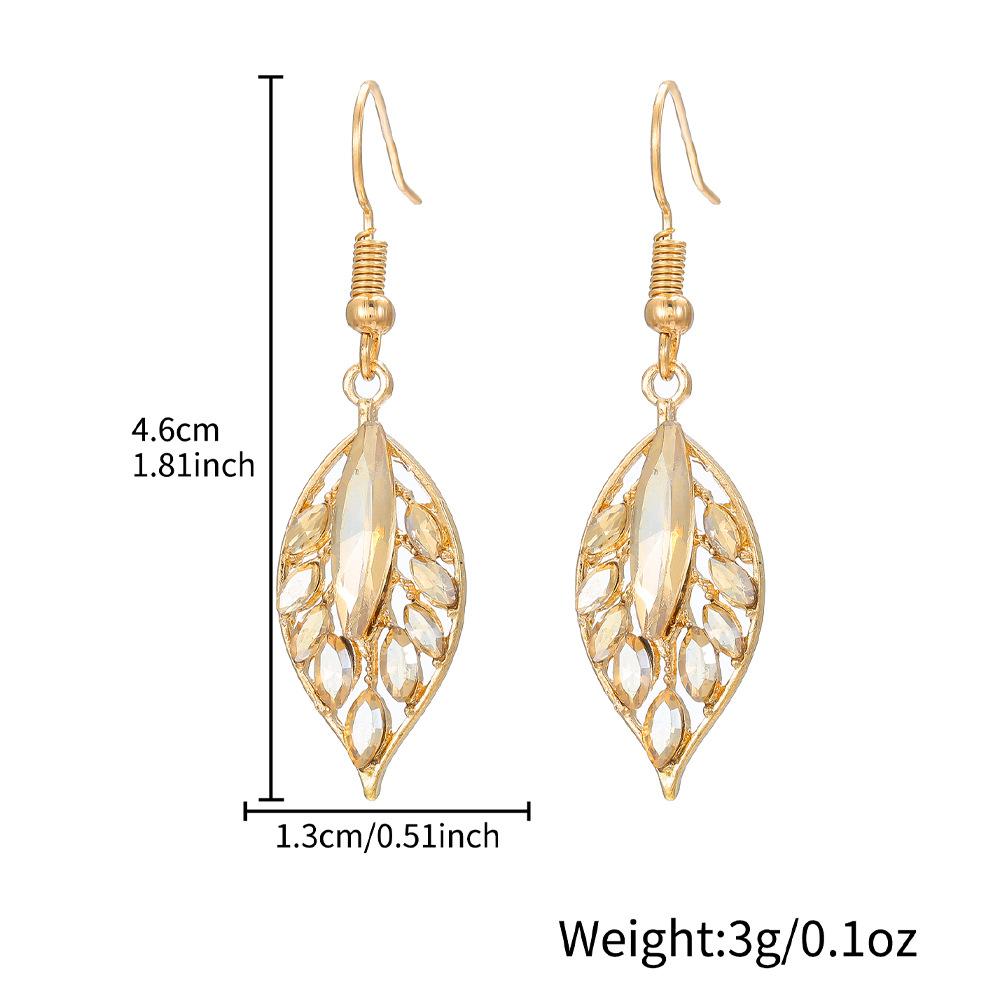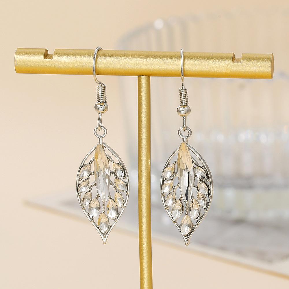 Pendientes de hojas huecas con temperamento transfronterizo de Amazon, nuevos pendientes de moda con diamantes, joyería para damas al por mayor