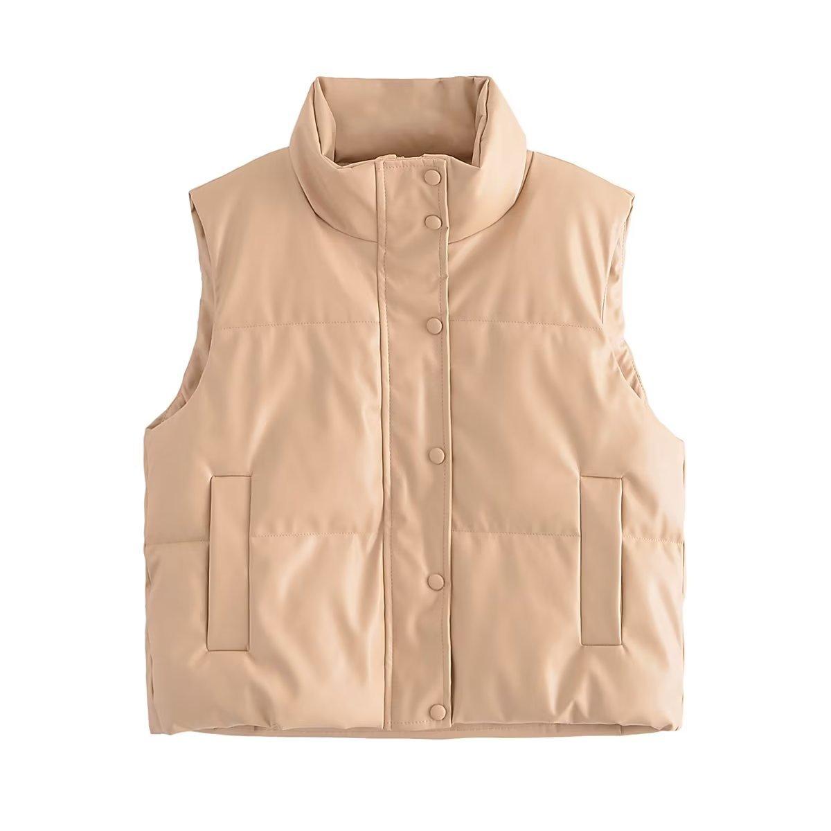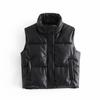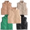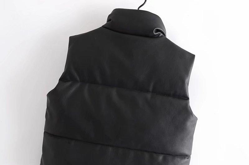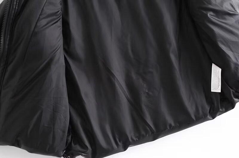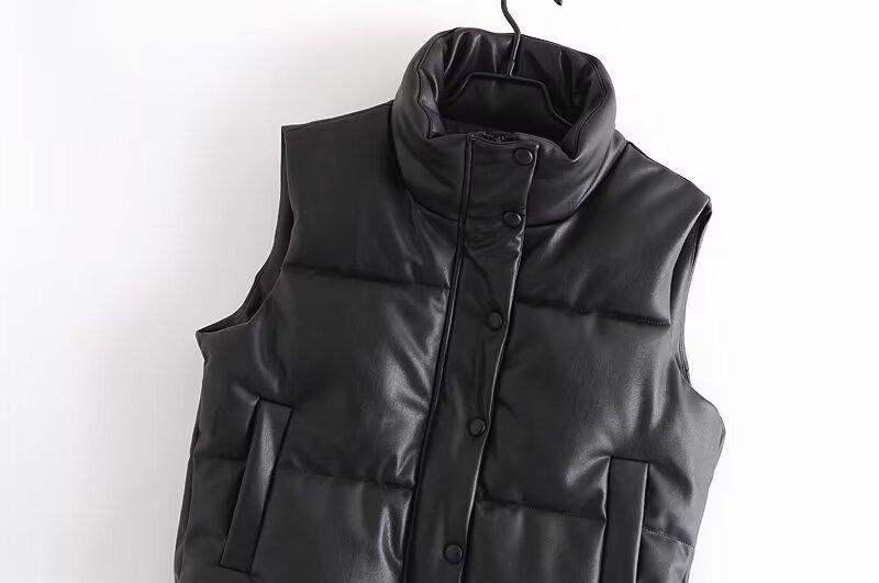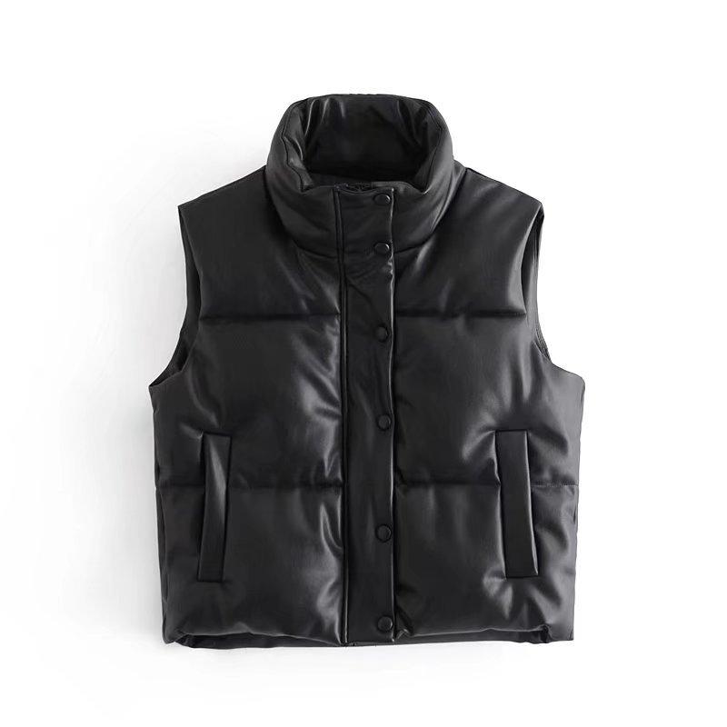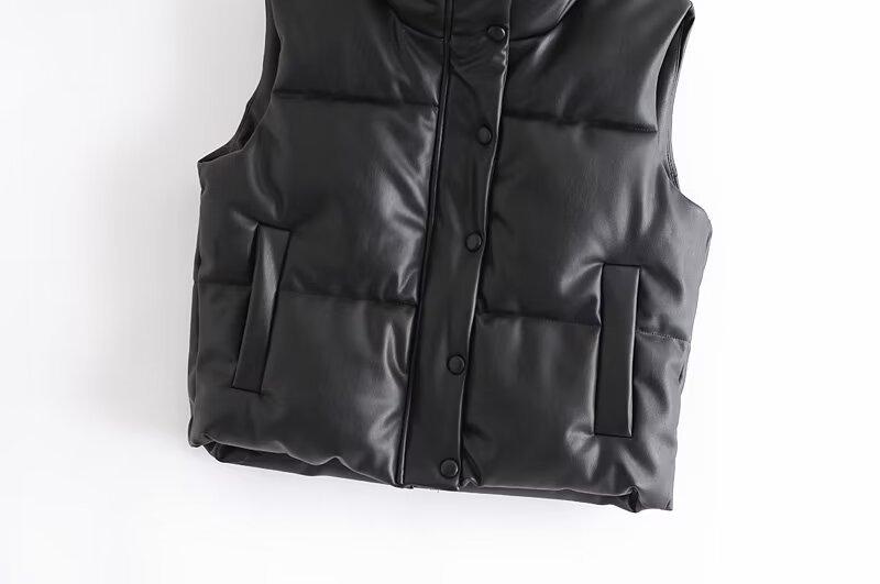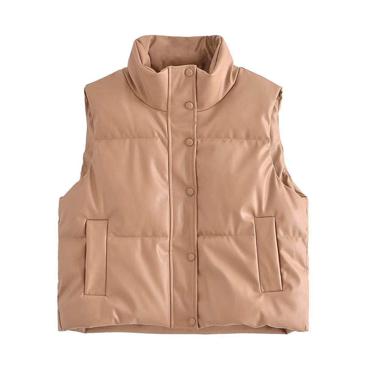 Otoño 2023, nueva ropa transfronteriza europea y americana para mujer, abrigo urbano informal de cinco colores con acolchado de algodón de piel sintética, chaleco con cremallera de PU