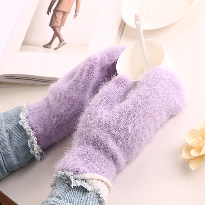 Guantes de piel de conejo para adulto otoño e invierno nuevo estilo supergruesos más terciopelo guantes cálidos doble capa dedo tejido guantes de color sólido |