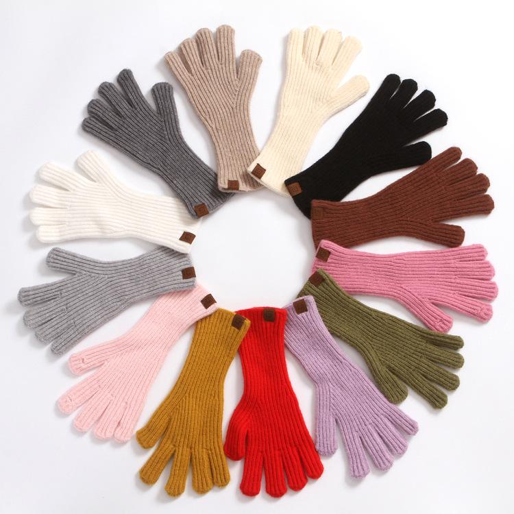 Guantes de punto transfronterizos para mujer, lindos guantes de invierno con dedos, para estudiantes, pareja, lana, manoplas, guantes gruesos de felpa |