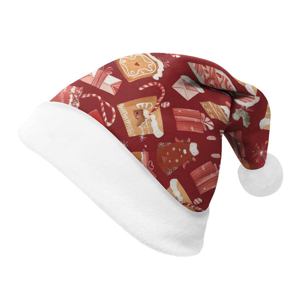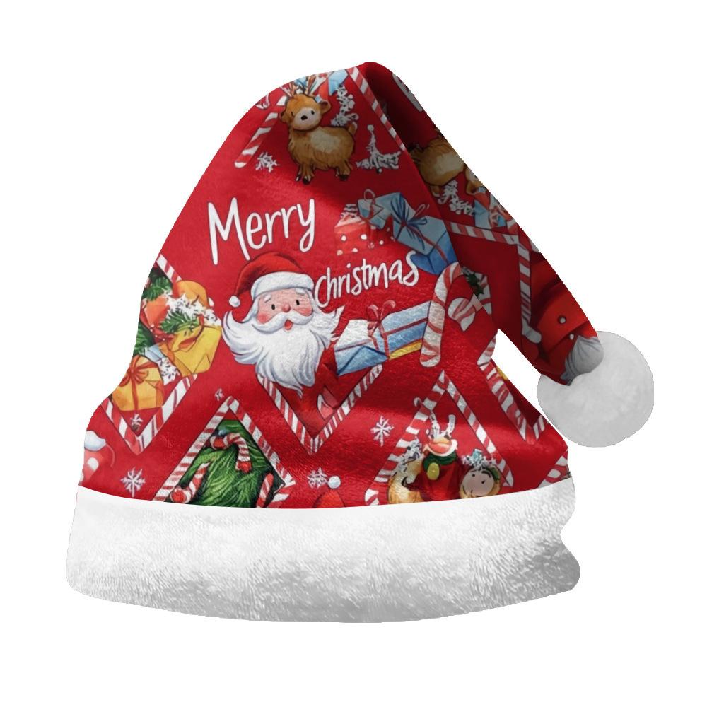 Gorro navideño de felpa corta de Papá Noel para adultos y niños, con estampado de comercio exterior, ideal para manualidades, 2024