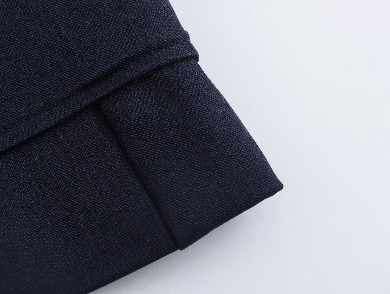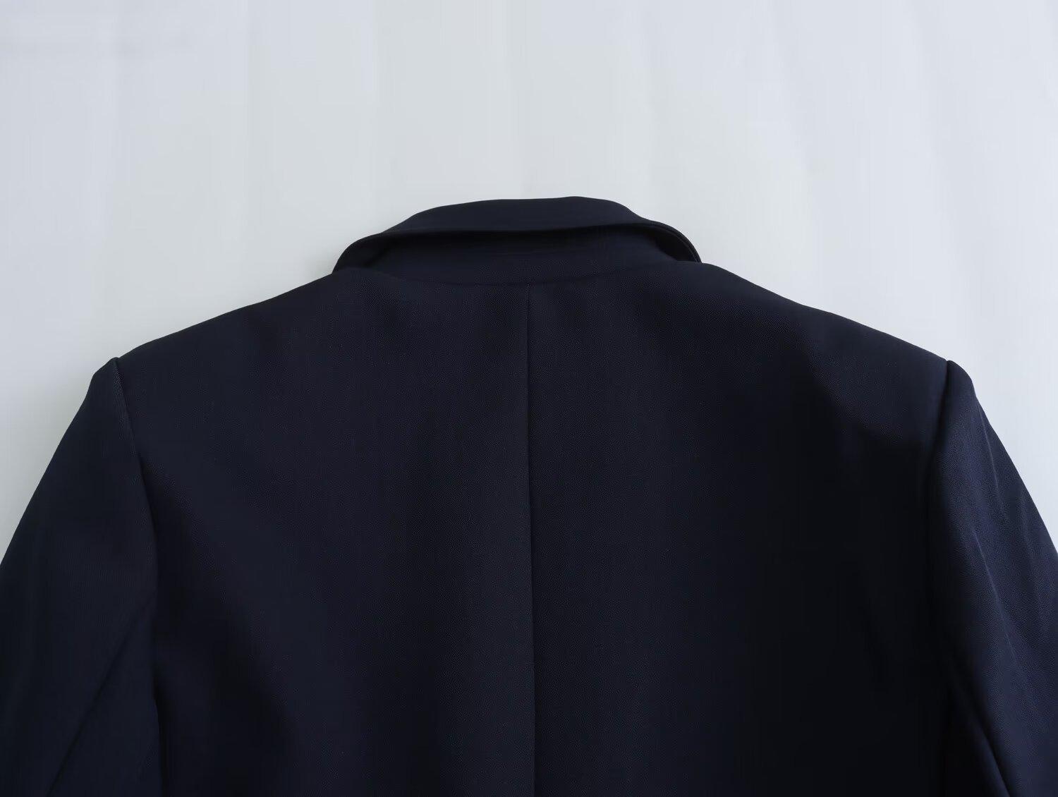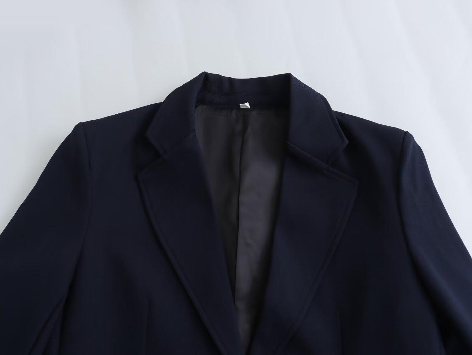 Chaqueta de traje azul y negra simple de dos botones para mujer transfronteriza europea y americana de primavera 2024 + pantalones cortos ajustados