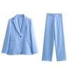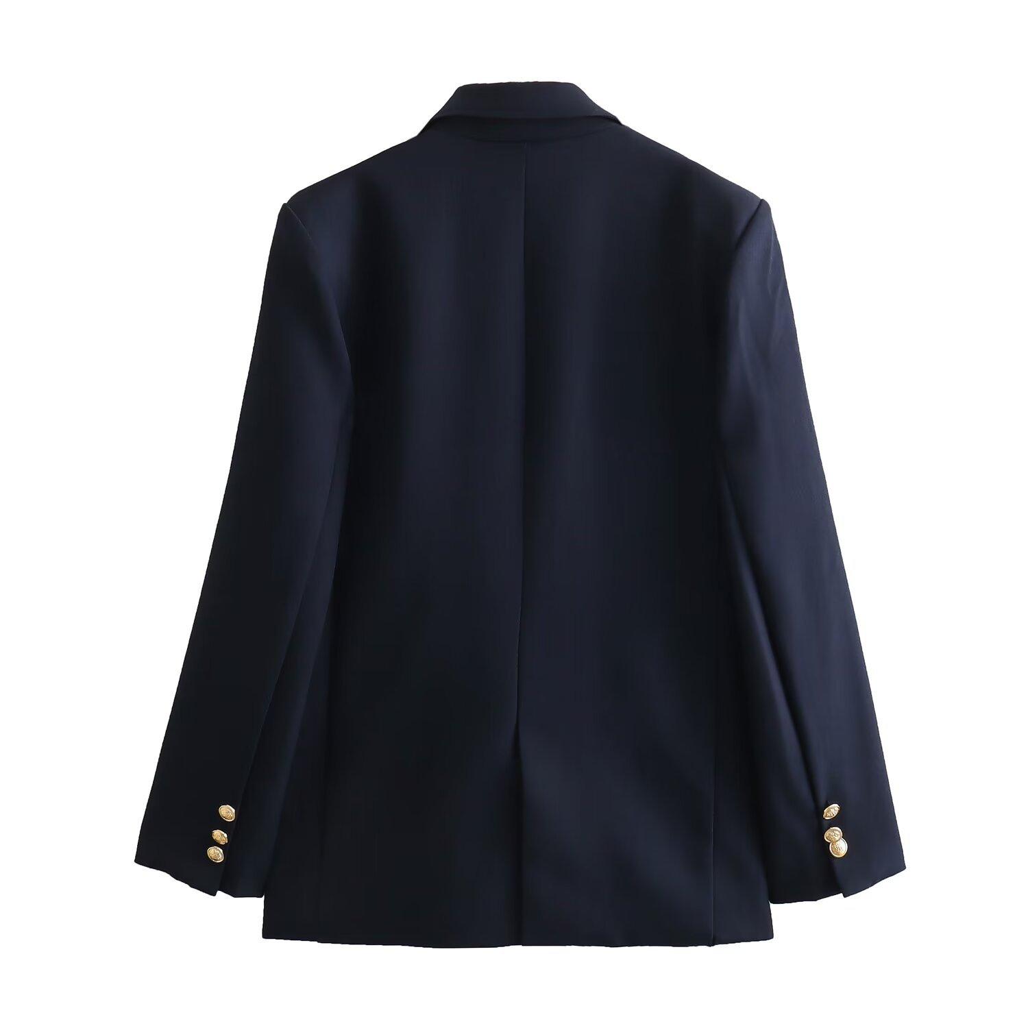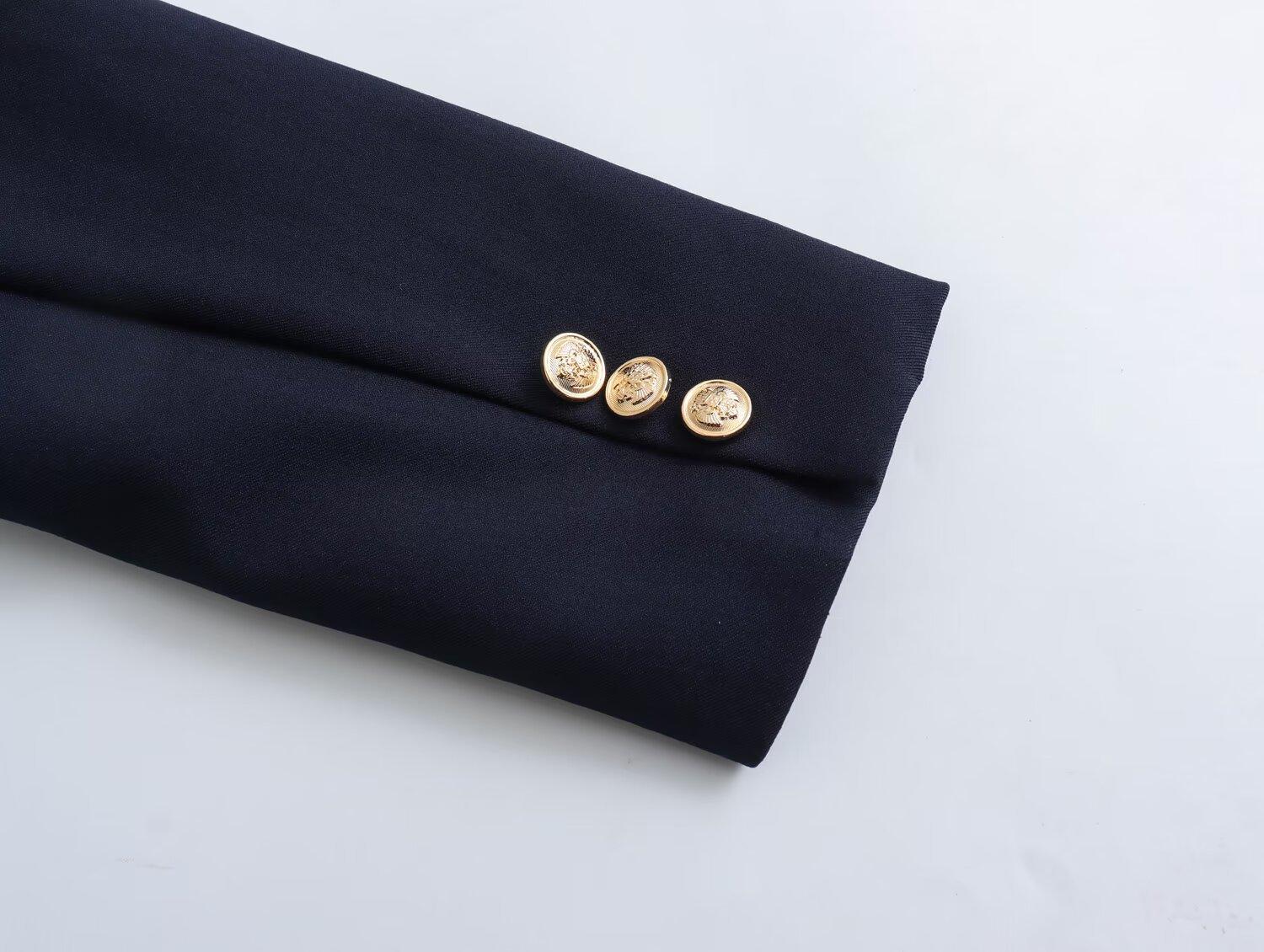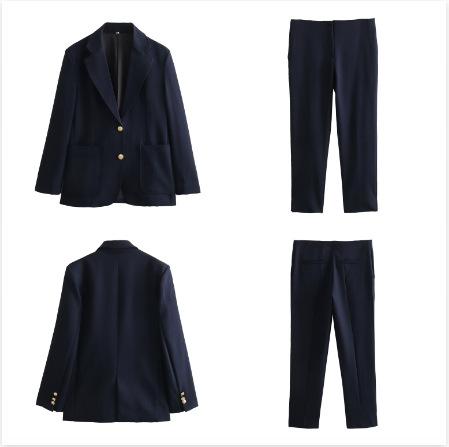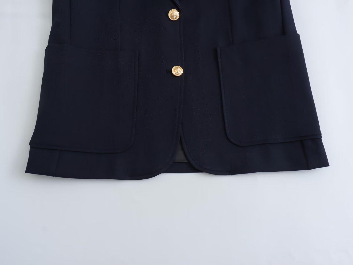 Chaqueta de traje azul y negra simple de dos botones para mujer transfronteriza europea y americana de primavera 2024 + pantalones cortos ajustados
