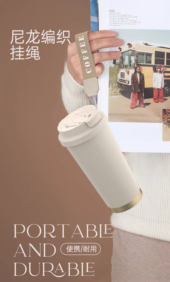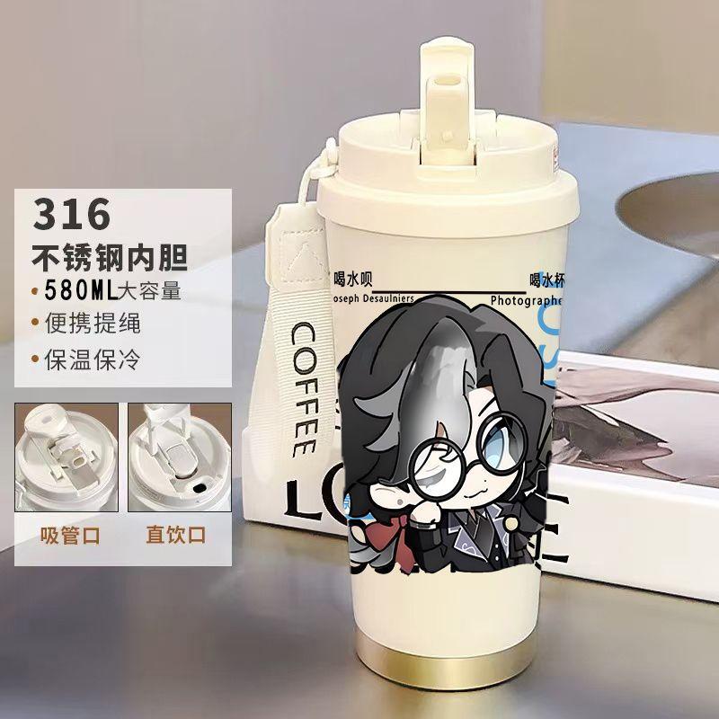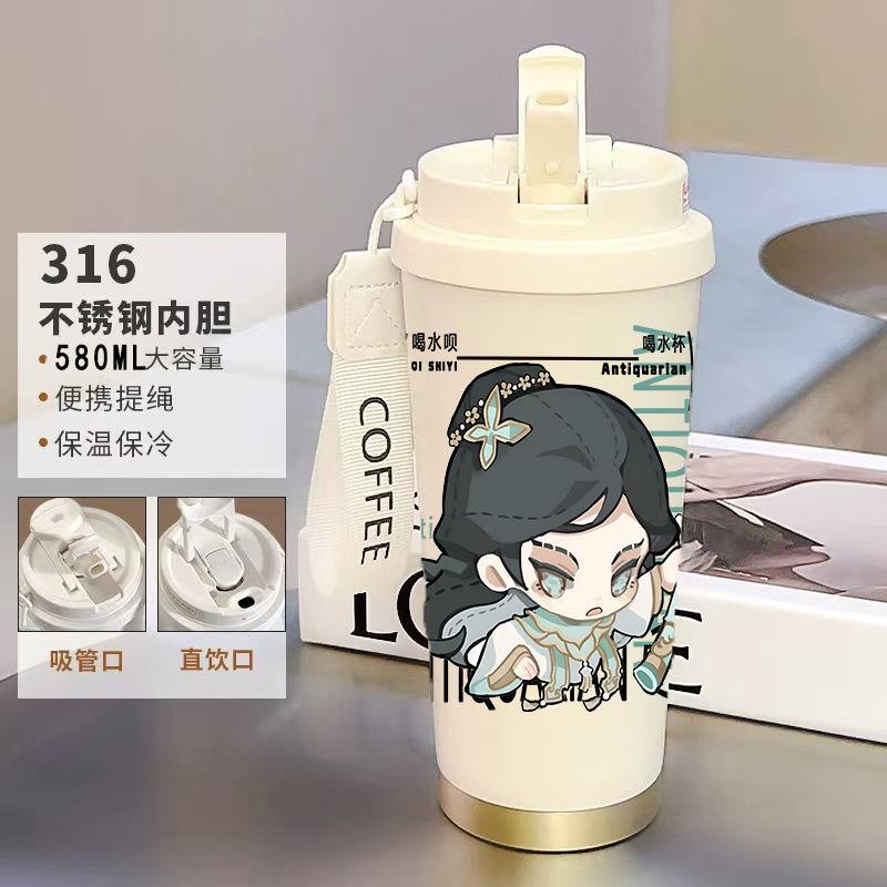 Versión Q de la quinta personalidad, taza térmica periférica, taza de café, taza de lirio de los valles, taza de agua portátil de acero inoxidable 316 para estudiantes de gran capacidad