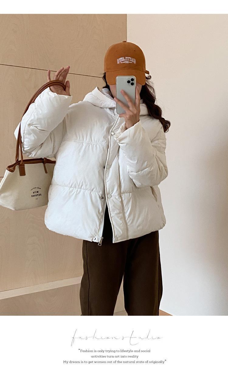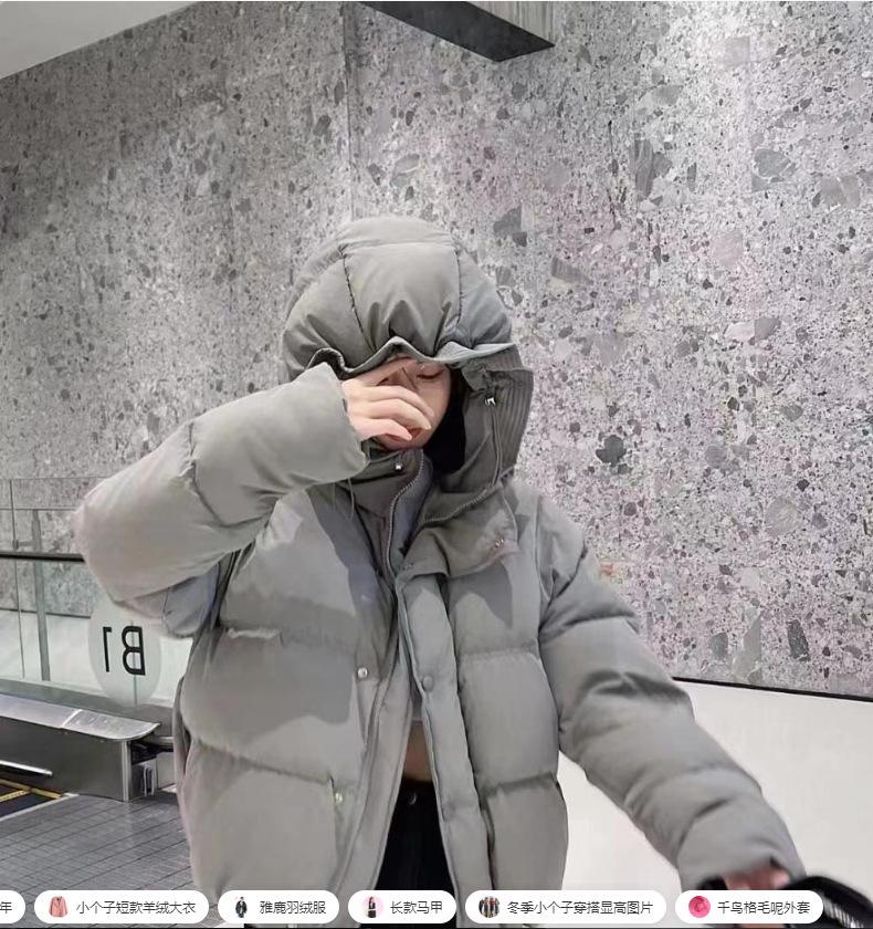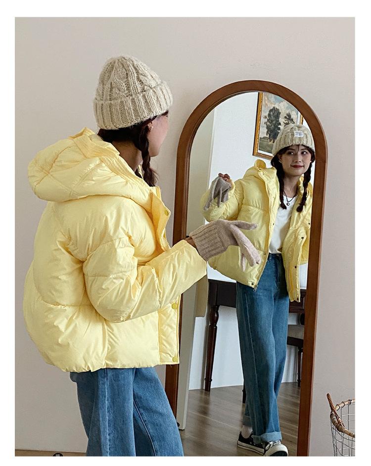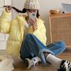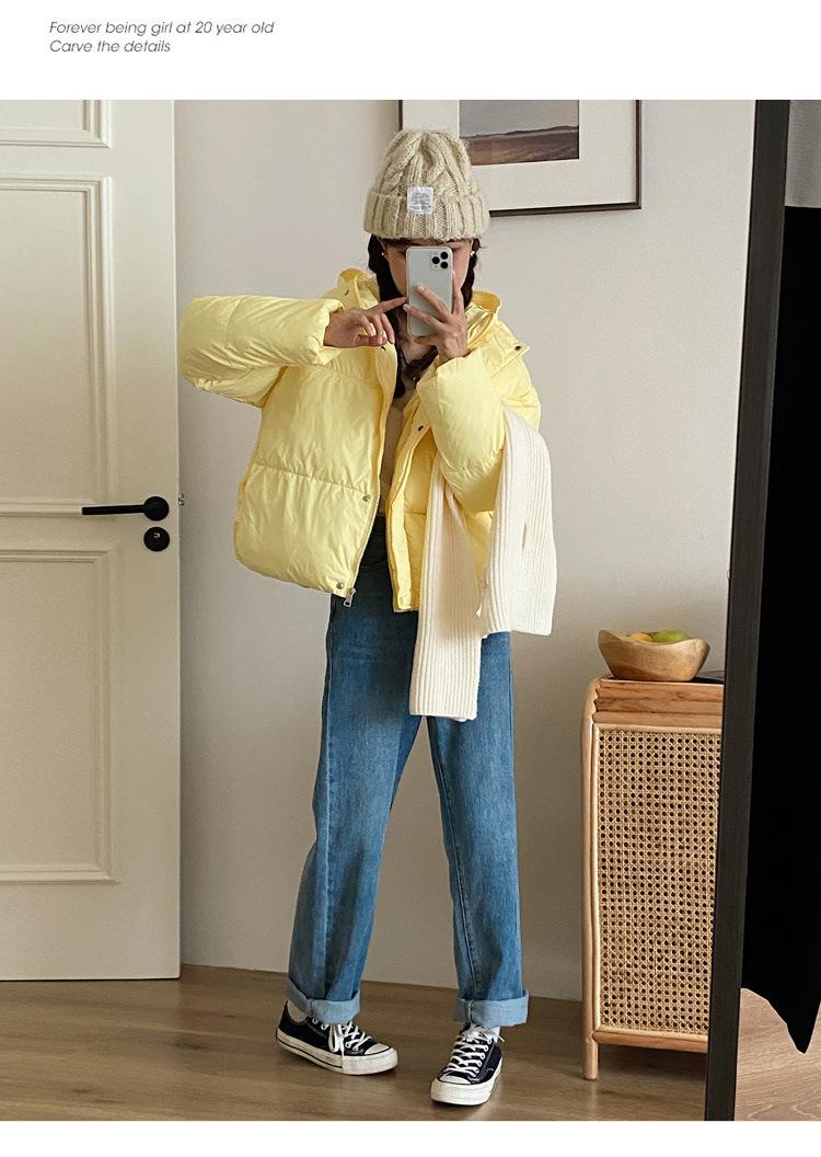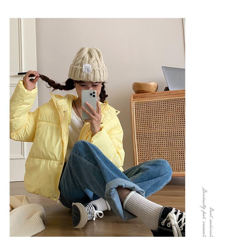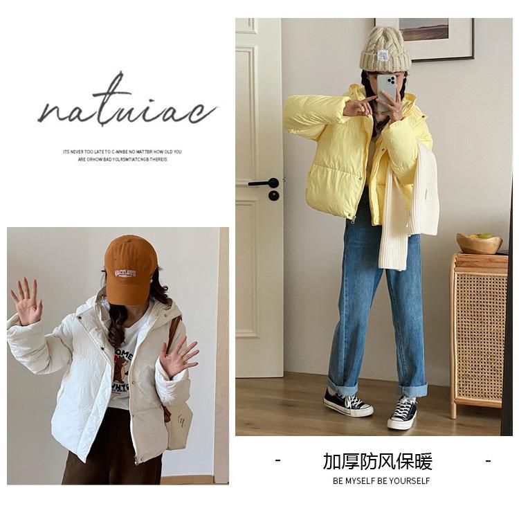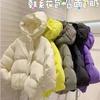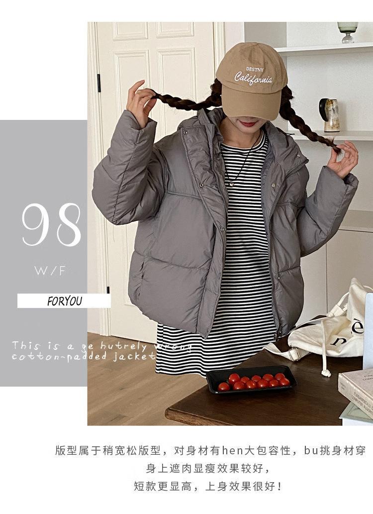 Abrigo de invierno acolchado de algodón y plumón para mujer, abrigo corto de red roja acolchado de algodón, abrigo de invierno holgado y adelgazante de algodón estilo coreano.