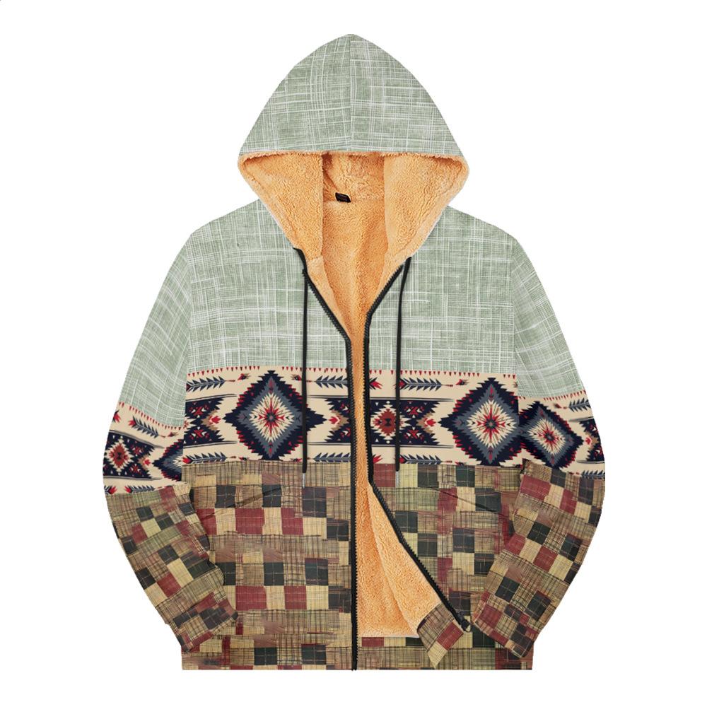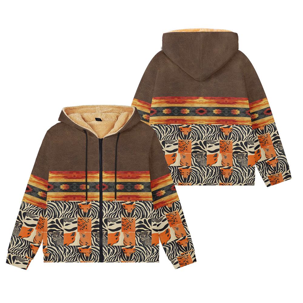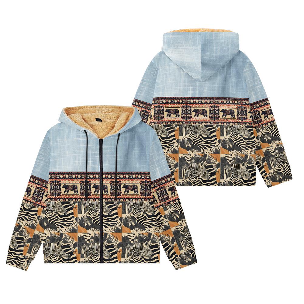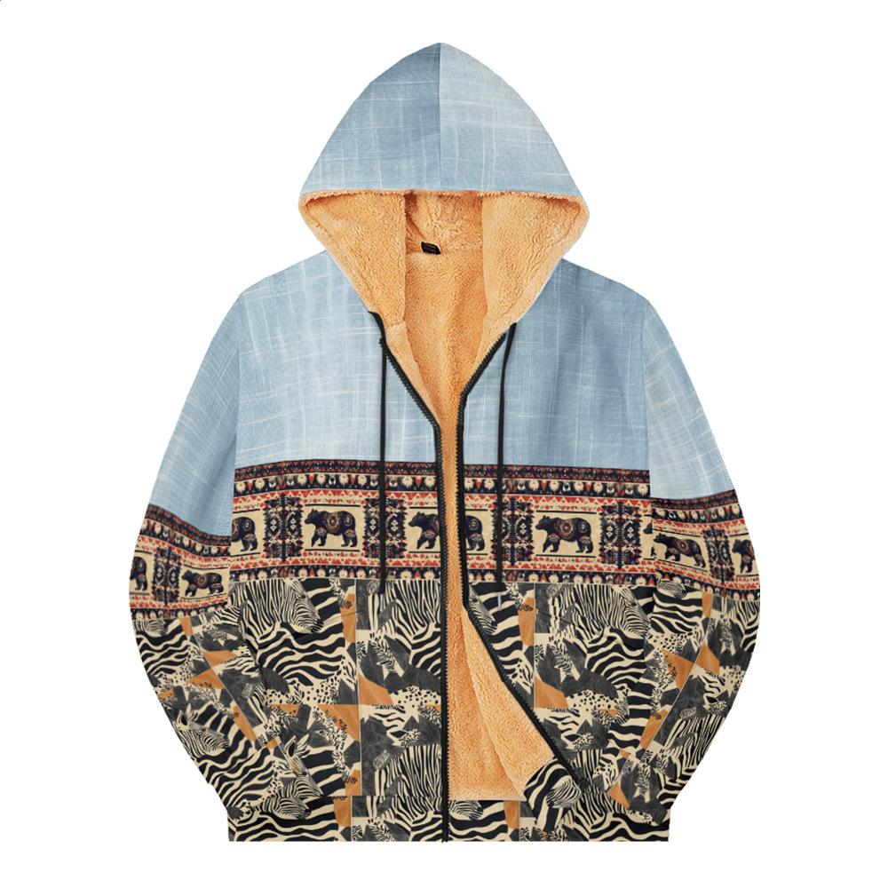 Patrón multicolor transfronterizo de Europa y Estados Unidos Impresión digital 3D Sudadera con capucha y cremallera con forro polar Forro amarillo Chaqueta acolchada de algodón 10