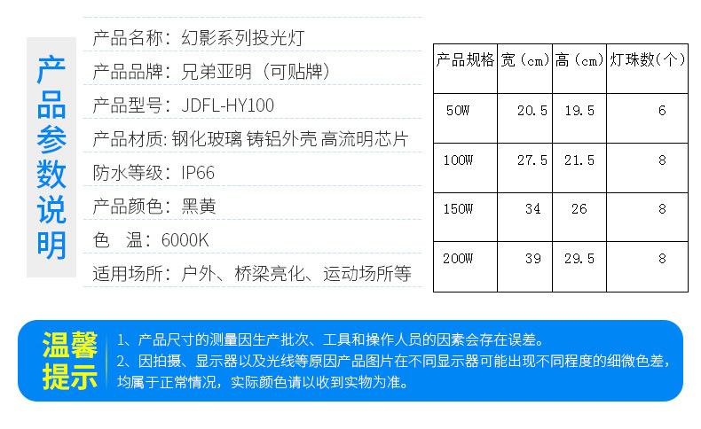 Proyector LED Serie Phantom Proyector Impermeable Exterior Sitio de Construcción al Aire Libre Iluminación Cuadrada Proyector Super Brillante