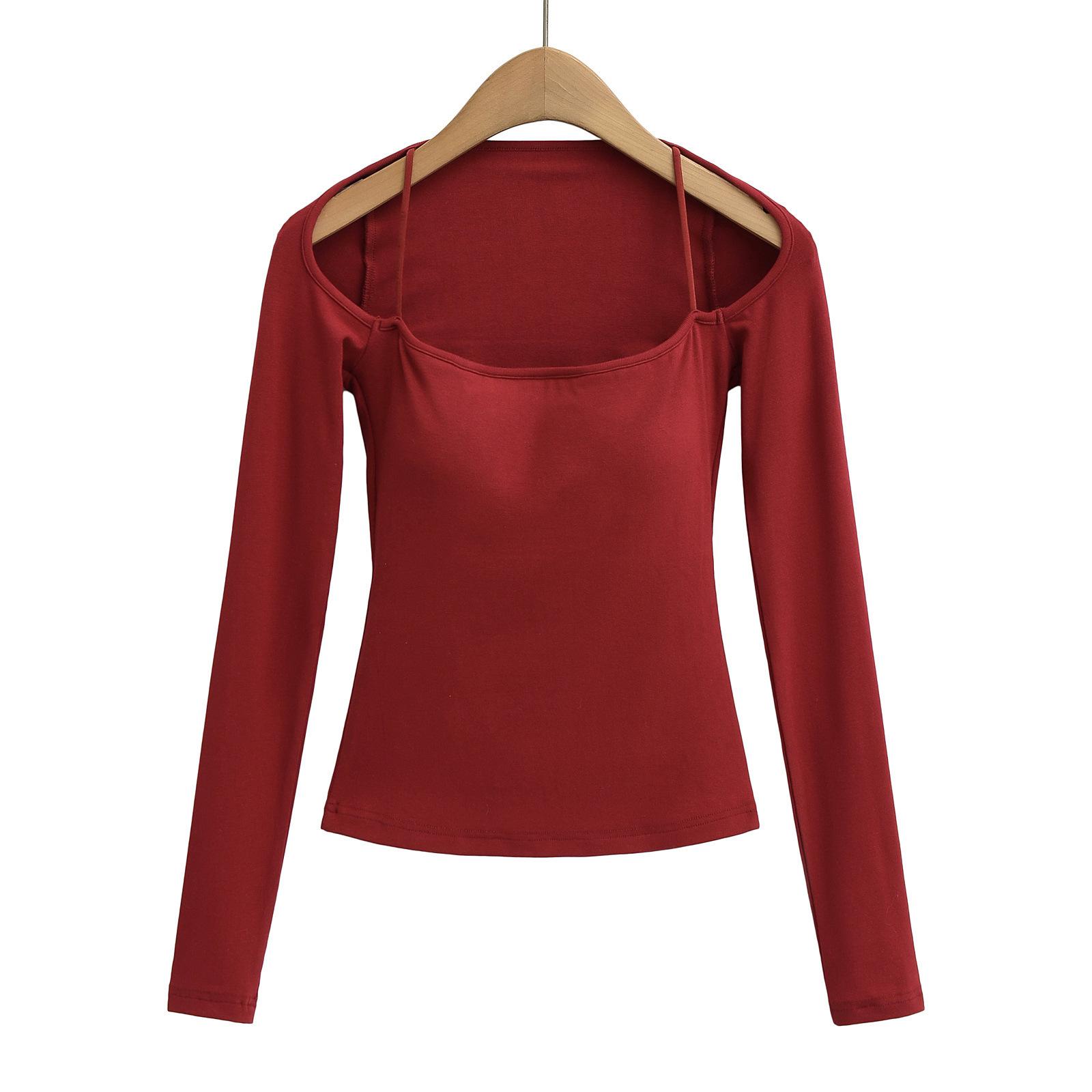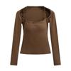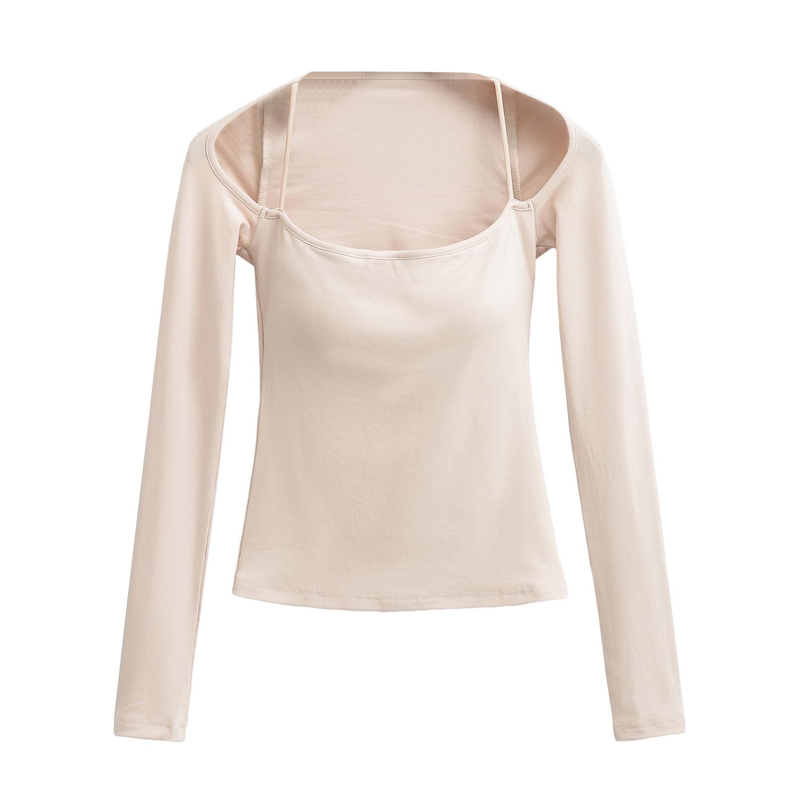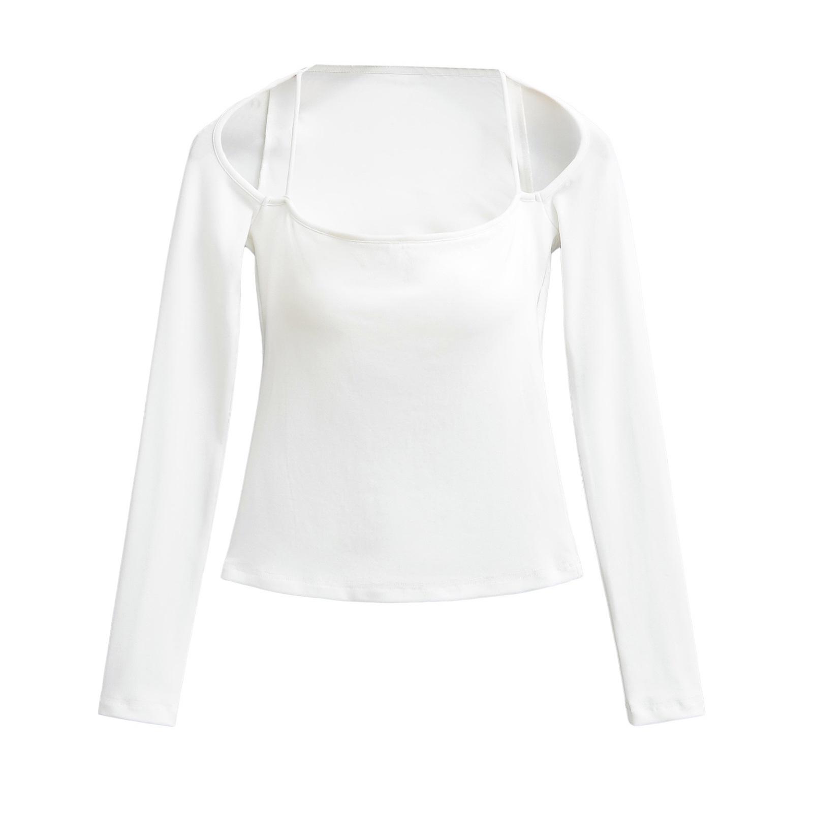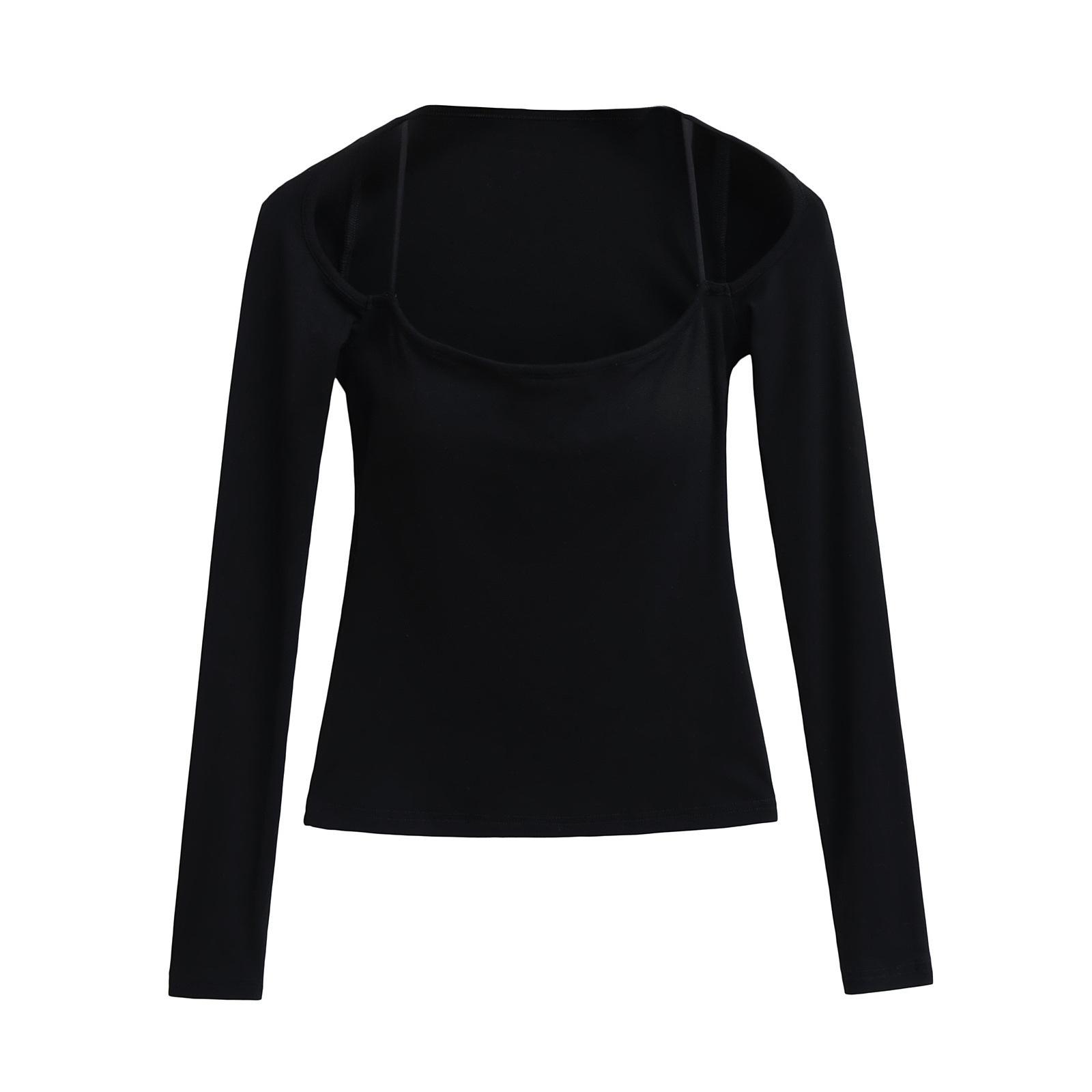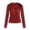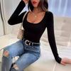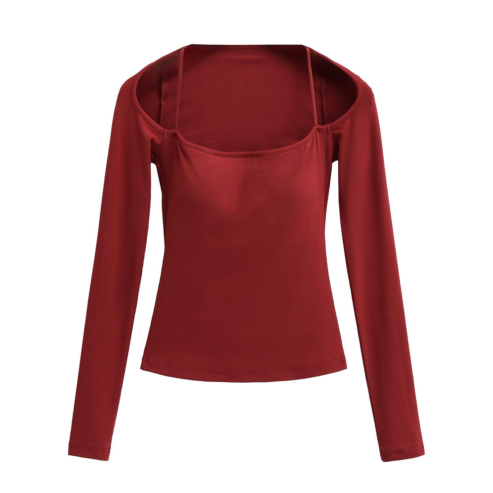 Chicas Calientes Puro Querer Camiseta Base de Hombro Top de Mujer con Diseño Sensual de Almohadilla en el Pecho Cuello Cuadrado Hombro Sexy Ajustada Manga Larga
