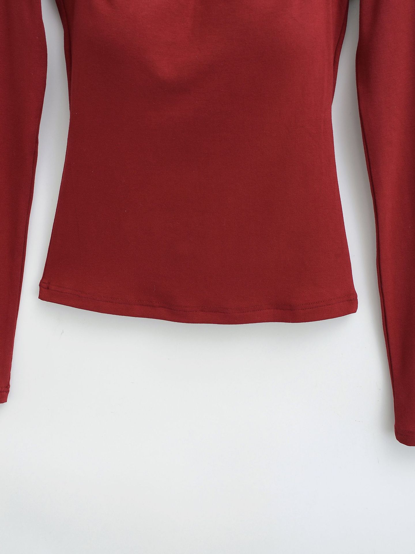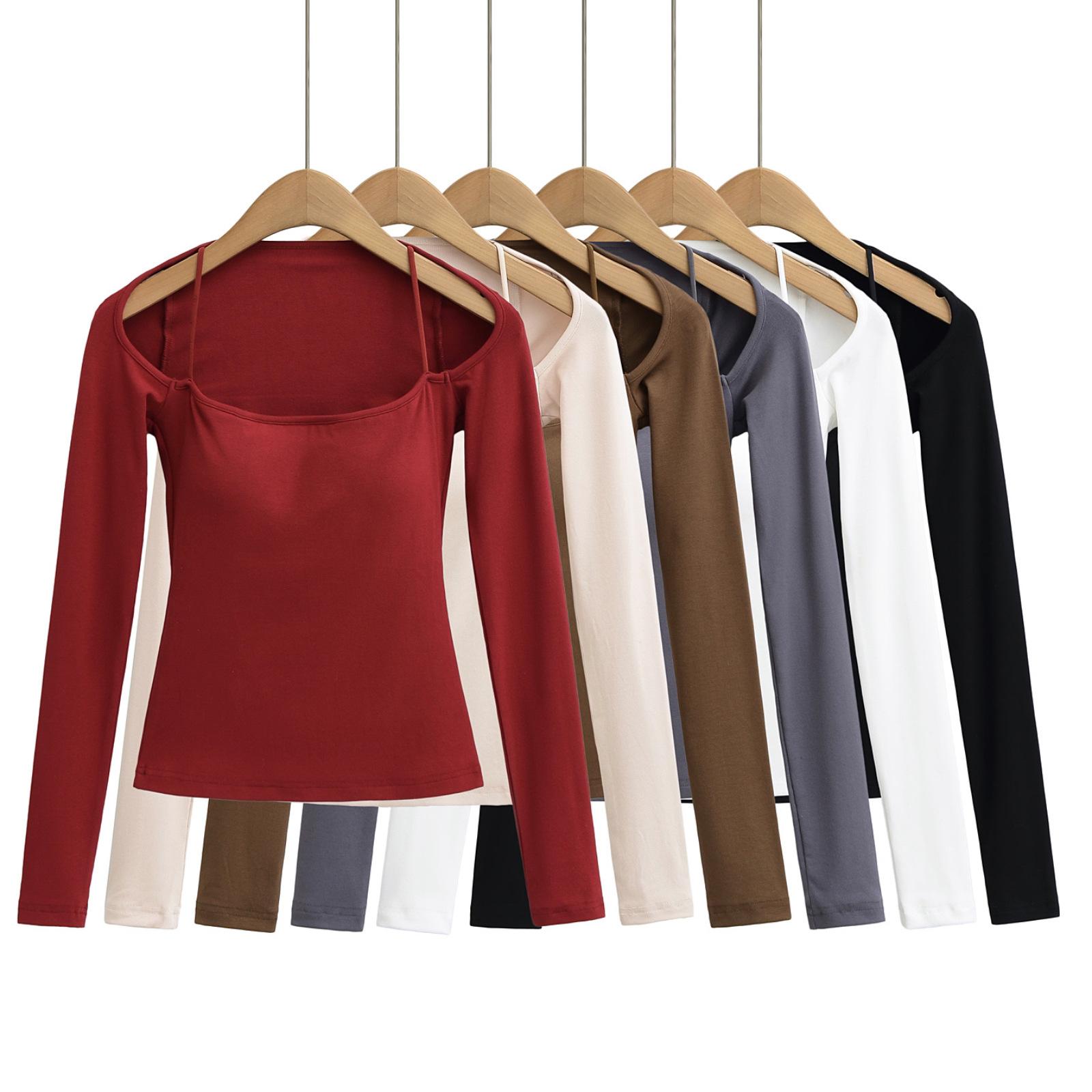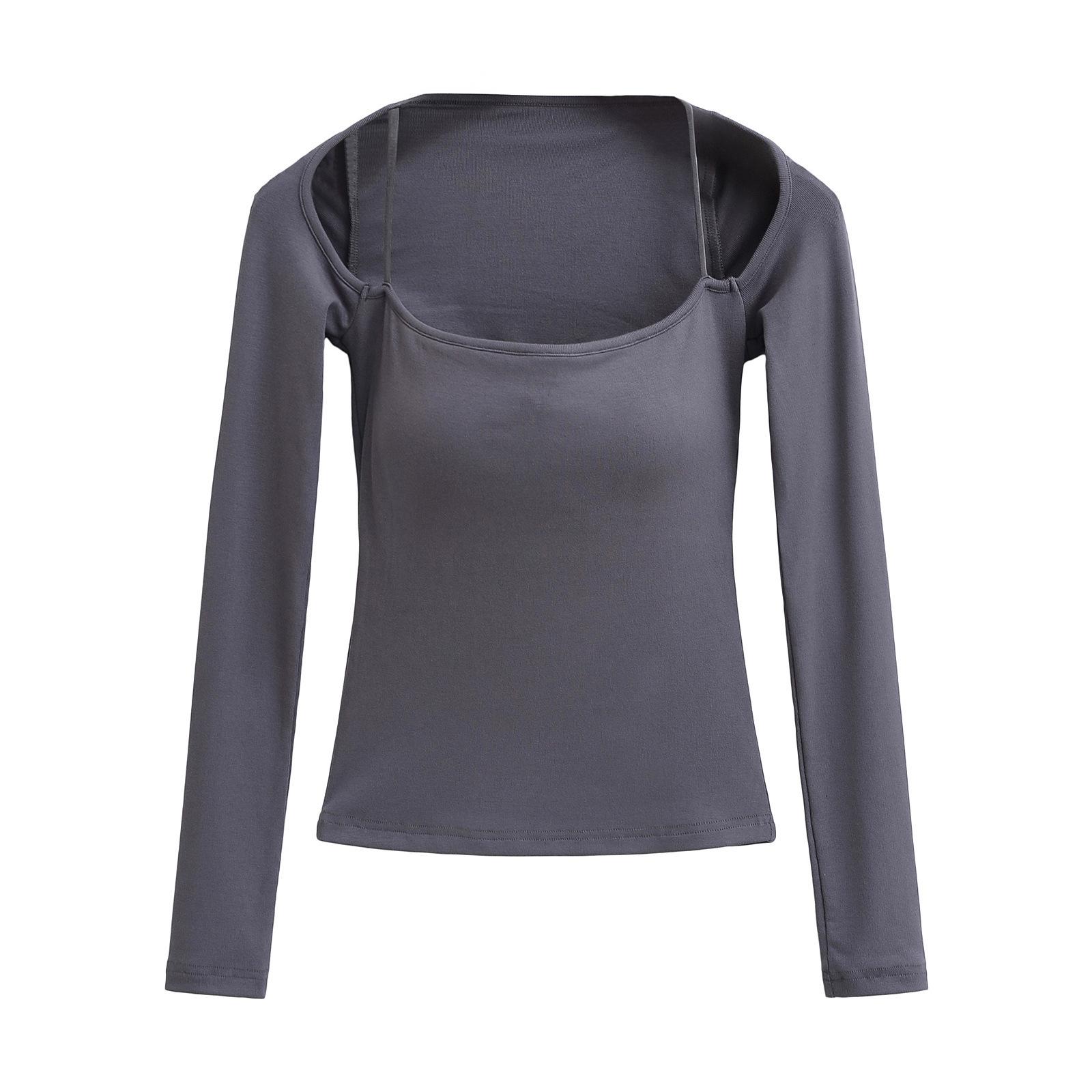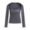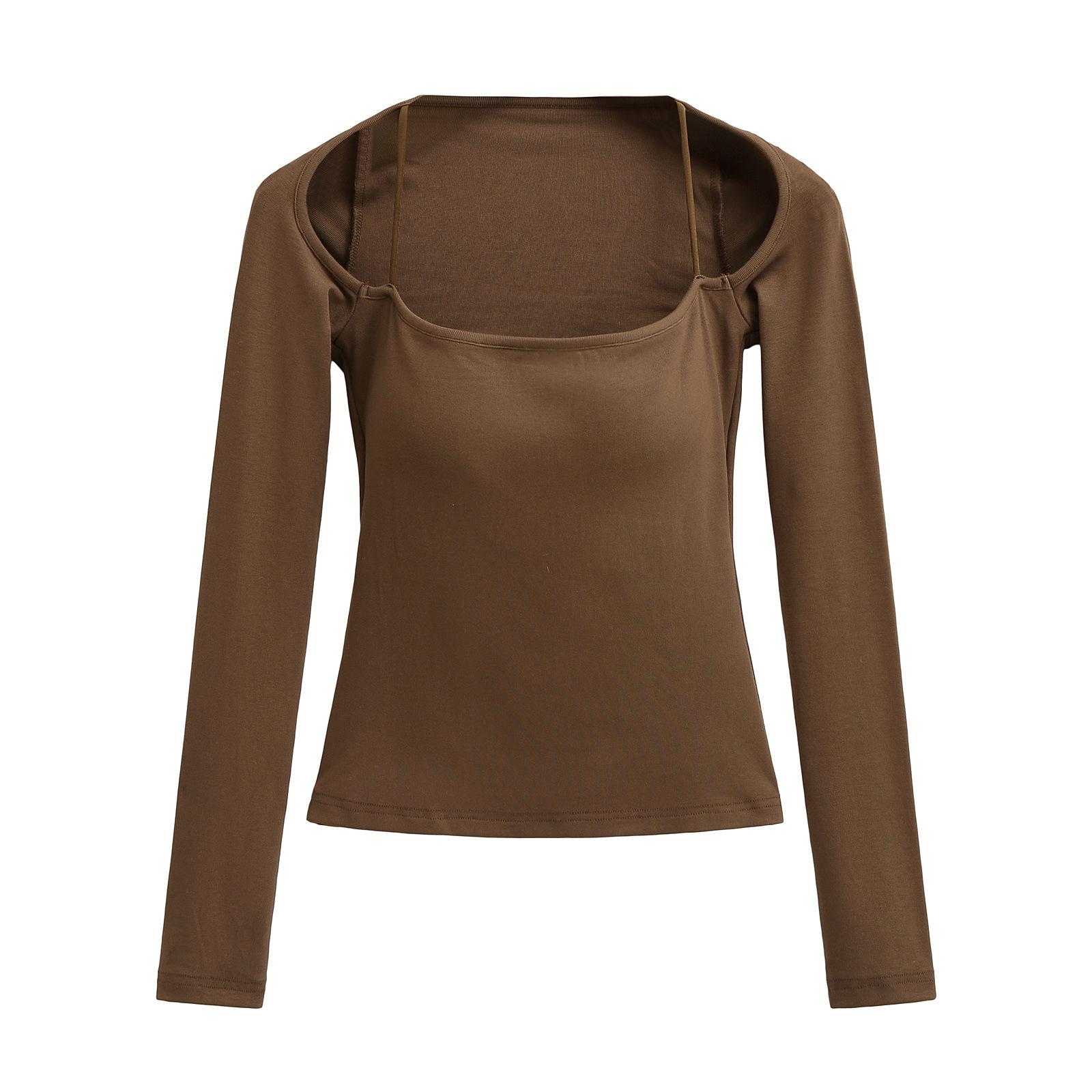 Chicas Calientes Puro Querer Camiseta Base de Hombro Top de Mujer con Diseño Sensual de Almohadilla en el Pecho Cuello Cuadrado Hombro Sexy Ajustada Manga Larga