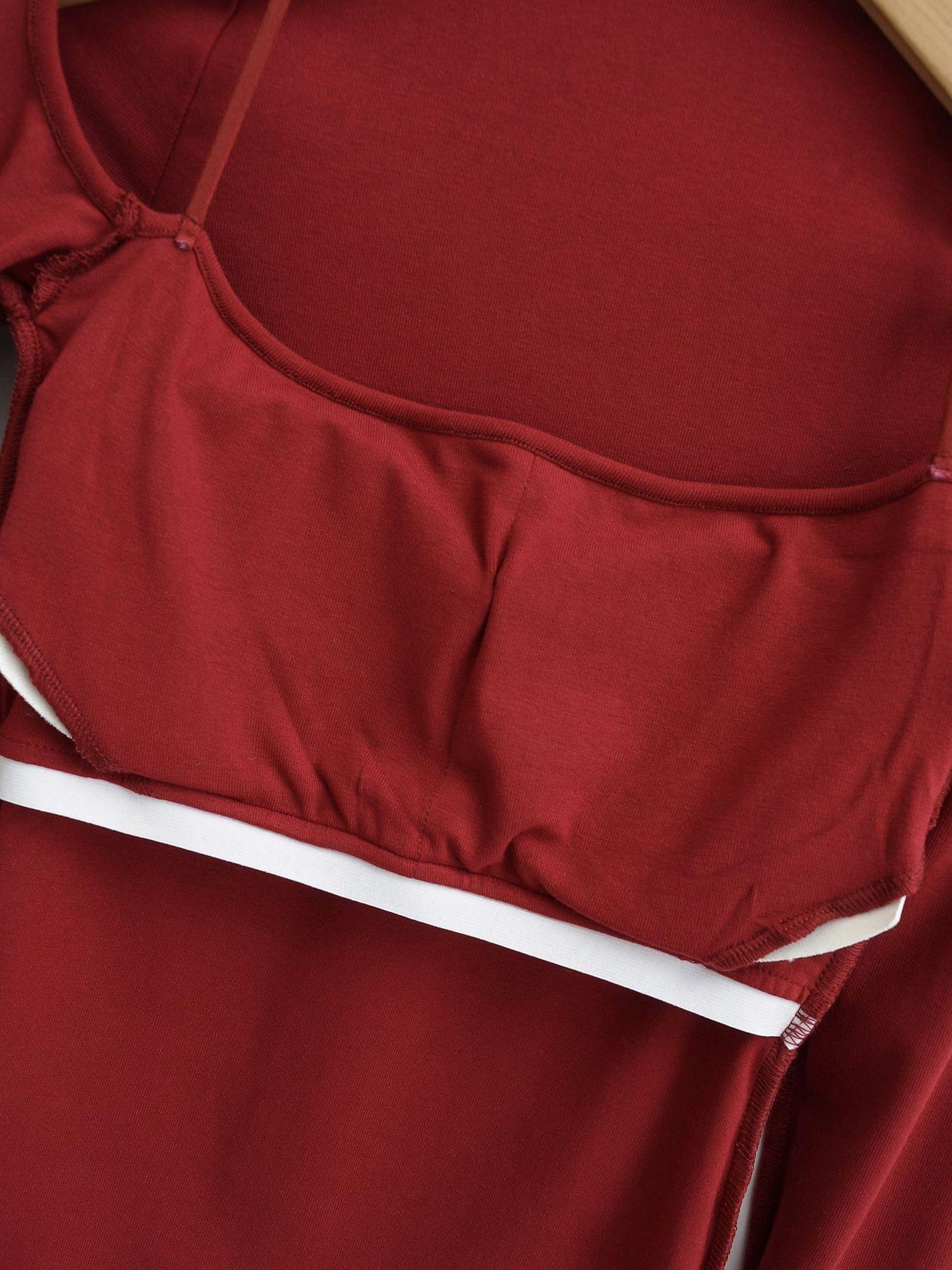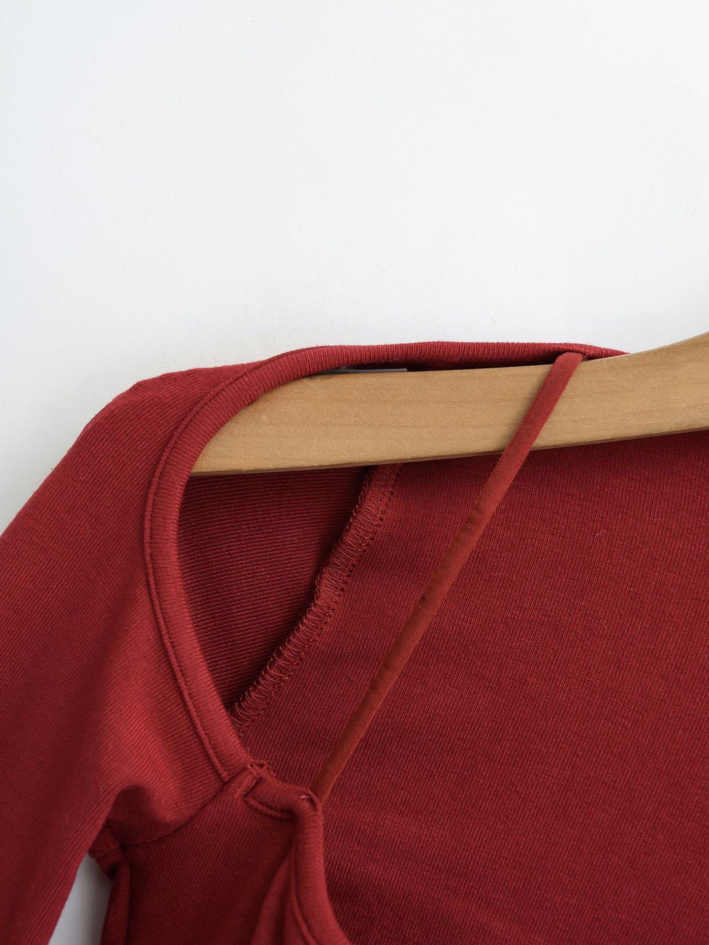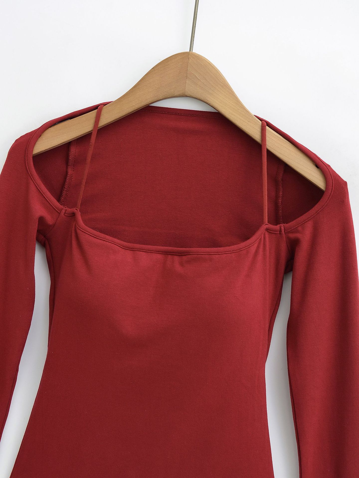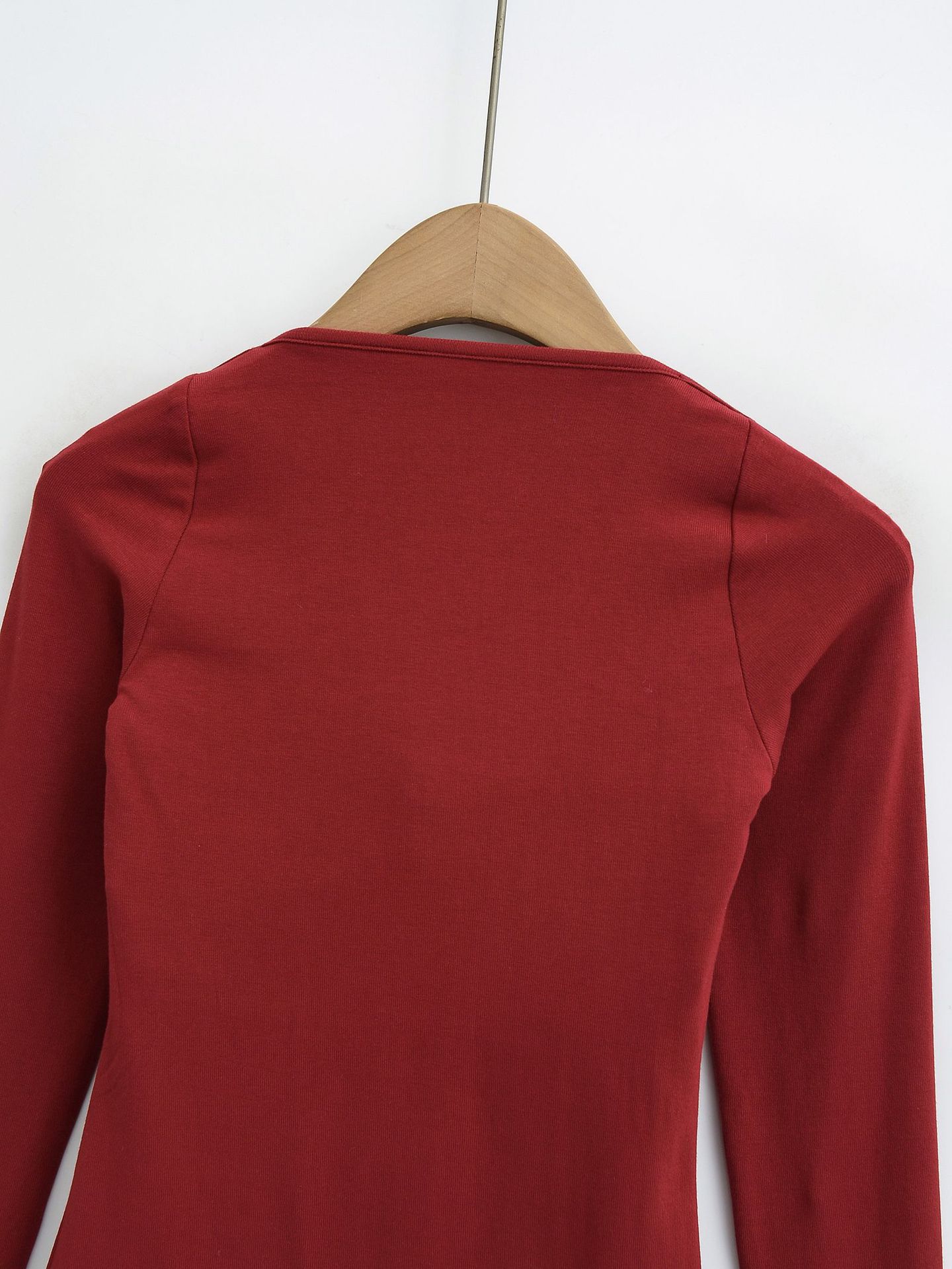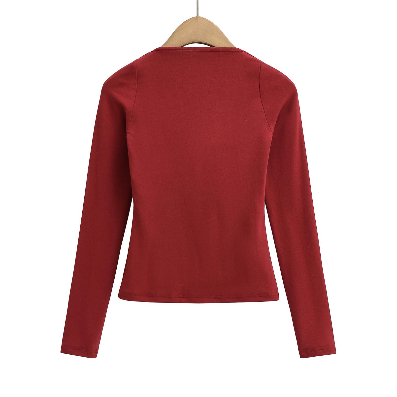 Chicas Calientes Puro Querer Camiseta Base de Hombro Top de Mujer con Diseño Sensual de Almohadilla en el Pecho Cuello Cuadrado Hombro Sexy Ajustada Manga Larga