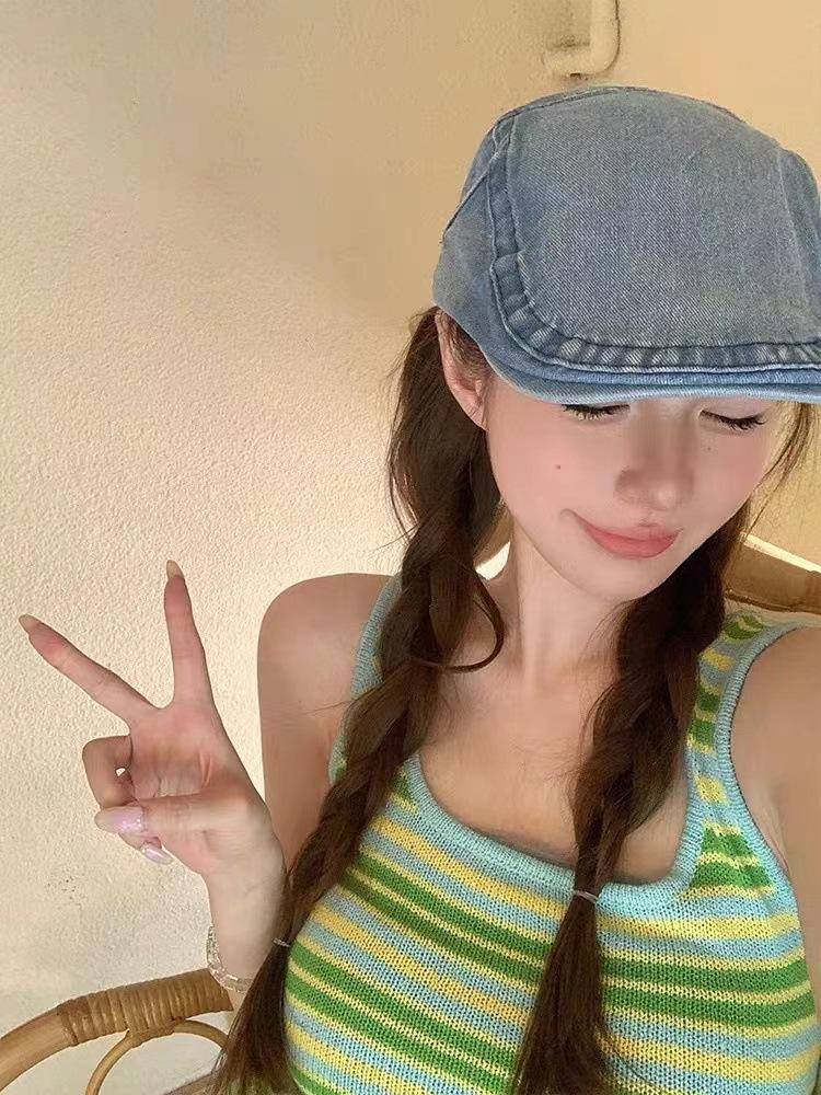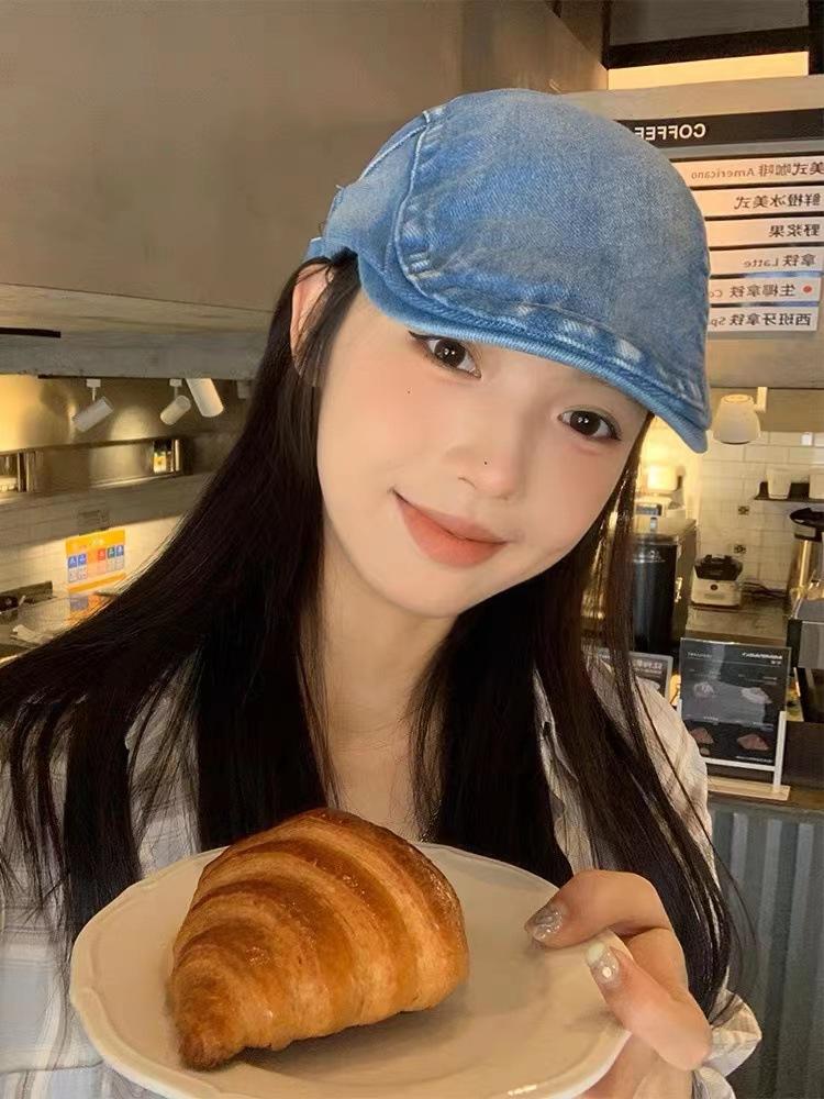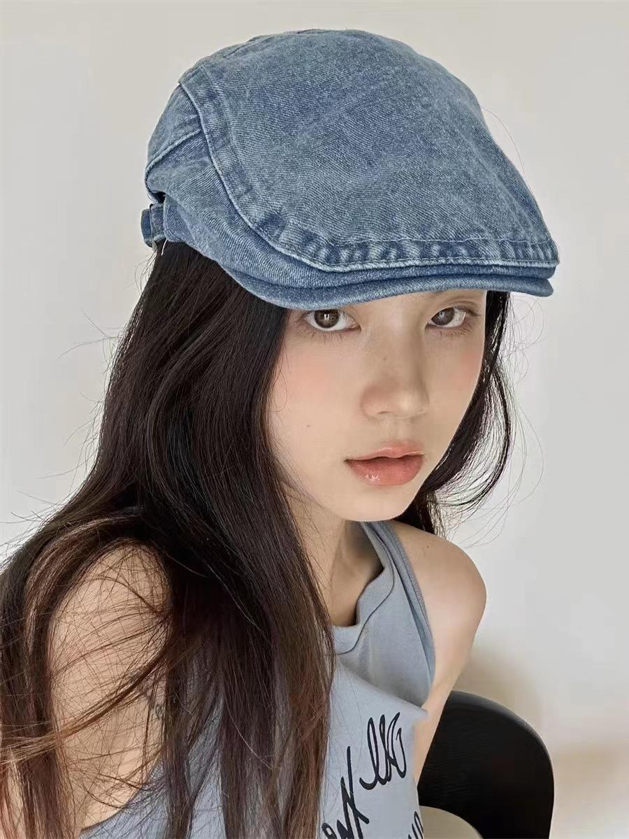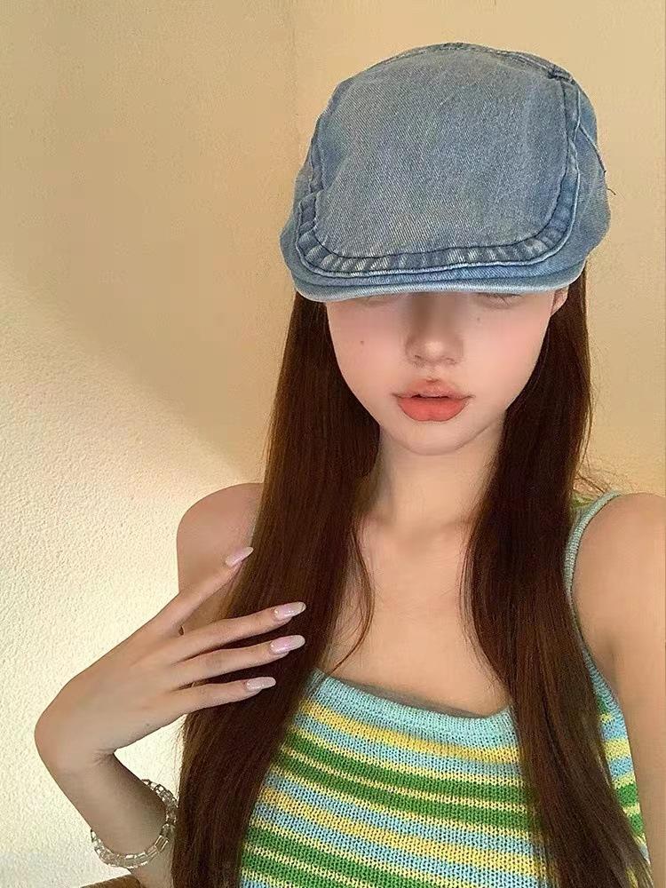 Chica sexy retro callejera americana Sombrero de mezclilla de vanguardia femenino 2023 Nueva boina de pintor uso inverso gorra con visera masculino