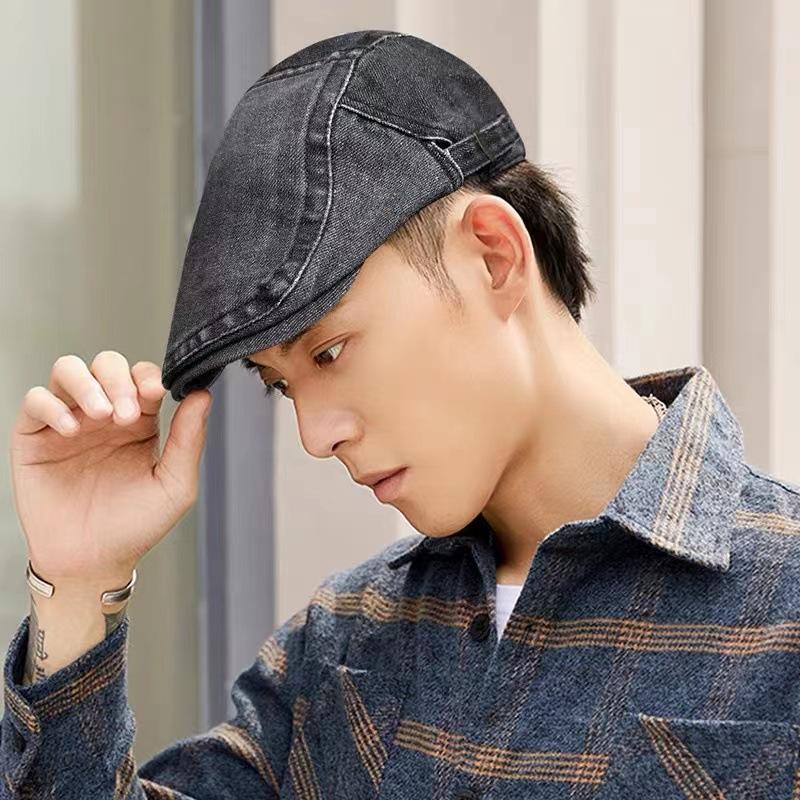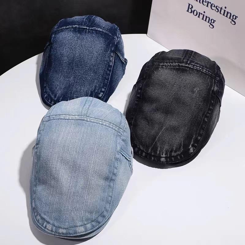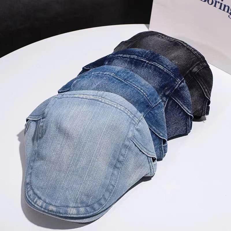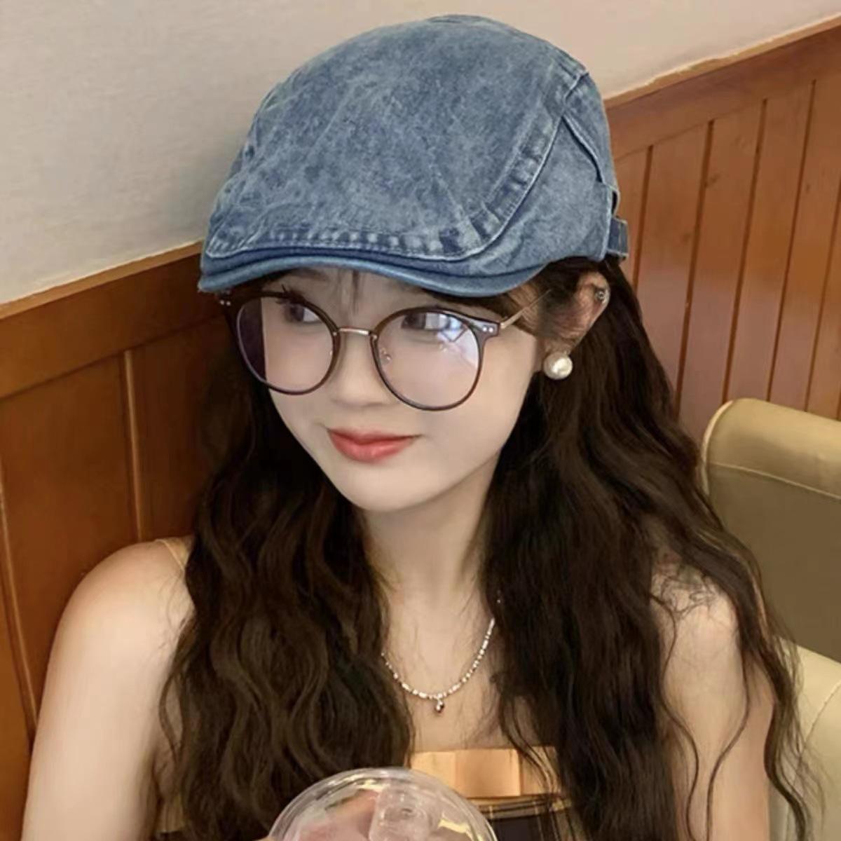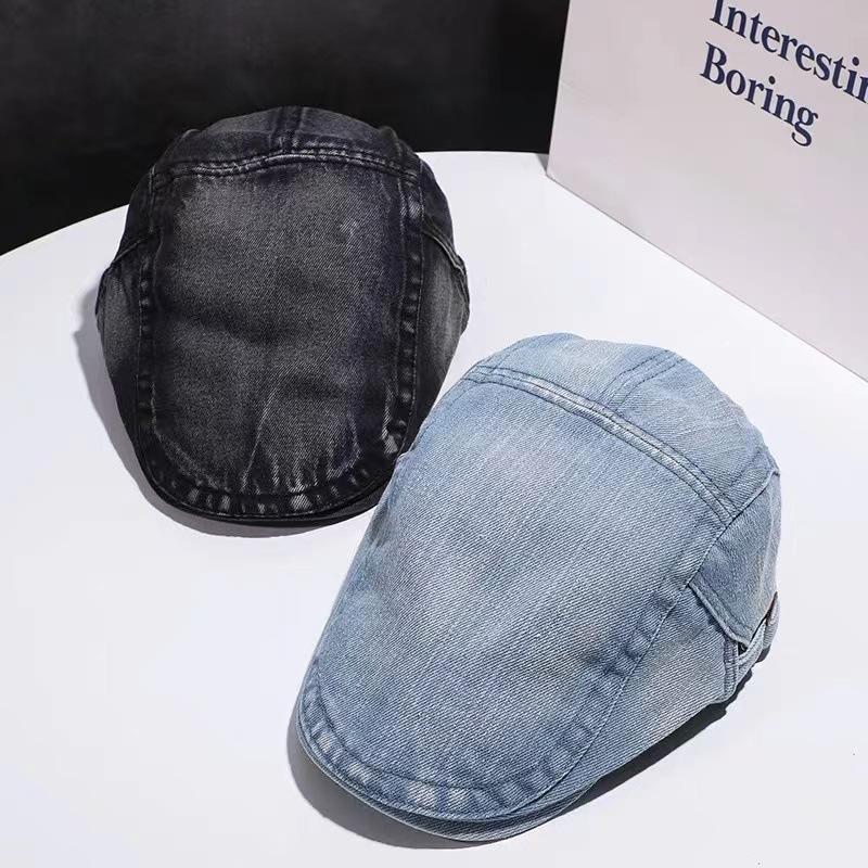 Chica sexy retro callejera americana Sombrero de mezclilla de vanguardia femenino 2023 Nueva boina de pintor uso inverso gorra con visera masculino