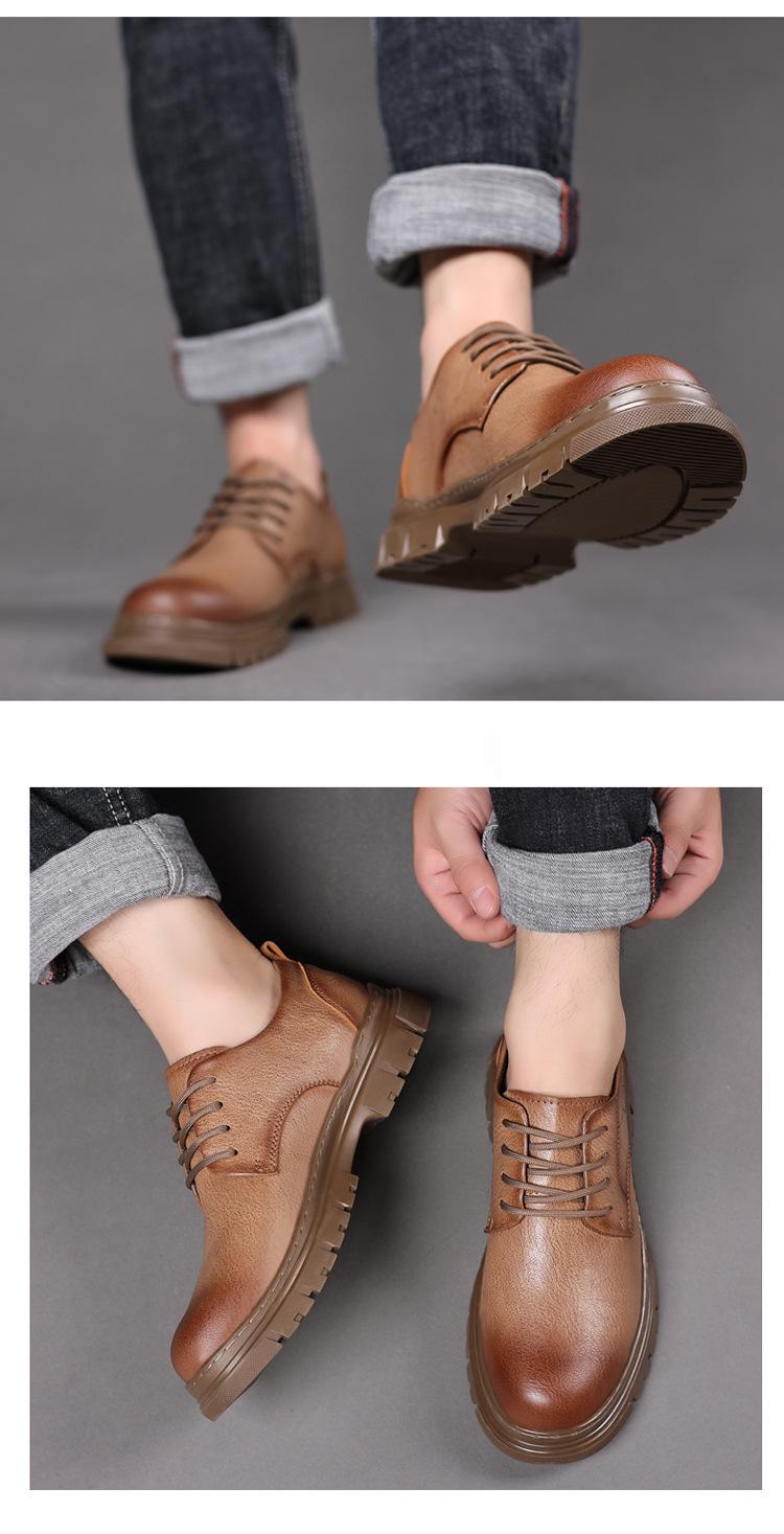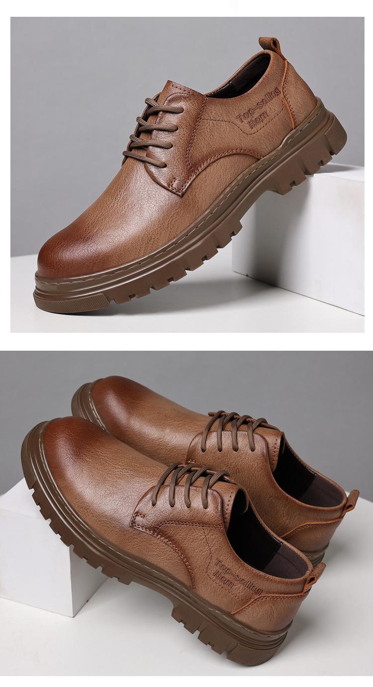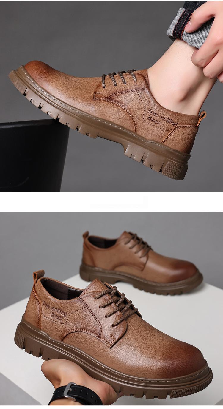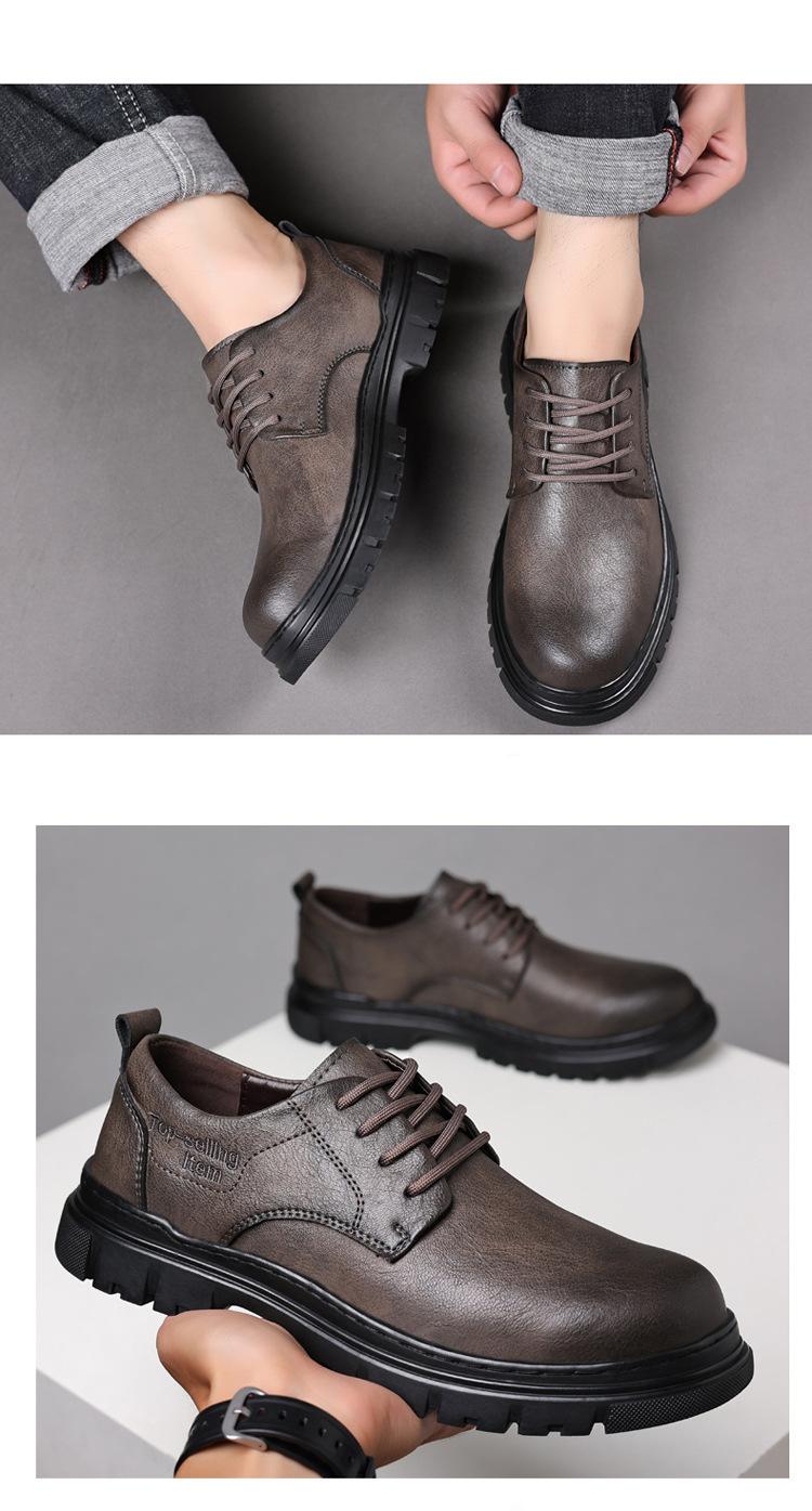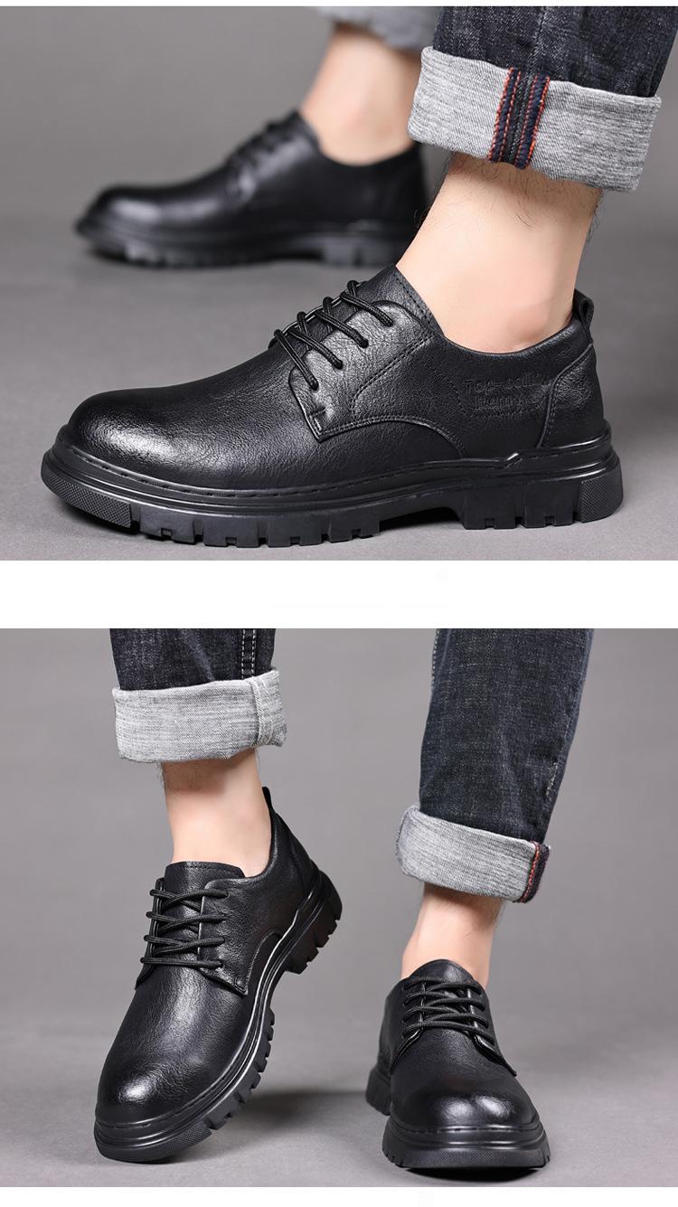 Zapatos de hombre para trabajo al aire libre, zapatos de cuero estilo británico para hombre, zapatos de otoño e invierno para jóvenes, ligeros, transpirables, de moda, tacón bajo