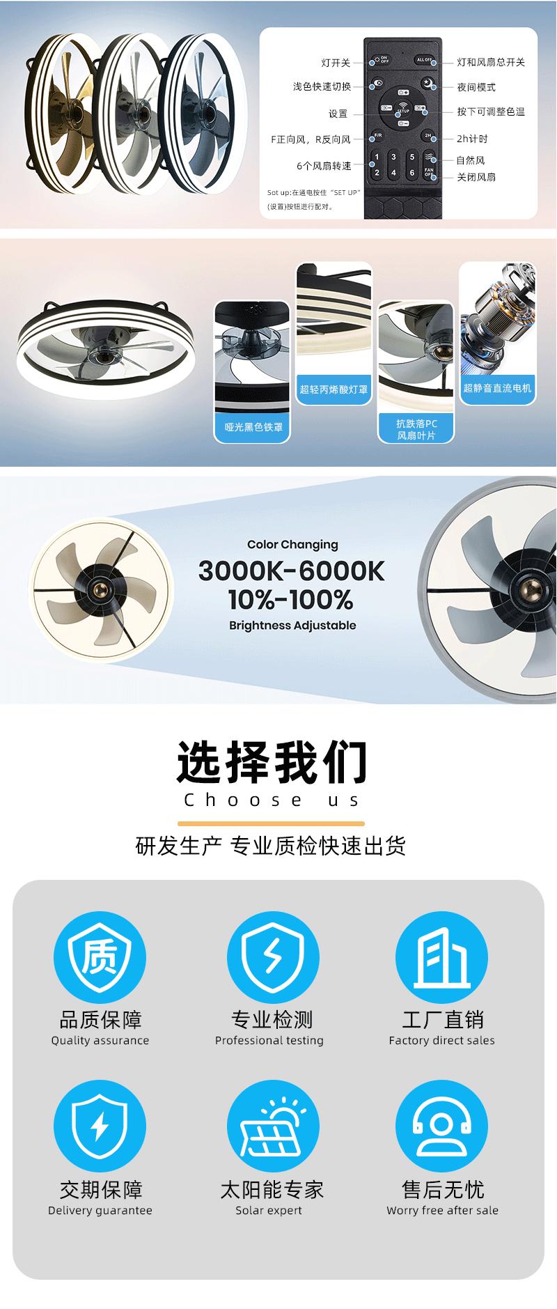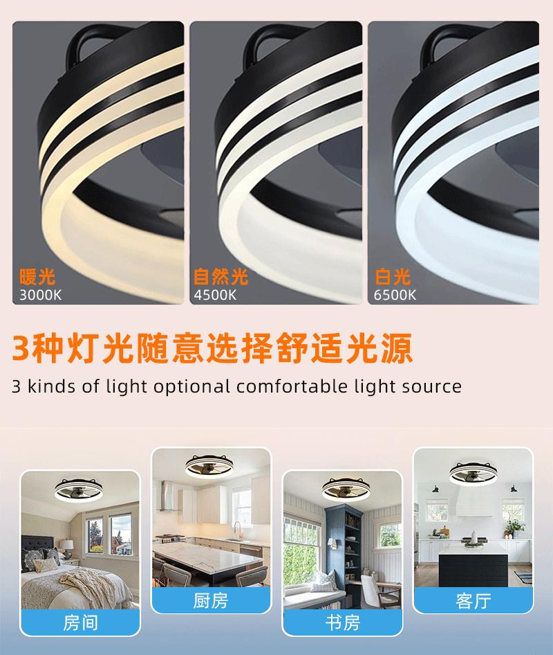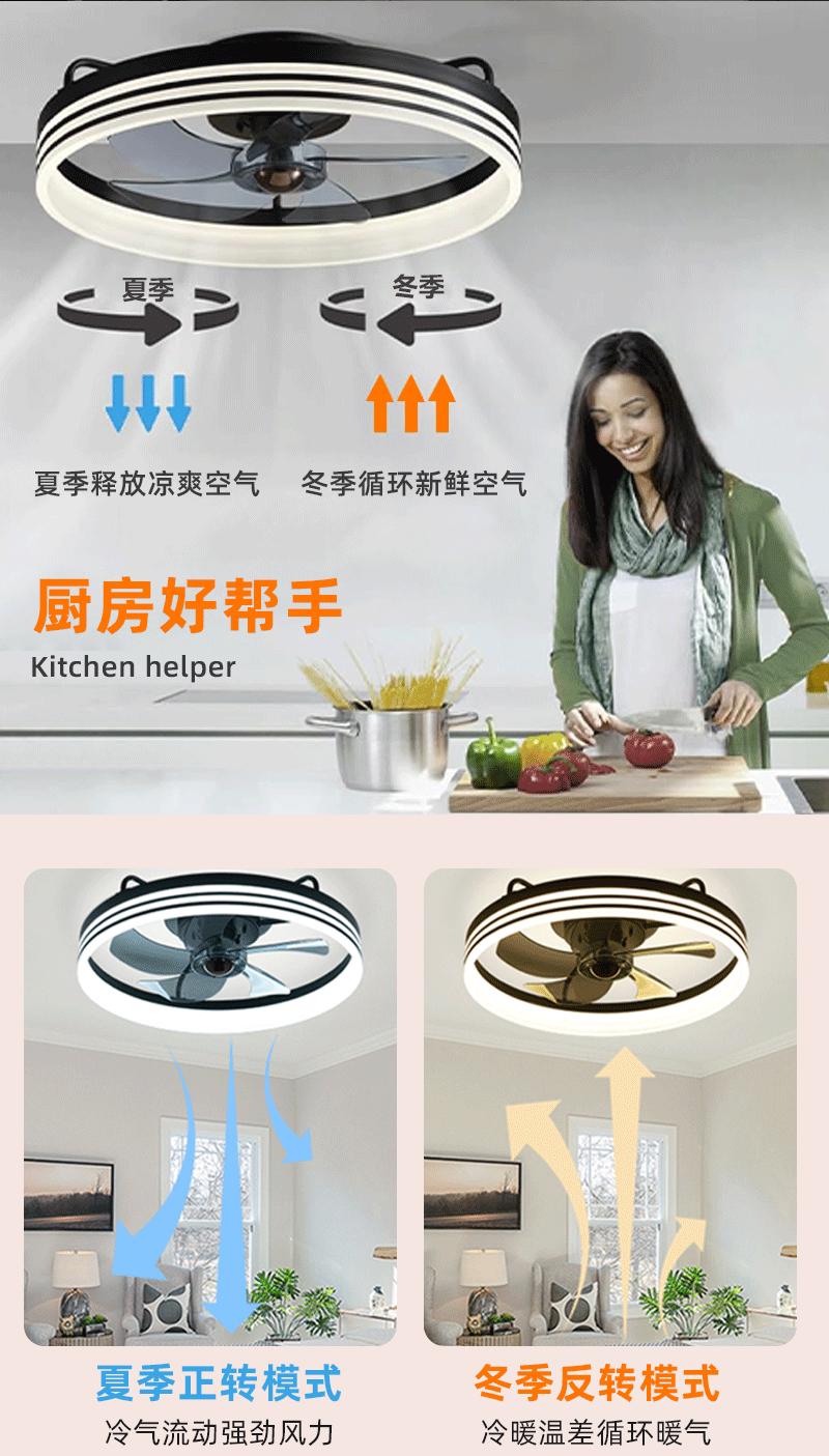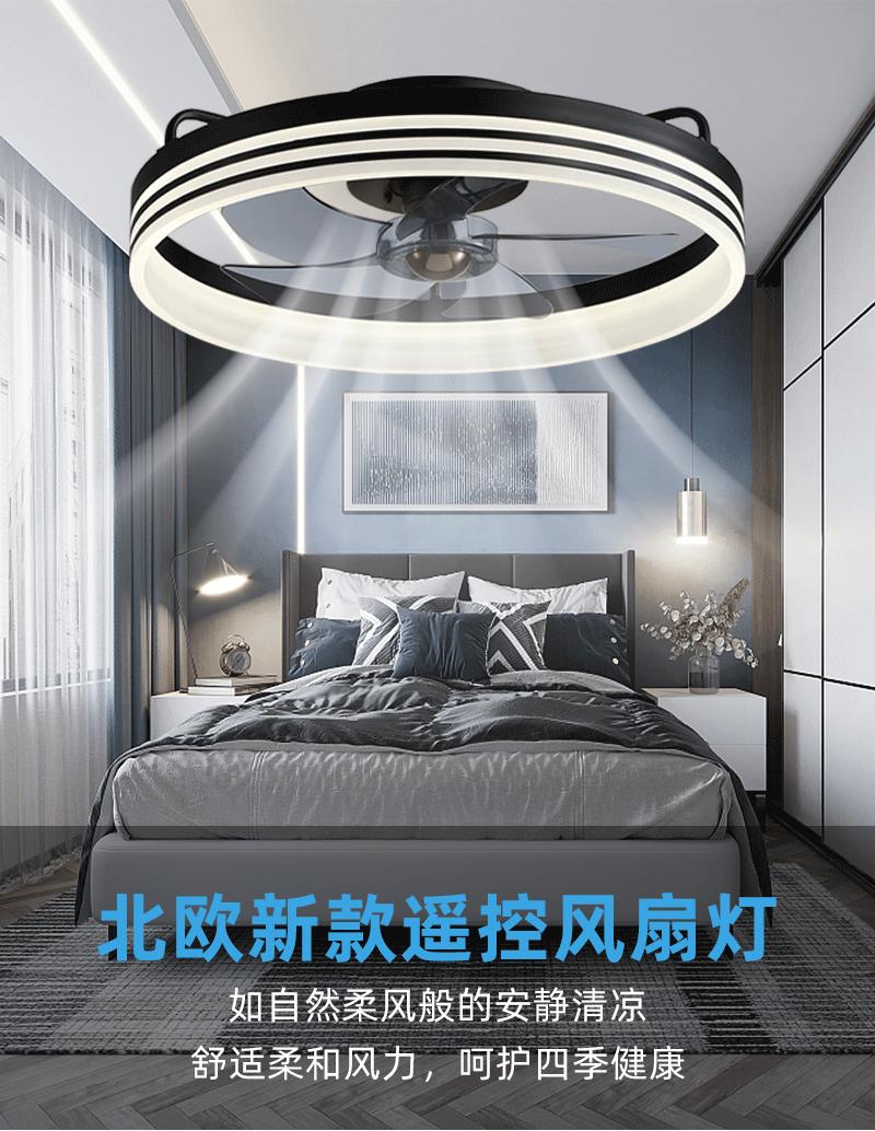 Lámpara de ventilador de techo transfronteriza nueva, conversión de frecuencia inteligente, para sala de estar, comedor, dormitorio, cocina, moderna lámpara de ventilador de techo redonda nórdica