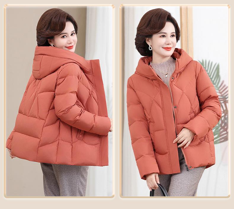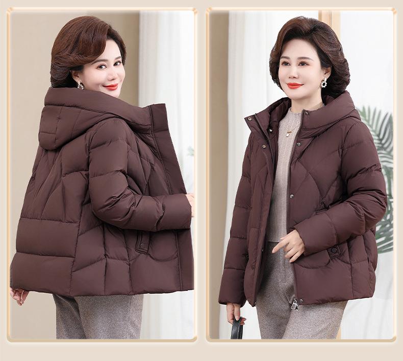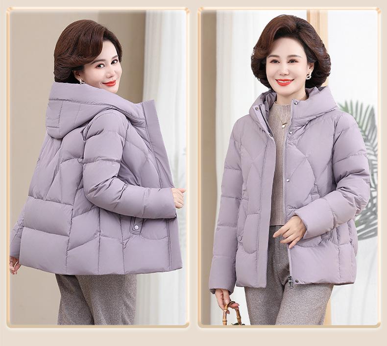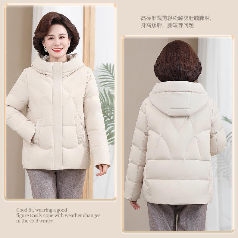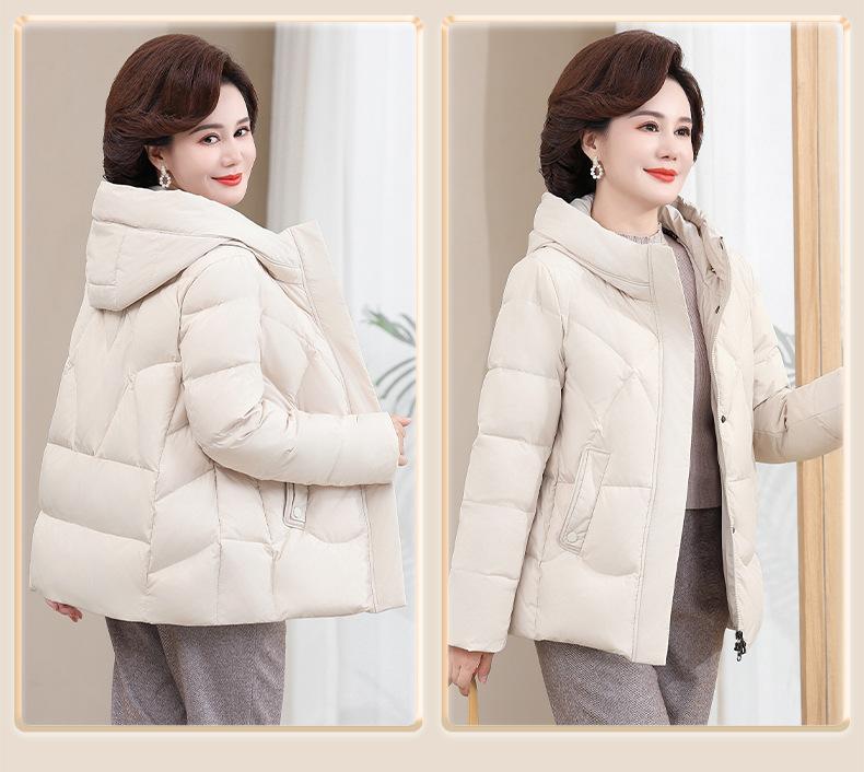 Chaqueta de plumón pequeña para madre de invierno, corta, para mujer, 2024, nueva, para mediana edad y mayores, abrigo cálido de plumón de pato blanco suelto