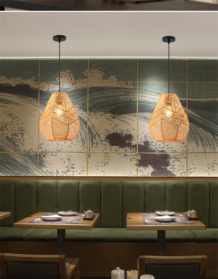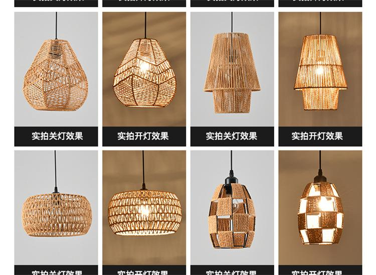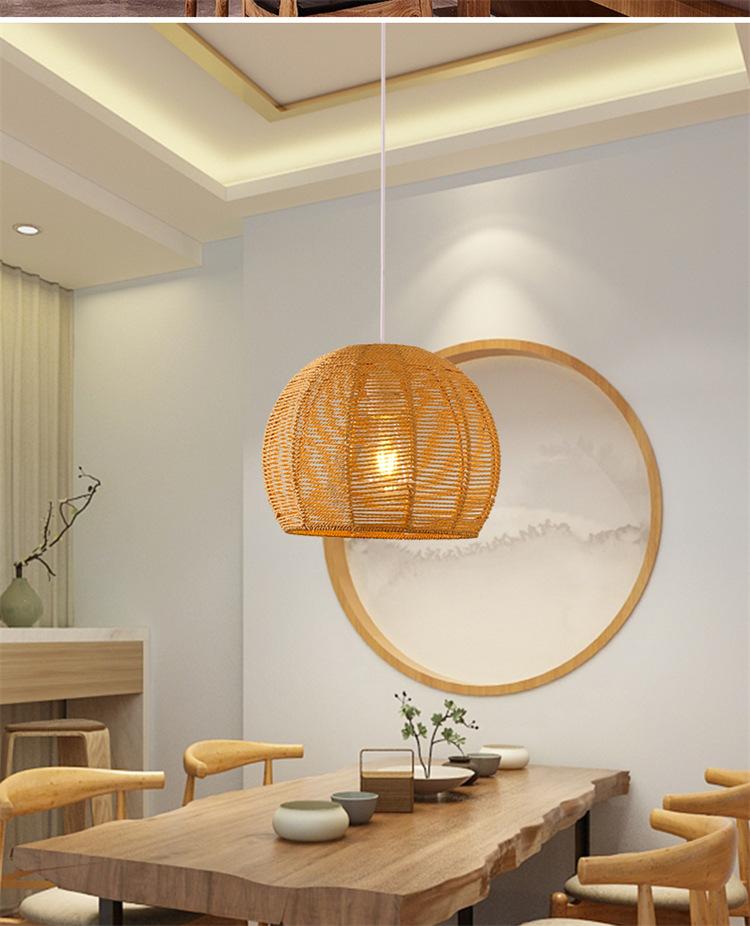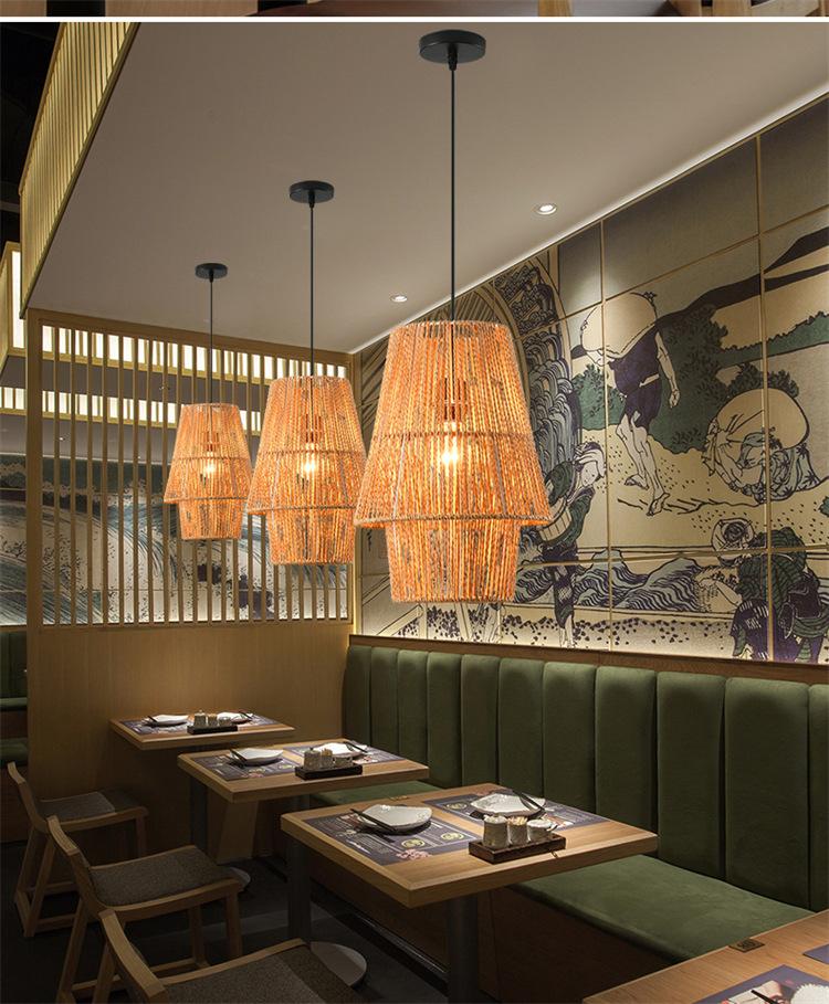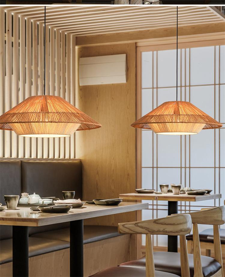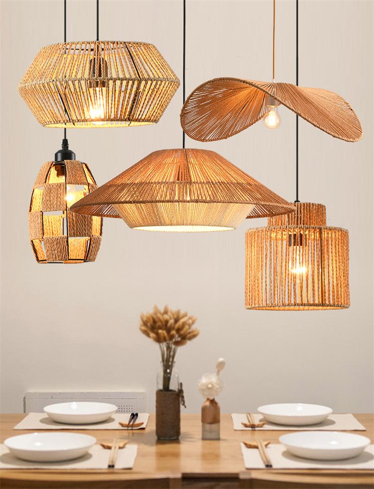 Lámpara de araña vintage de estilo japonés, sencilla y creativa, para dormitorio, sala de estar, restaurante, tejida a mano, con cuerda de cáñamo.