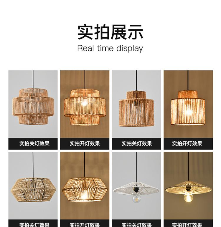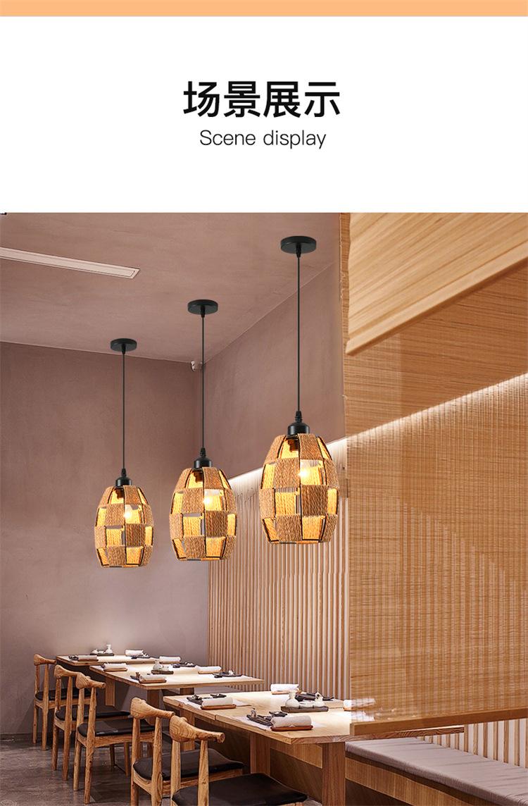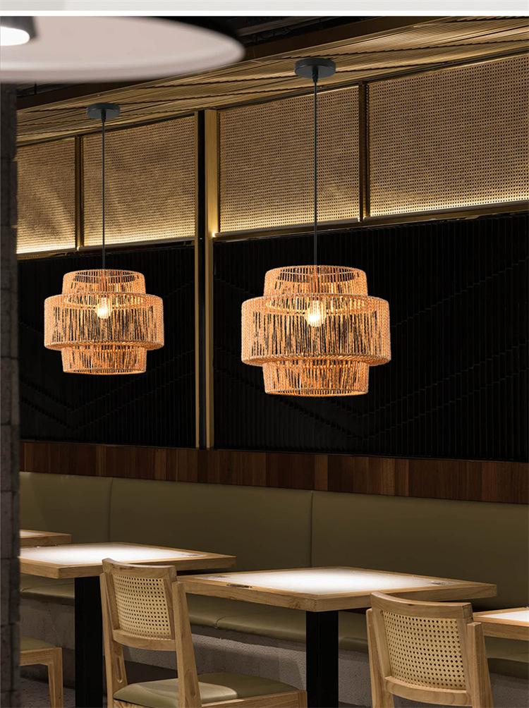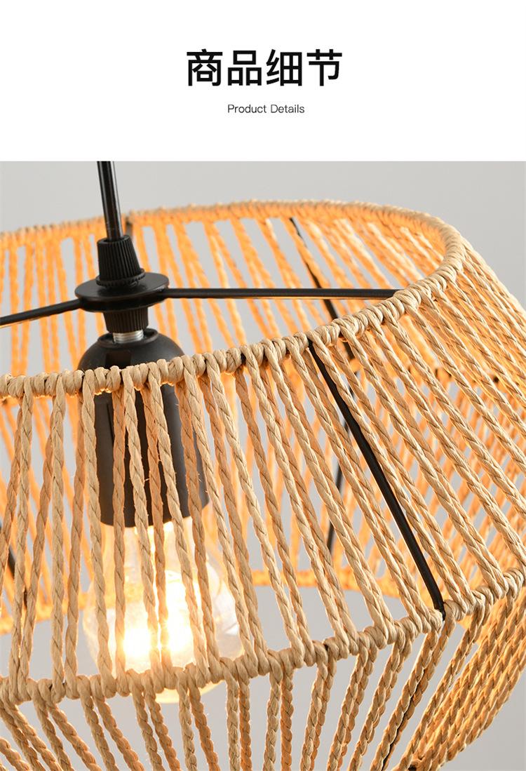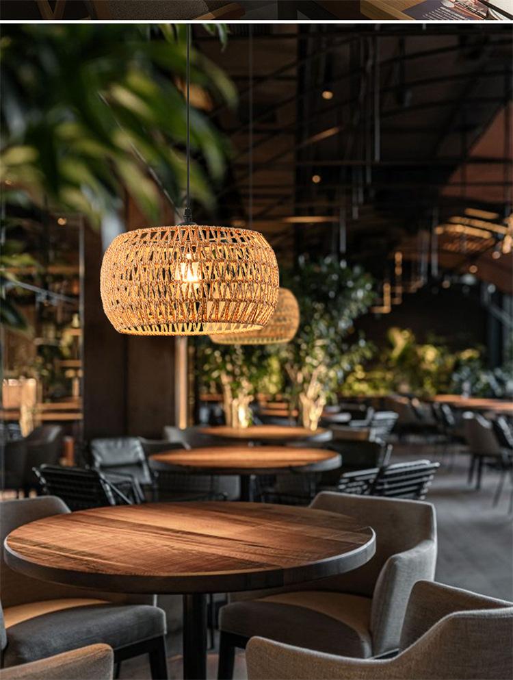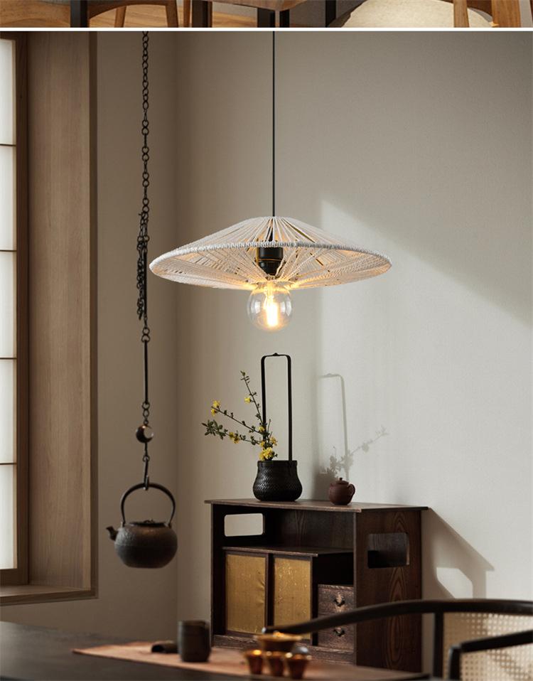 Lámpara de araña vintage de estilo japonés, sencilla y creativa, para dormitorio, sala de estar, restaurante, tejida a mano, con cuerda de cáñamo.