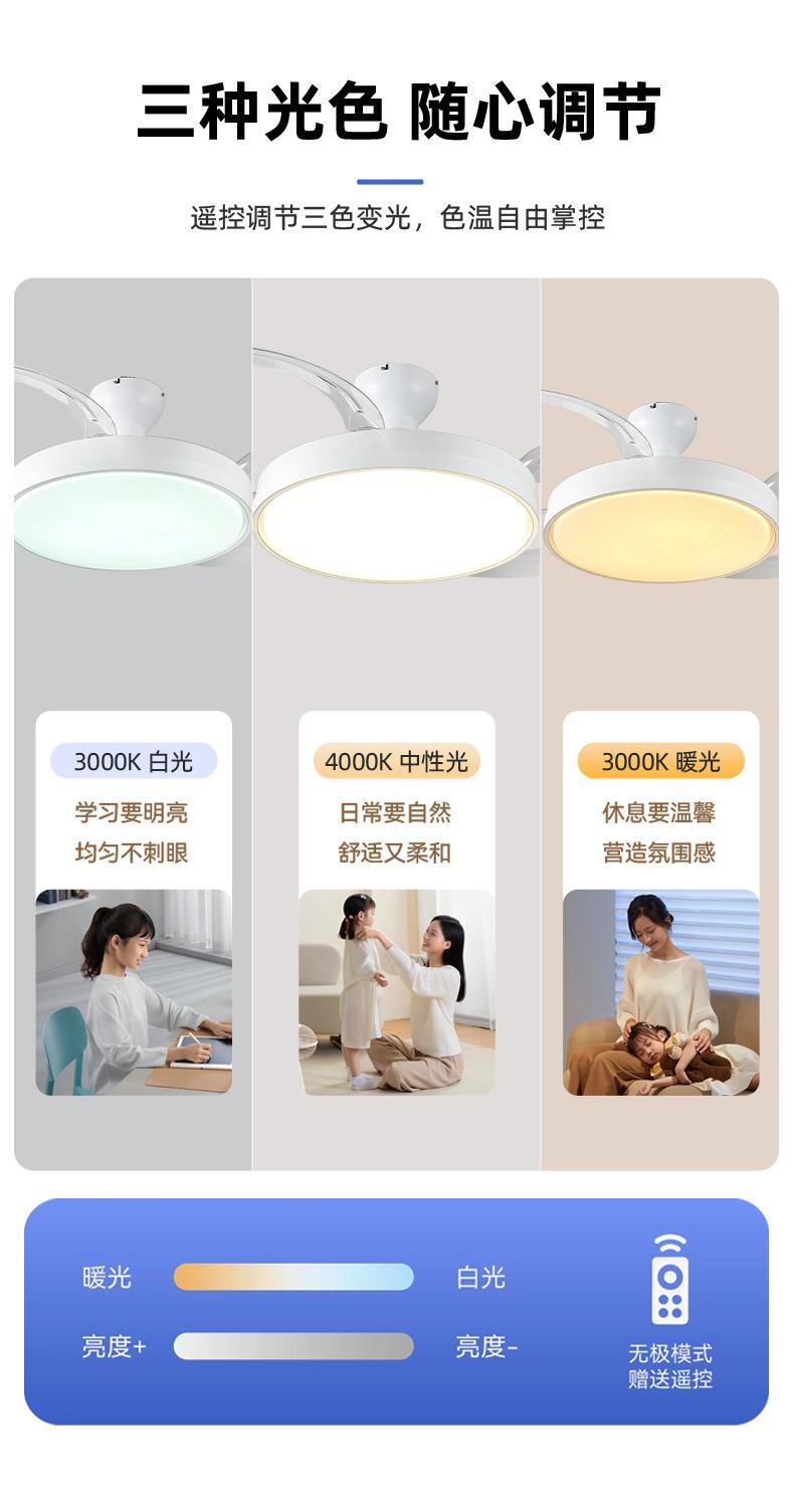Nueva lámpara de ventilador de techo moderna minimalista para restaurante, lámpara de ventilador de techo invisible, lámpara de dormitorio con protección ocular de espectro completo, lámpara Zhongshan