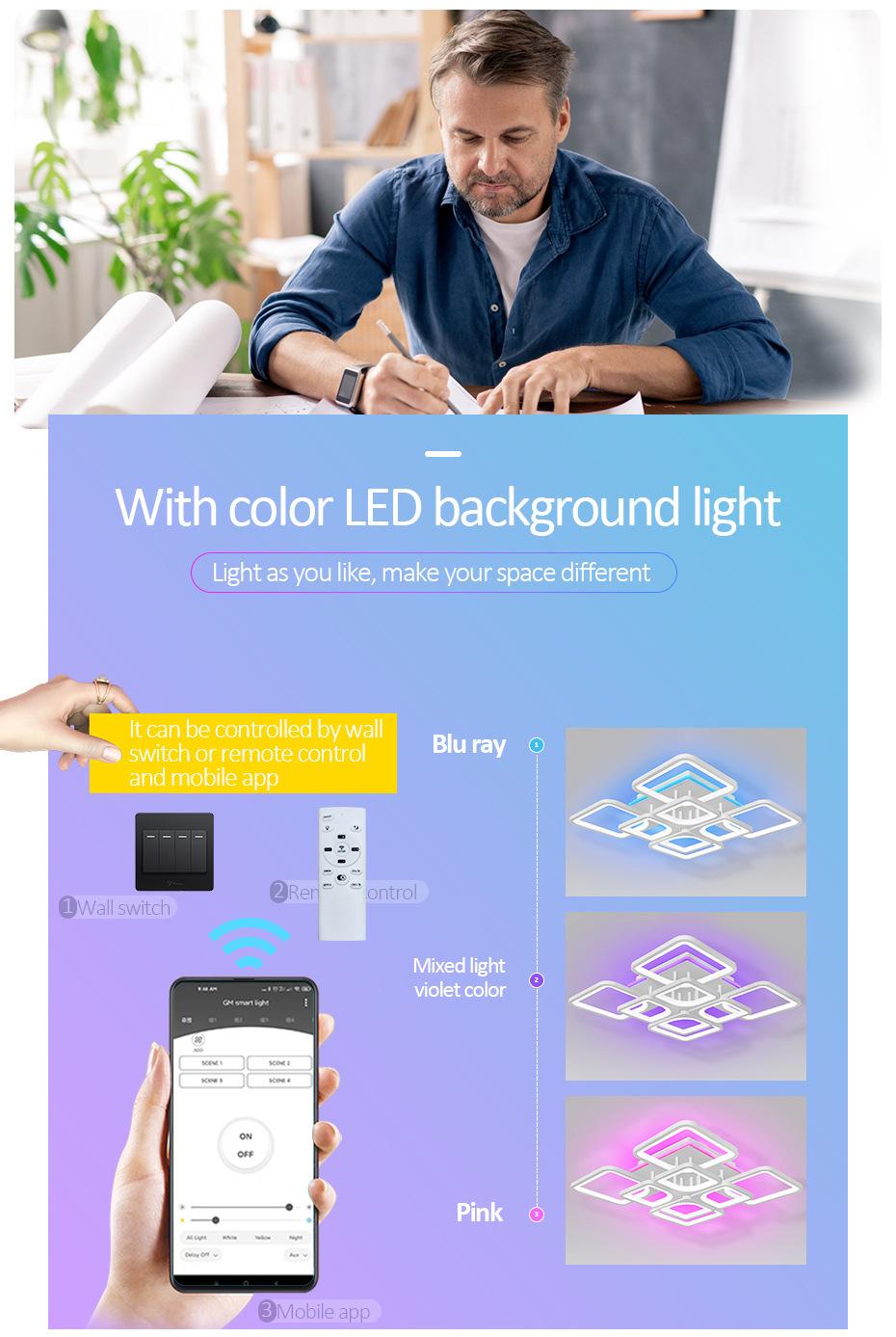Lámpara de techo LED acrílica para dormitorio, lámpara inteligente cuadrada para sala de estar, lámpara moderna y sencilla para estudio, comedor y lámparas transfronterizas.