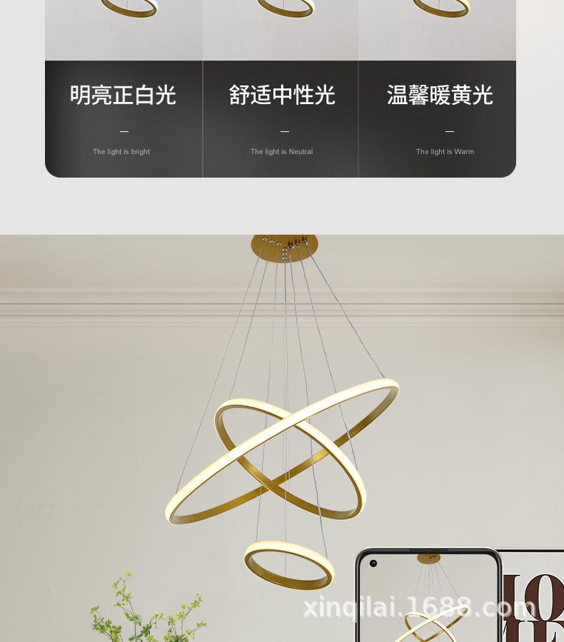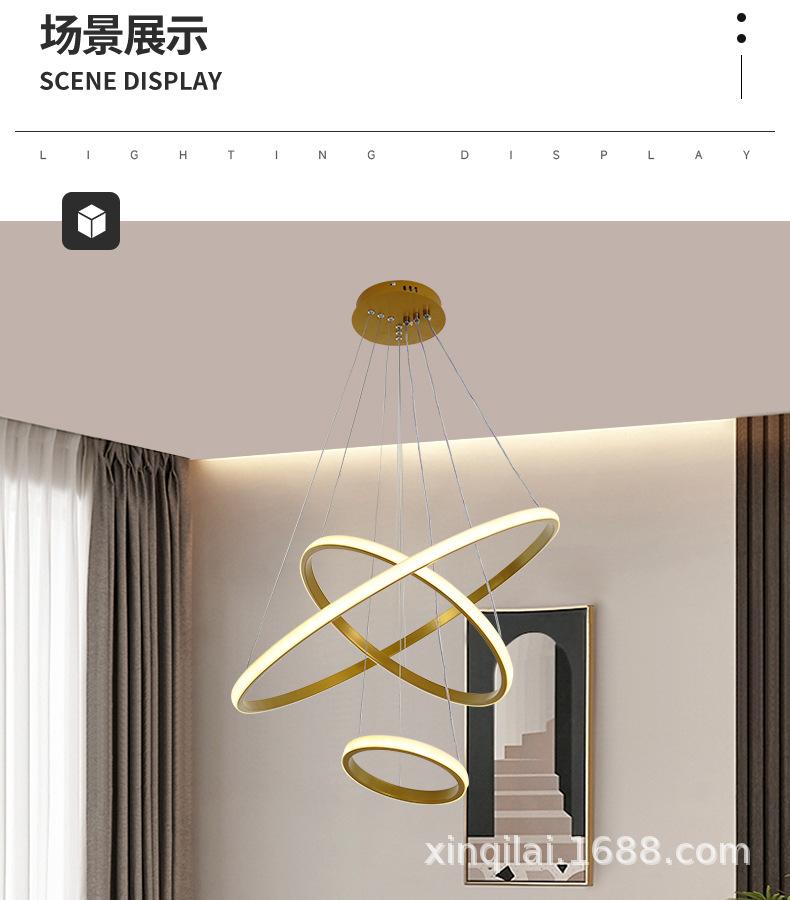 Lámpara de araña minimalista moderna de 3 anillos para sala de estar, lámpara de araña circular creativa nórdica para dormitorio, bar y comedor, venta al por mayor