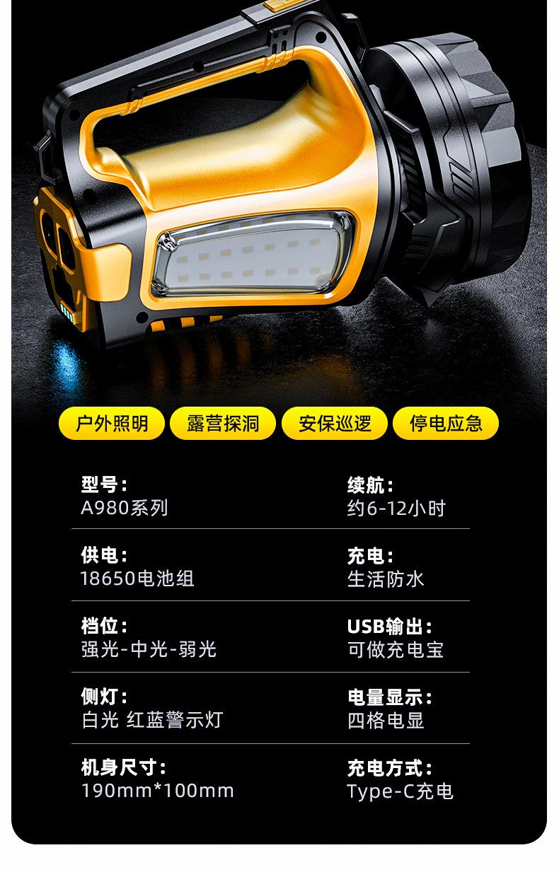 Reflector multifuncional para exteriores, luz de trabajo portátil de alta potencia, luz de patrullaje de gran tamaño, luz de emergencia
