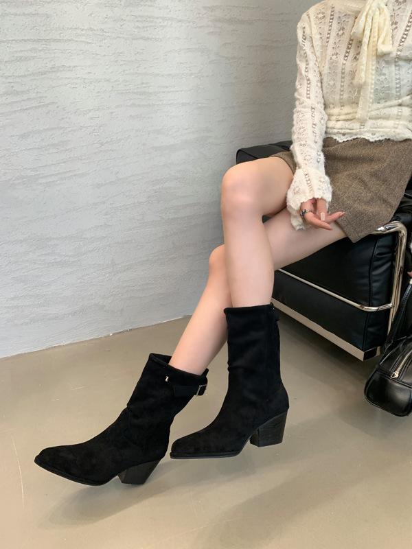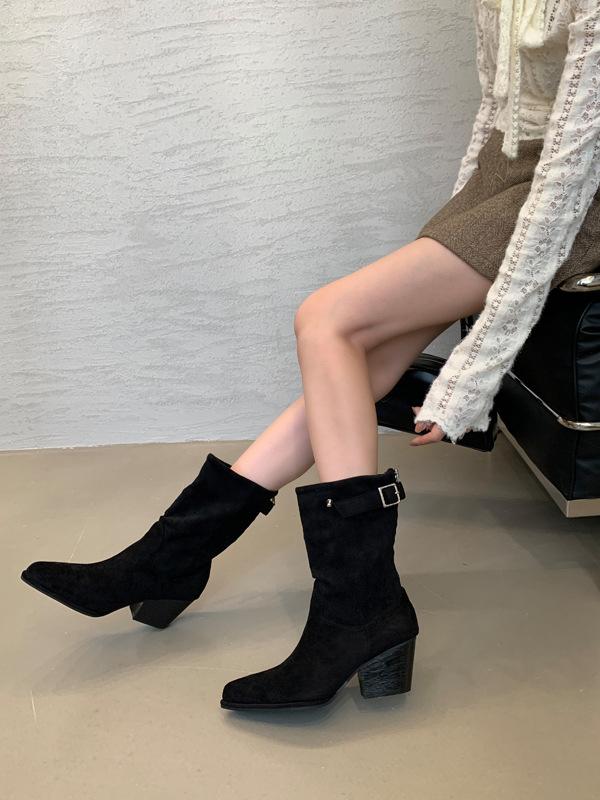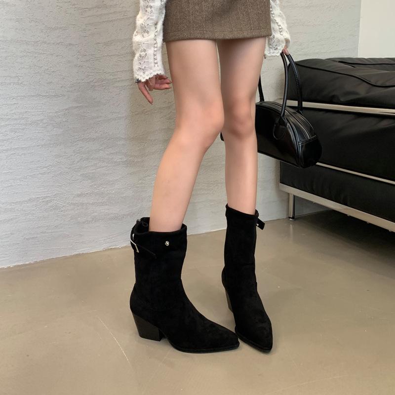 Altura del tacón: aproximadamente 6.5 cmMaterial: Cachemira, suela de goma resistente al desgaste