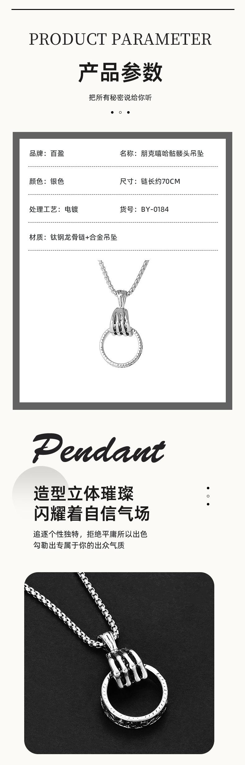 Collar con colgante circular de mano de esqueleto transfronterizo para hombre, estilo hip hop, estilo callejero, con cadena larga, para Europa y Estados Unidos