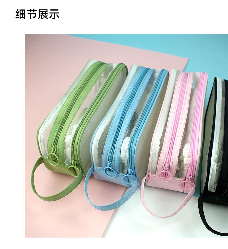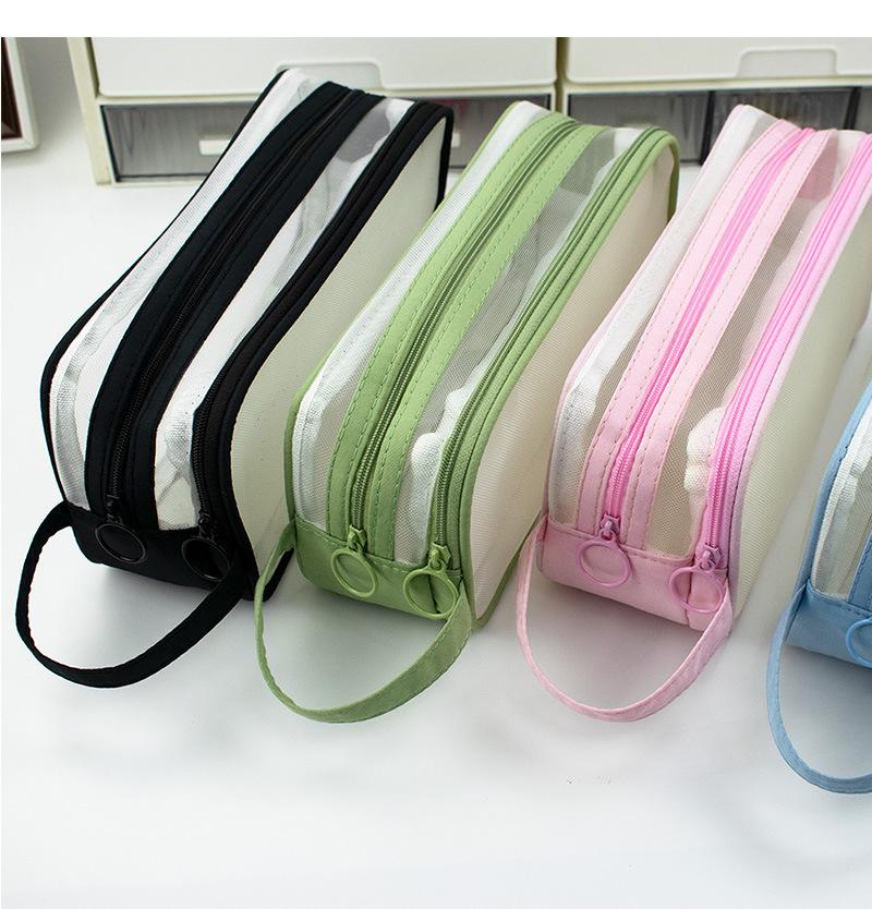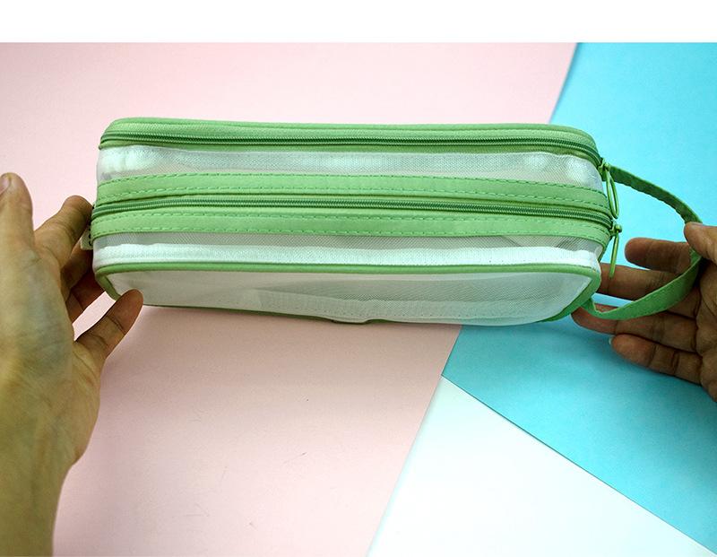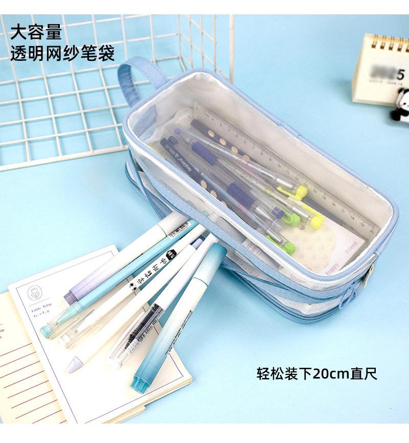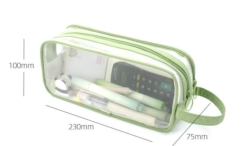 Estuche de malla transparente de doble capa, estuche portátil multicapa sencillo, bolsa de almacenamiento de papelería para exámenes de estudiantes de gran capacidad