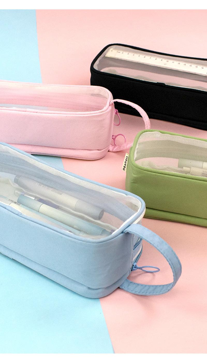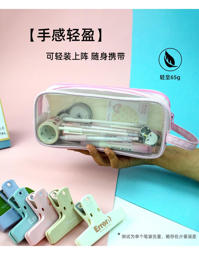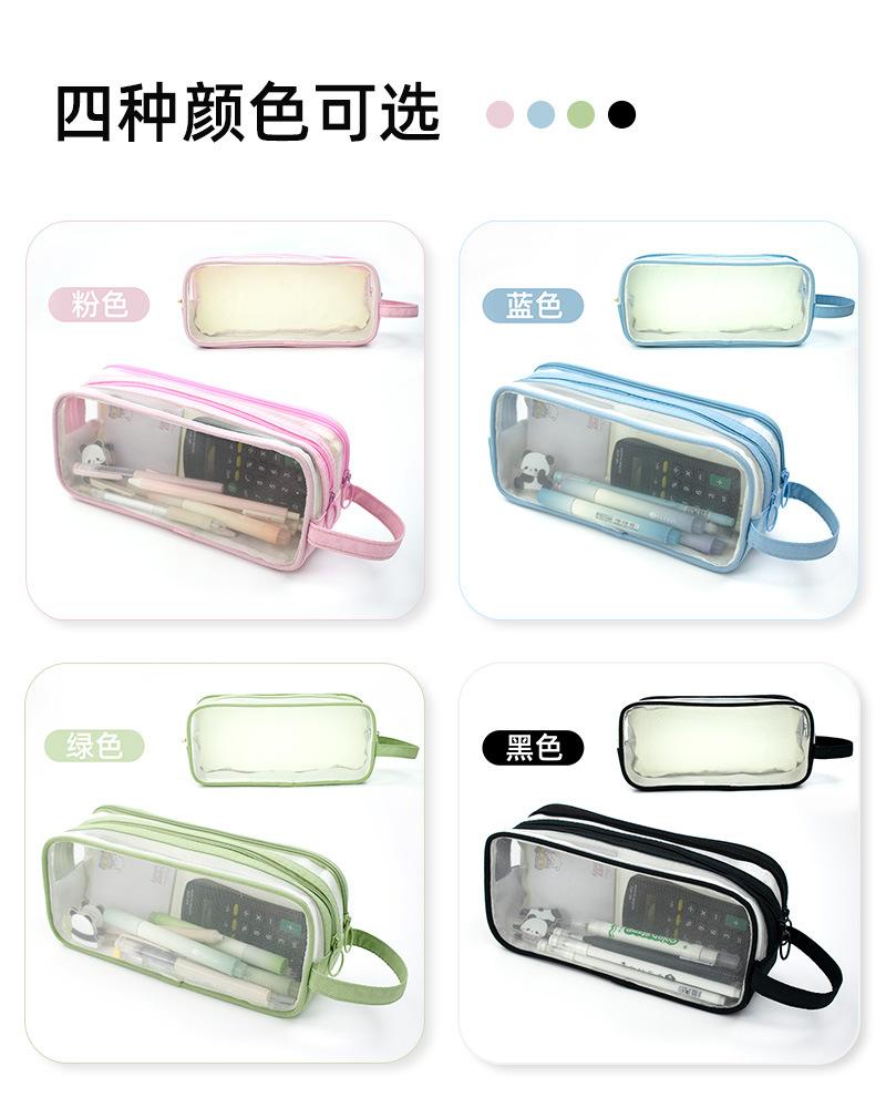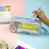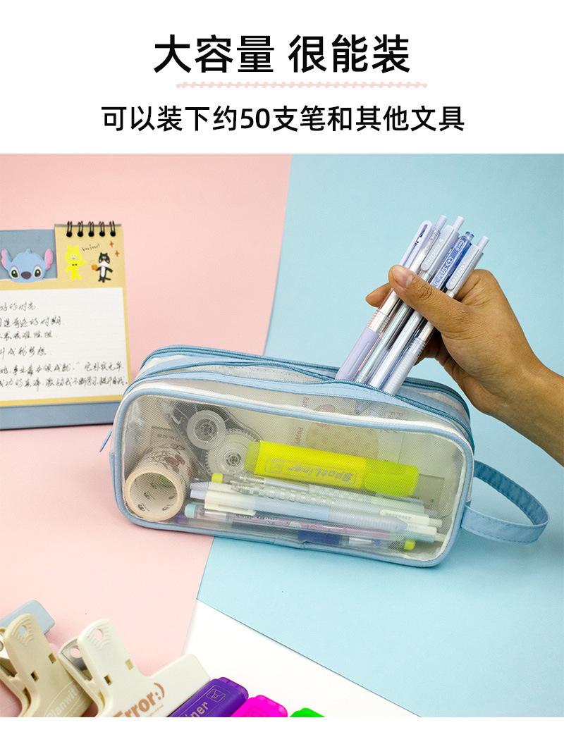 Estuche de malla transparente de doble capa, estuche portátil multicapa sencillo, bolsa de almacenamiento de papelería para exámenes de estudiantes de gran capacidad