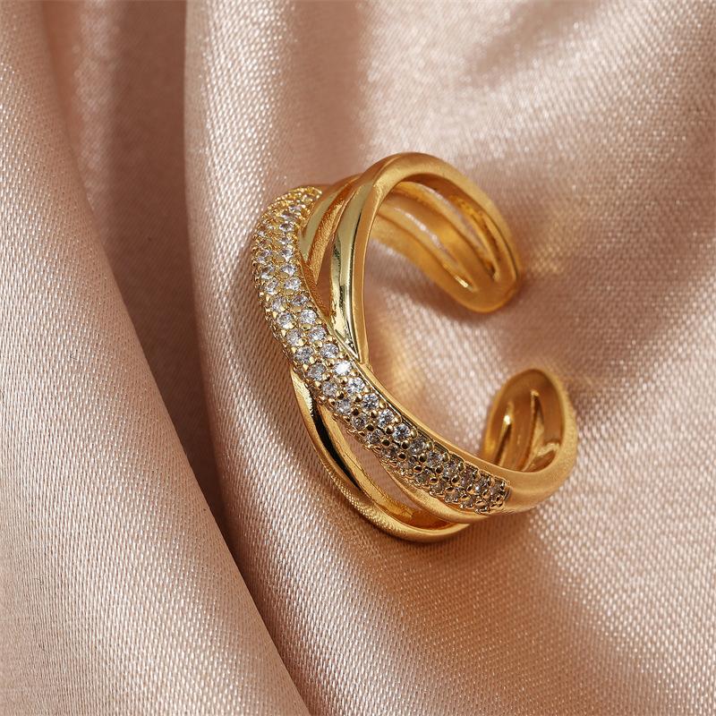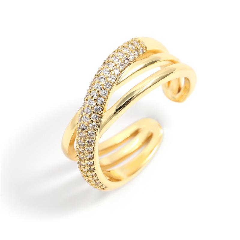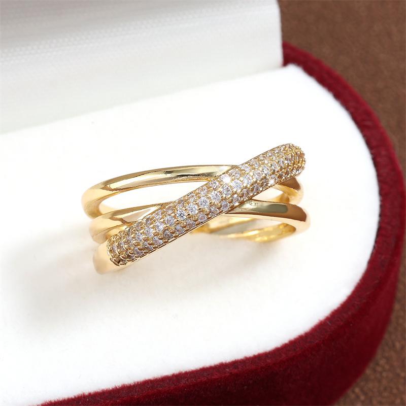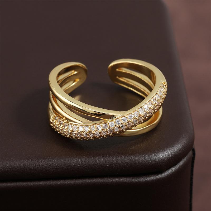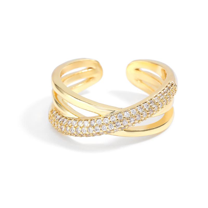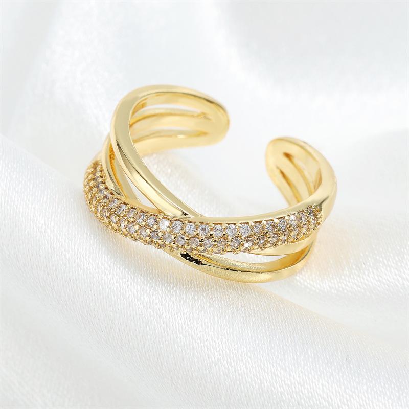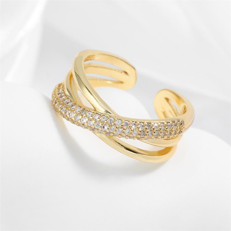 Anillo Abierto de Cruz de Zirconia de Alta Gama Estilo Dulce y Cool Anillo para el Dedo Índice Venta al por Mayor Joyería de Nicho Versátil Personalizada de Lujo Ligero para Mujer