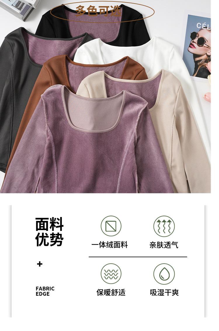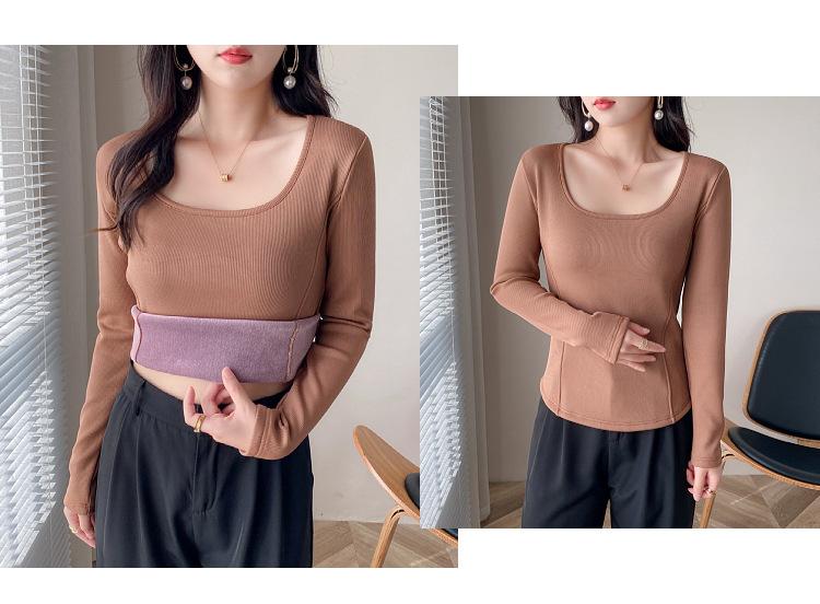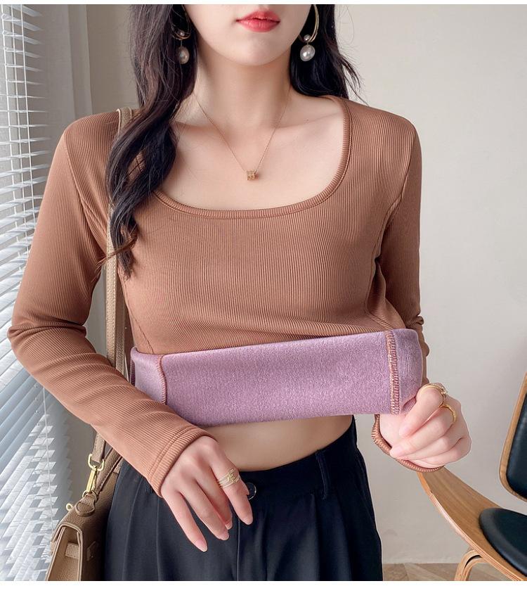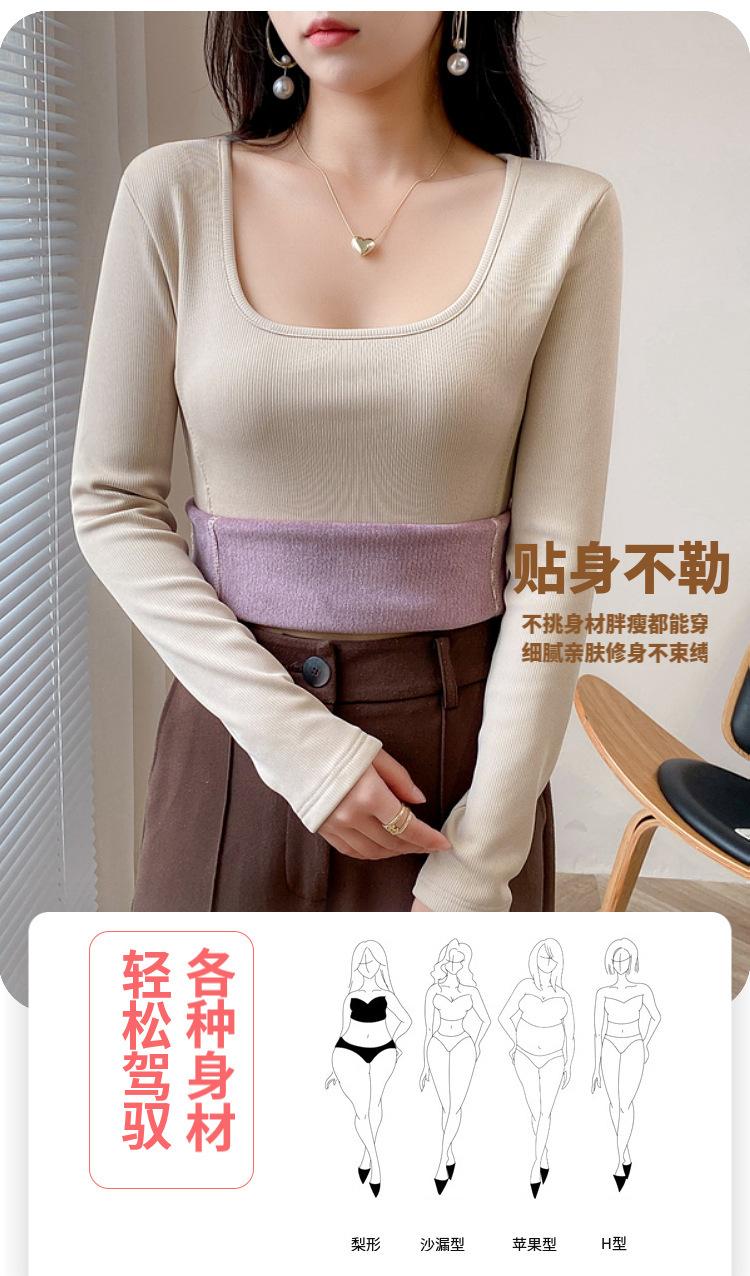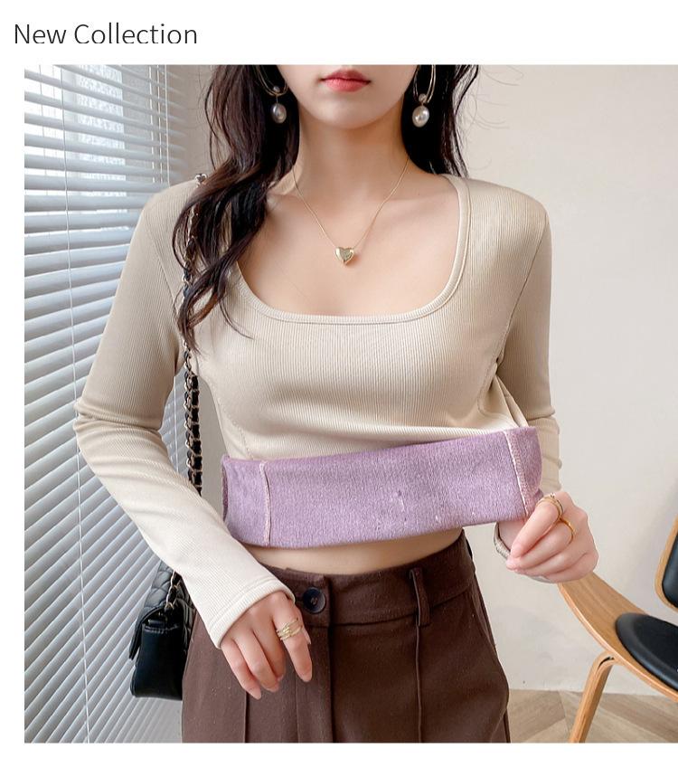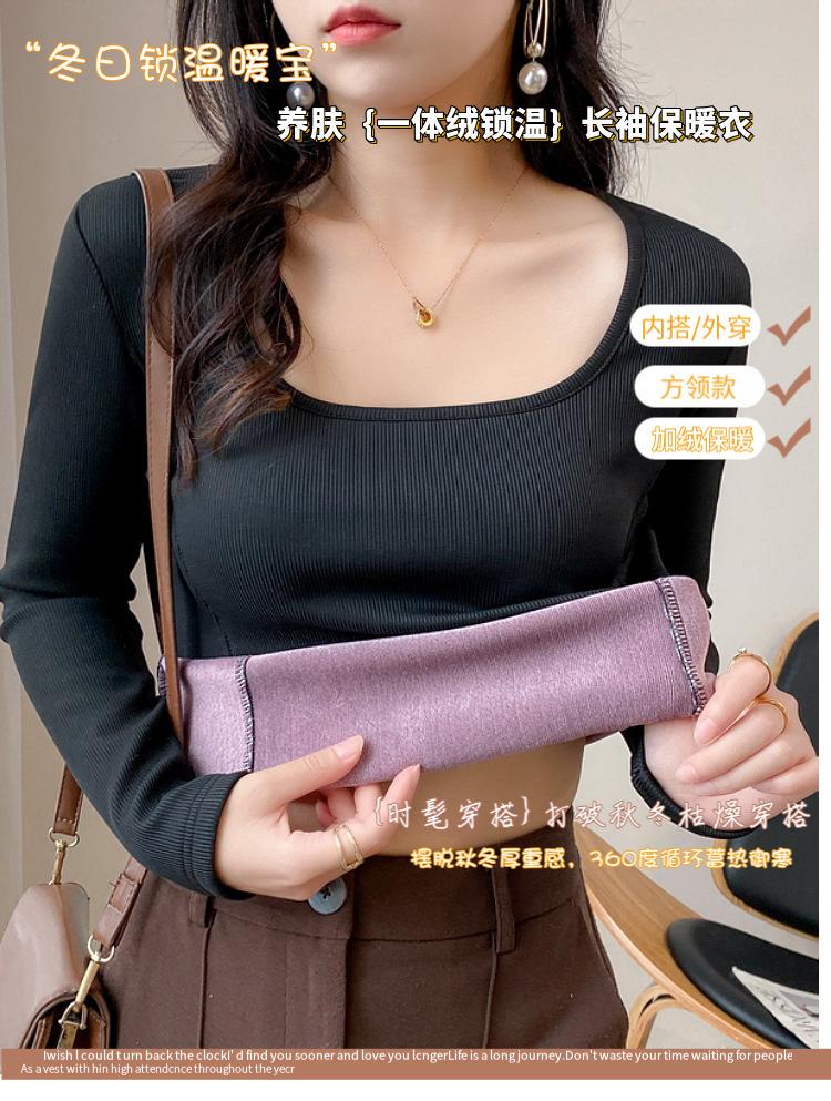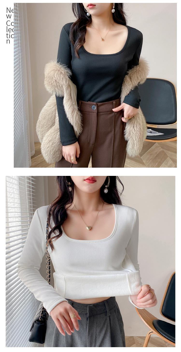 Top Térmico de Terciopelo de Una Pieza con Forro Polar de Manga Larga Camiseta Base Otoño e Invierno 2025 Principios de Otoño Nuevo Top Interior y Exterior de Cuello Cuadrado