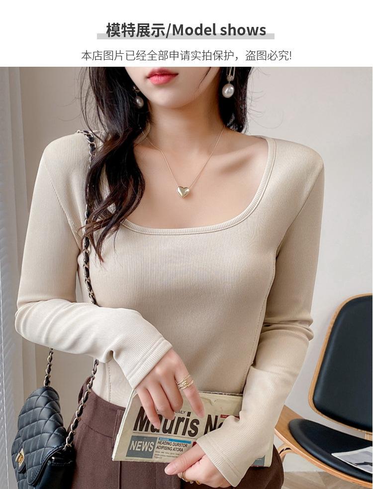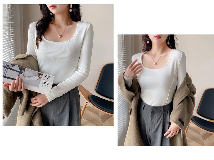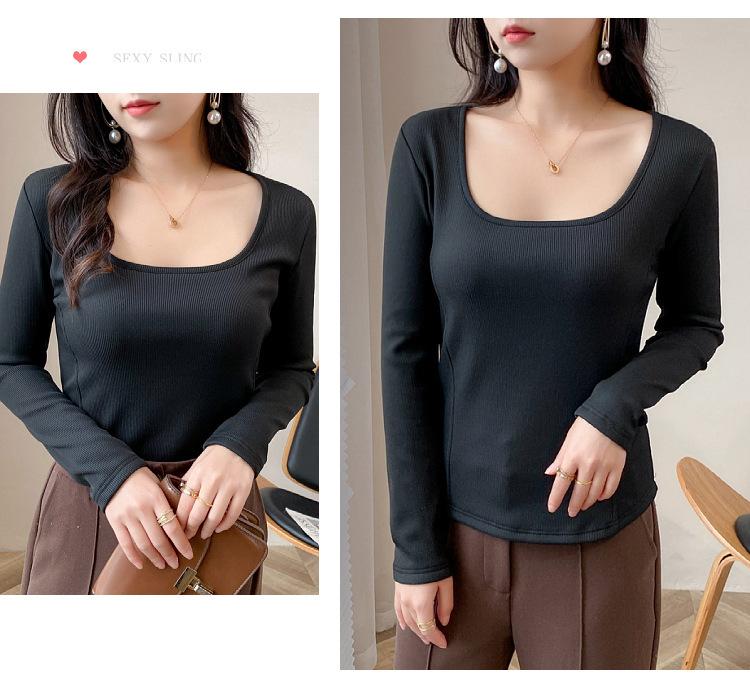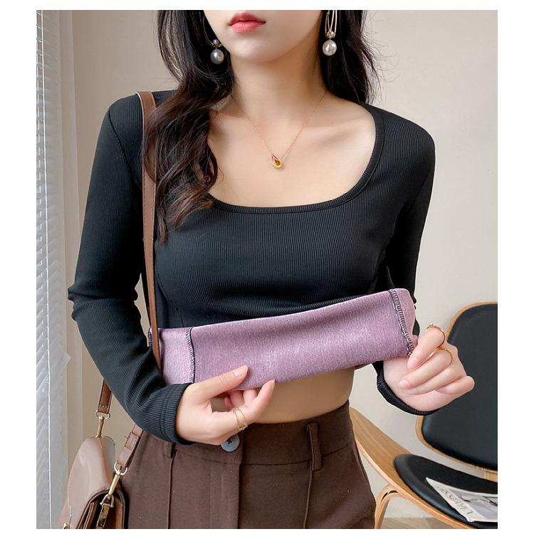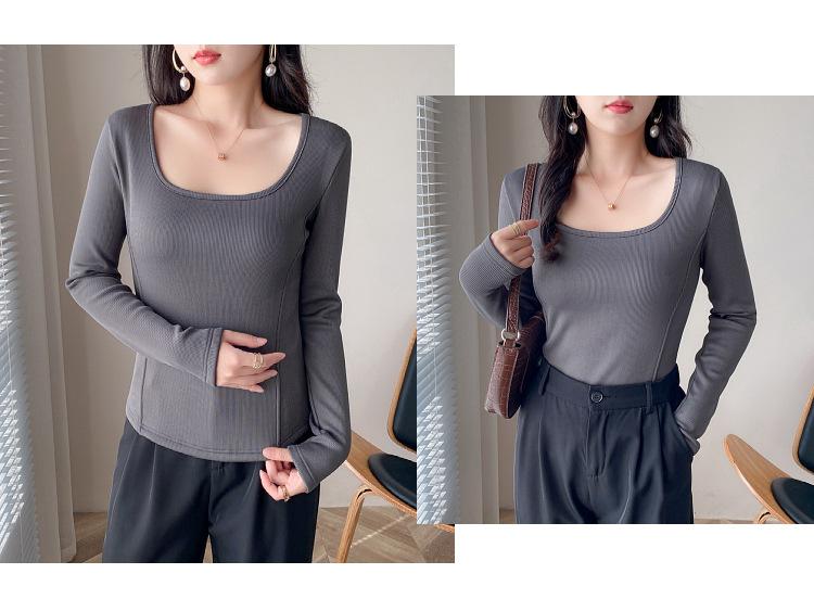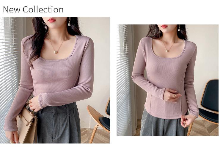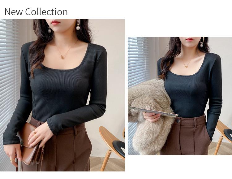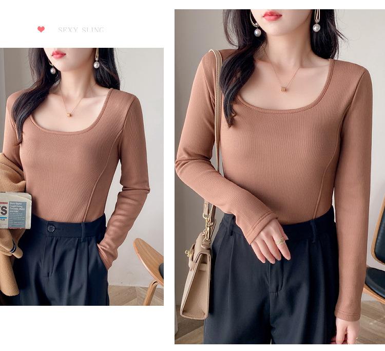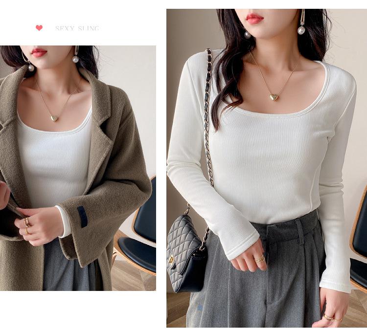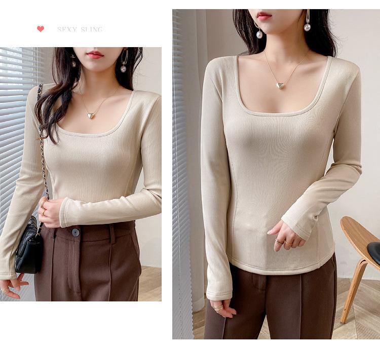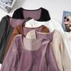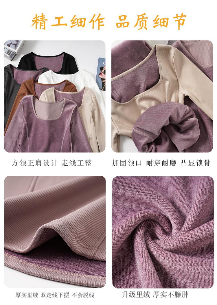 Top Térmico de Terciopelo de Una Pieza con Forro Polar de Manga Larga Camiseta Base Otoño e Invierno 2025 Principios de Otoño Nuevo Top Interior y Exterior de Cuello Cuadrado