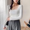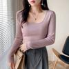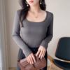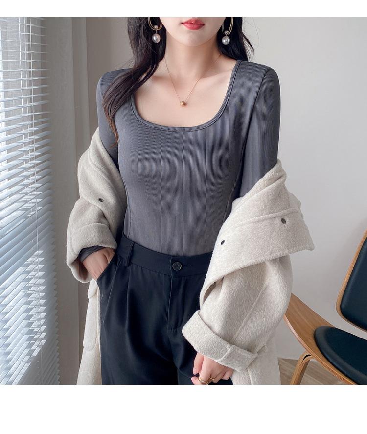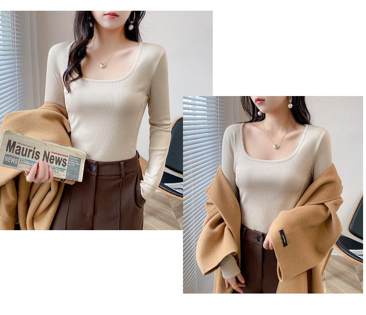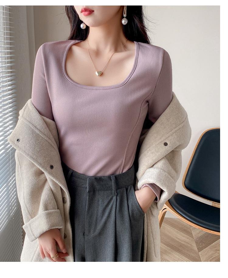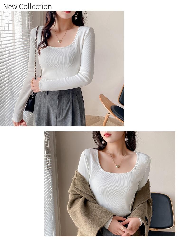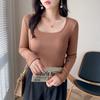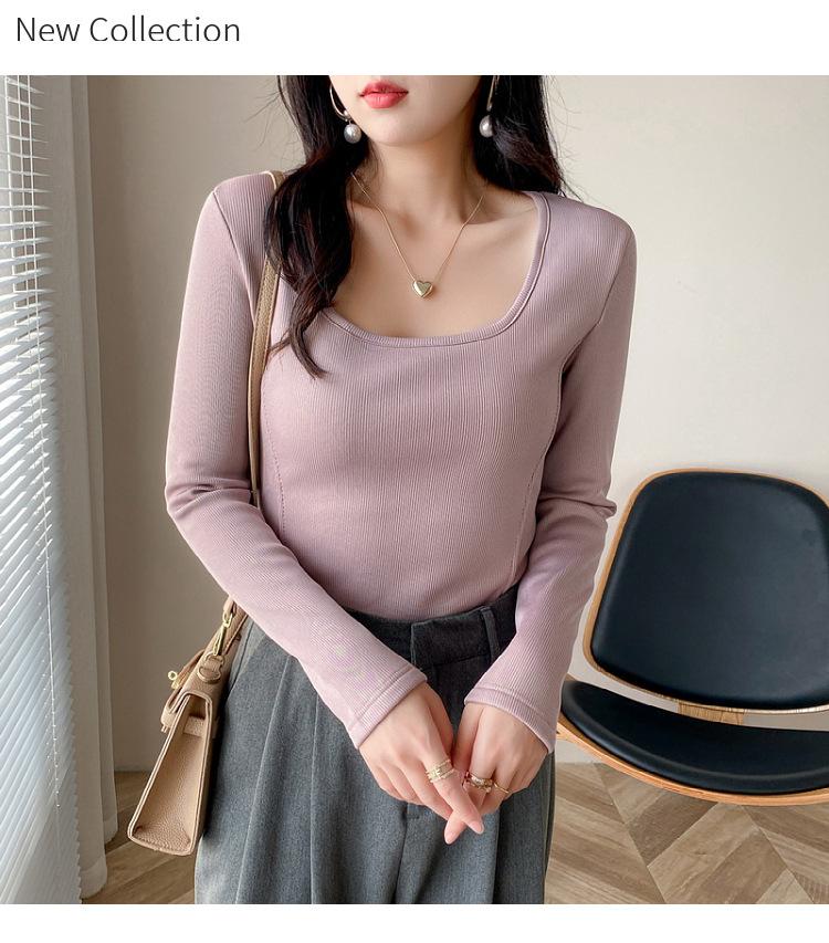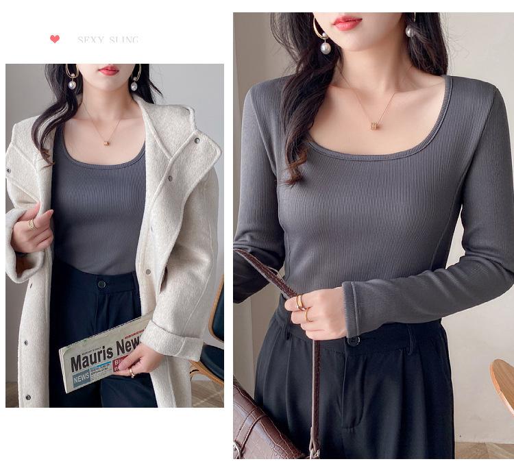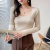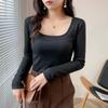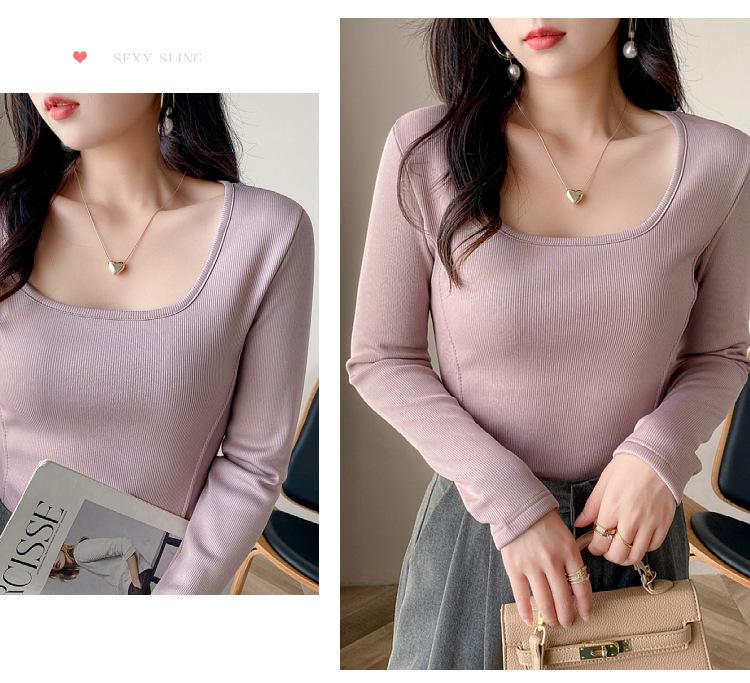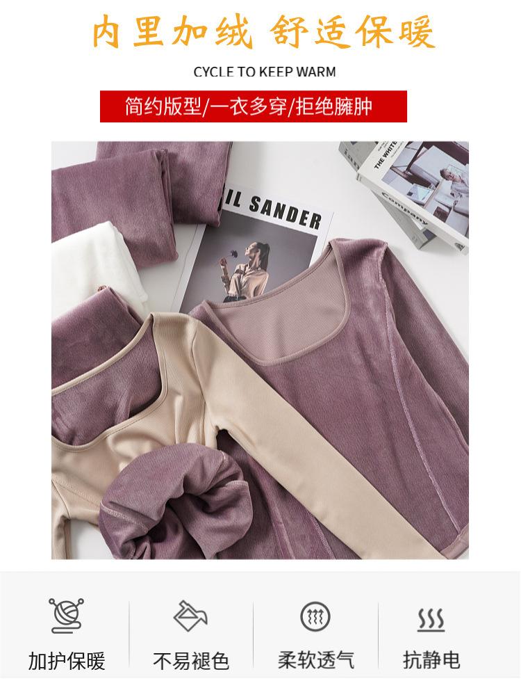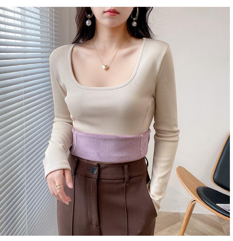 Top Térmico de Terciopelo de Una Pieza con Forro Polar de Manga Larga Camiseta Base Otoño e Invierno 2025 Principios de Otoño Nuevo Top Interior y Exterior de Cuello Cuadrado