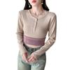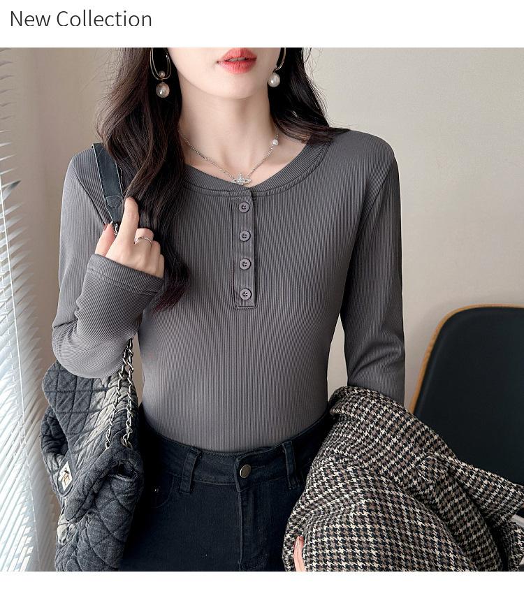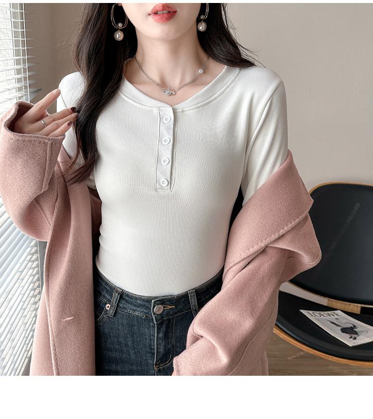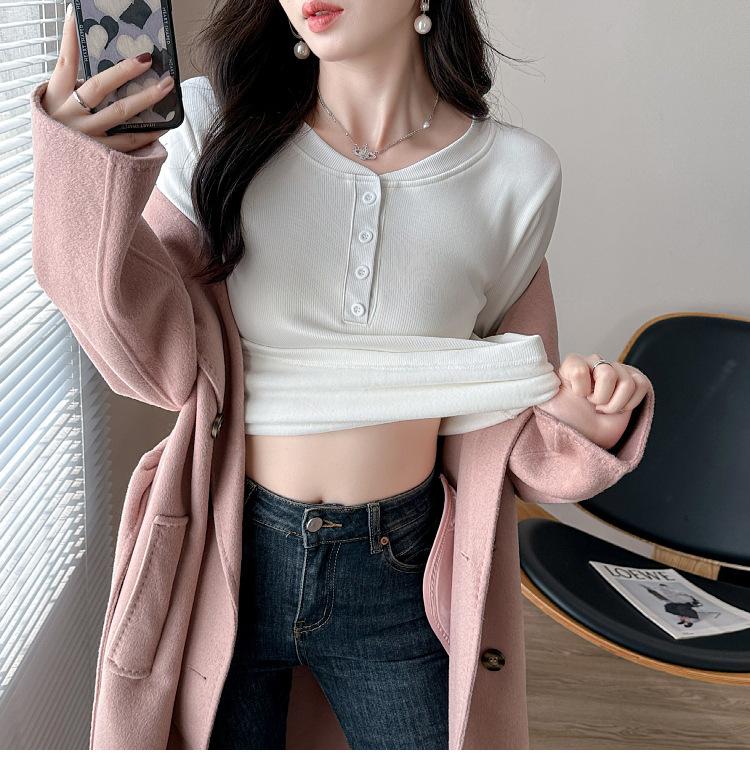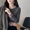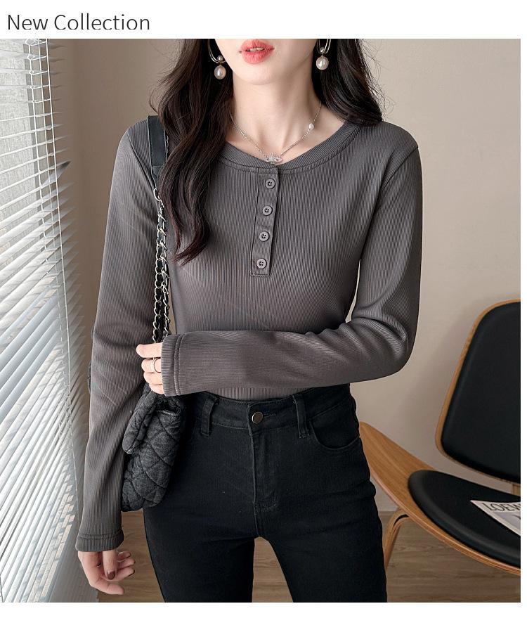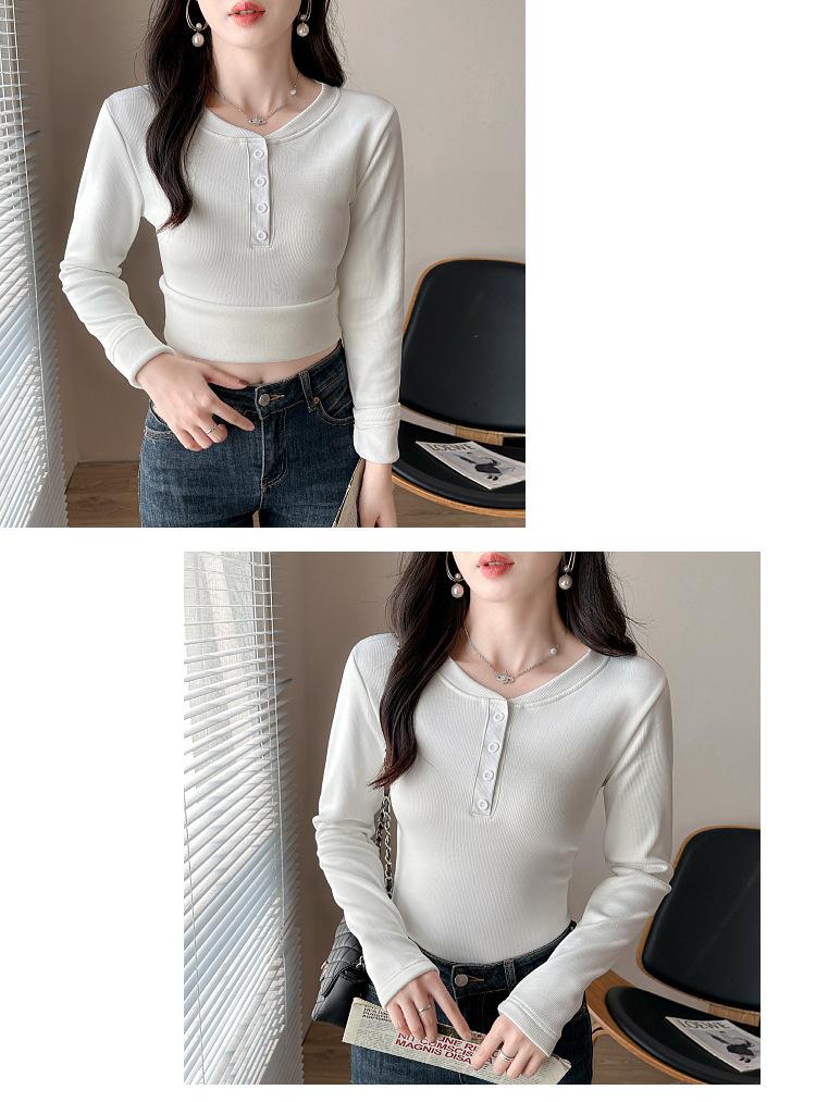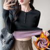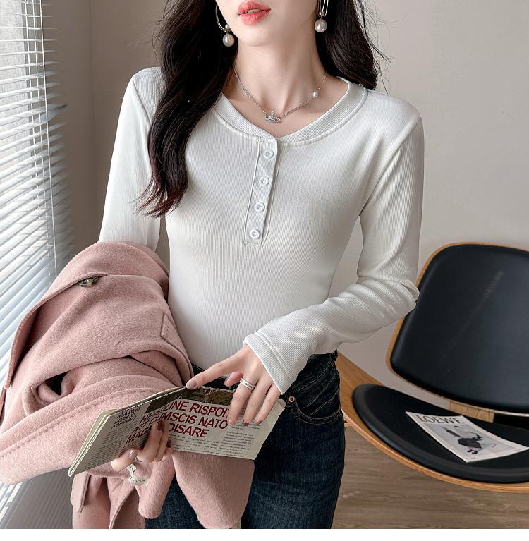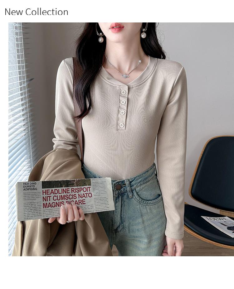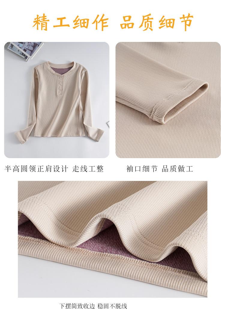 Camisa básica con forro polar para mujer, ropa abrigada de otoño e invierno, interior grueso, cuello redondo, manga larga, exterior, top de terciopelo de una pieza, ropa de otoño