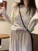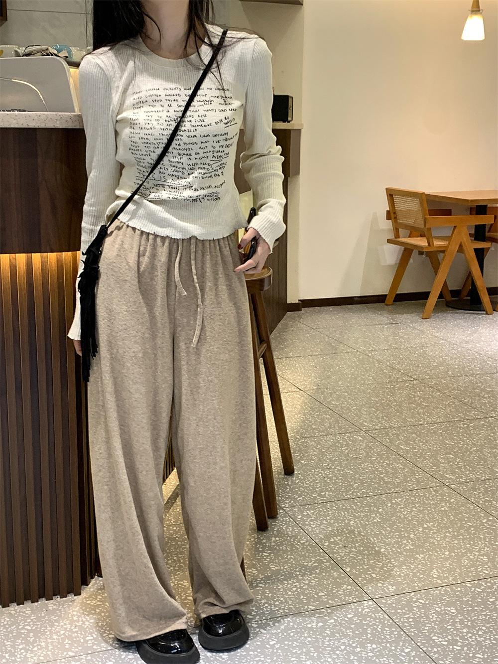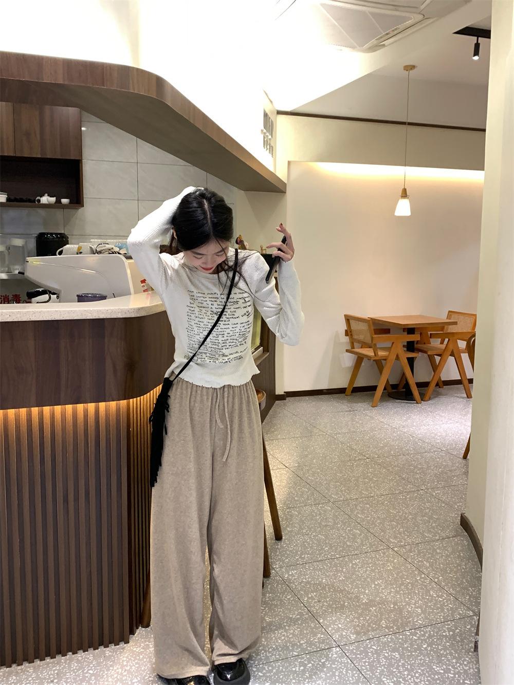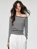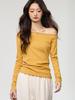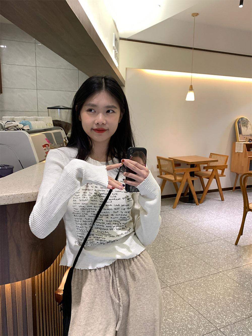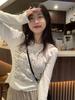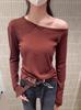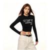 Camiseta de manga larga con estampado de letras y hombros descubiertos para mujer, estilo dulce y picante, corte entallado, color blanco, para otoño