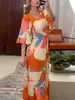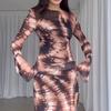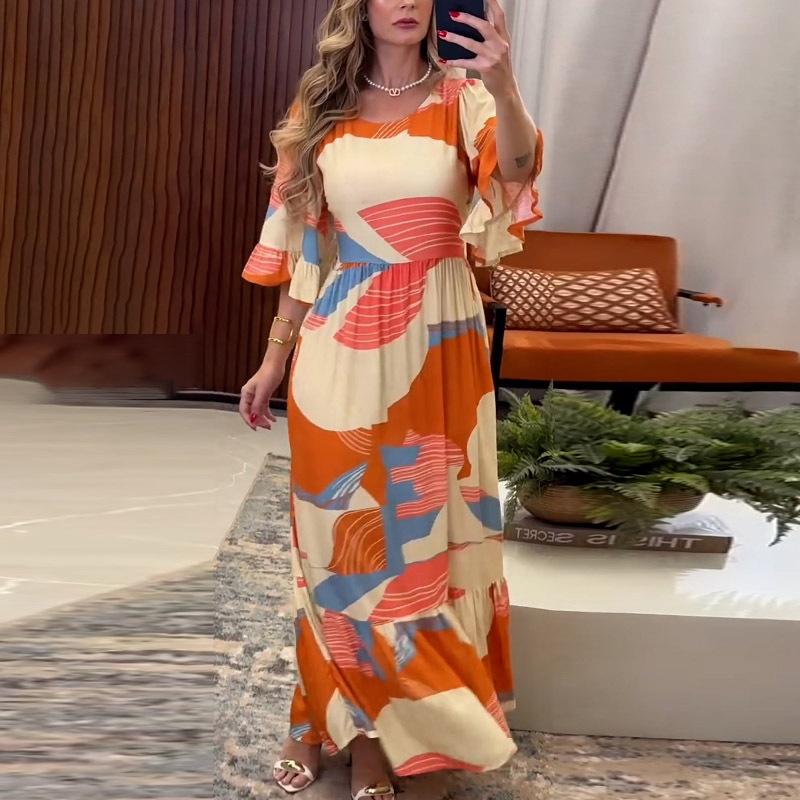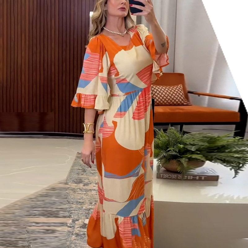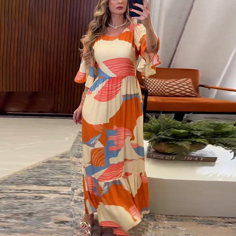 Vestido de verano para mujer, estilo europeo y americano, con cuello redondo, estampado, manga larga, corte entallado, a la moda, Amazon 2025