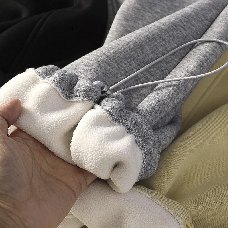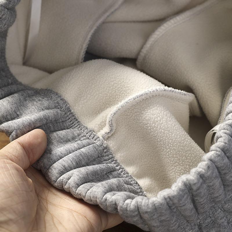 Este par de pantalones de chándal es realmente grueso, se siente pesado, a prueba de viento y cálido.