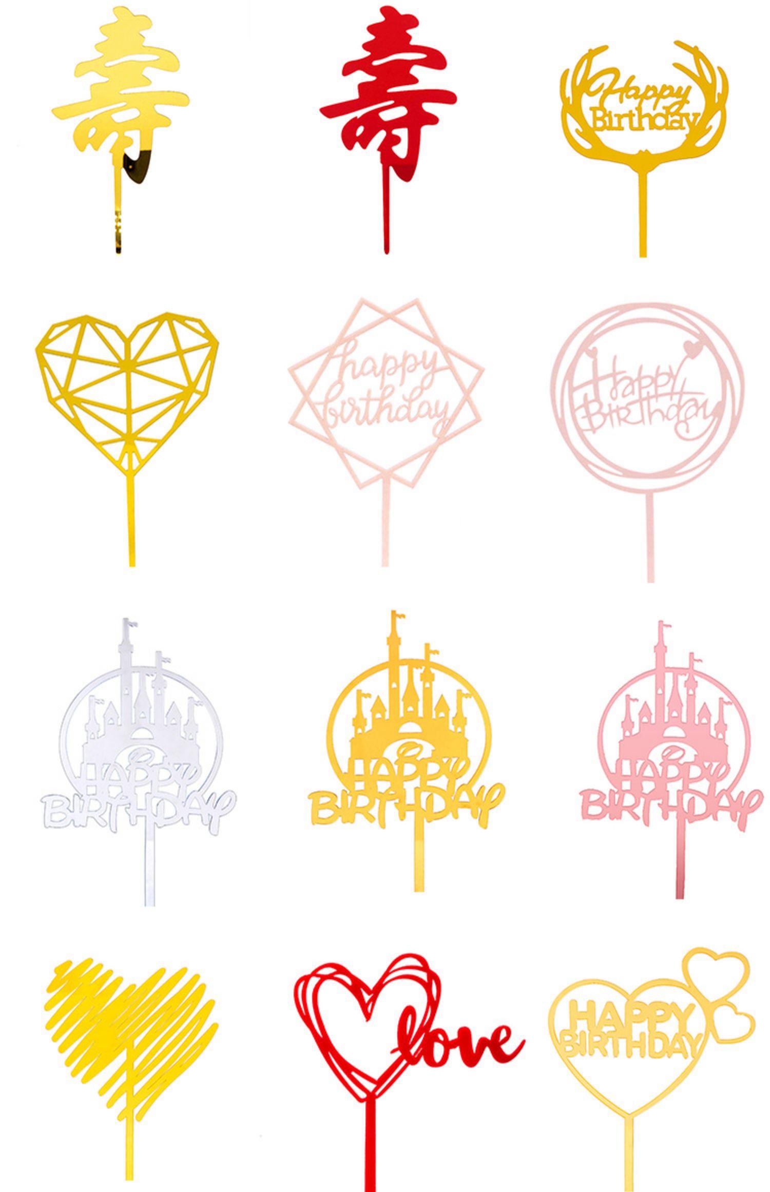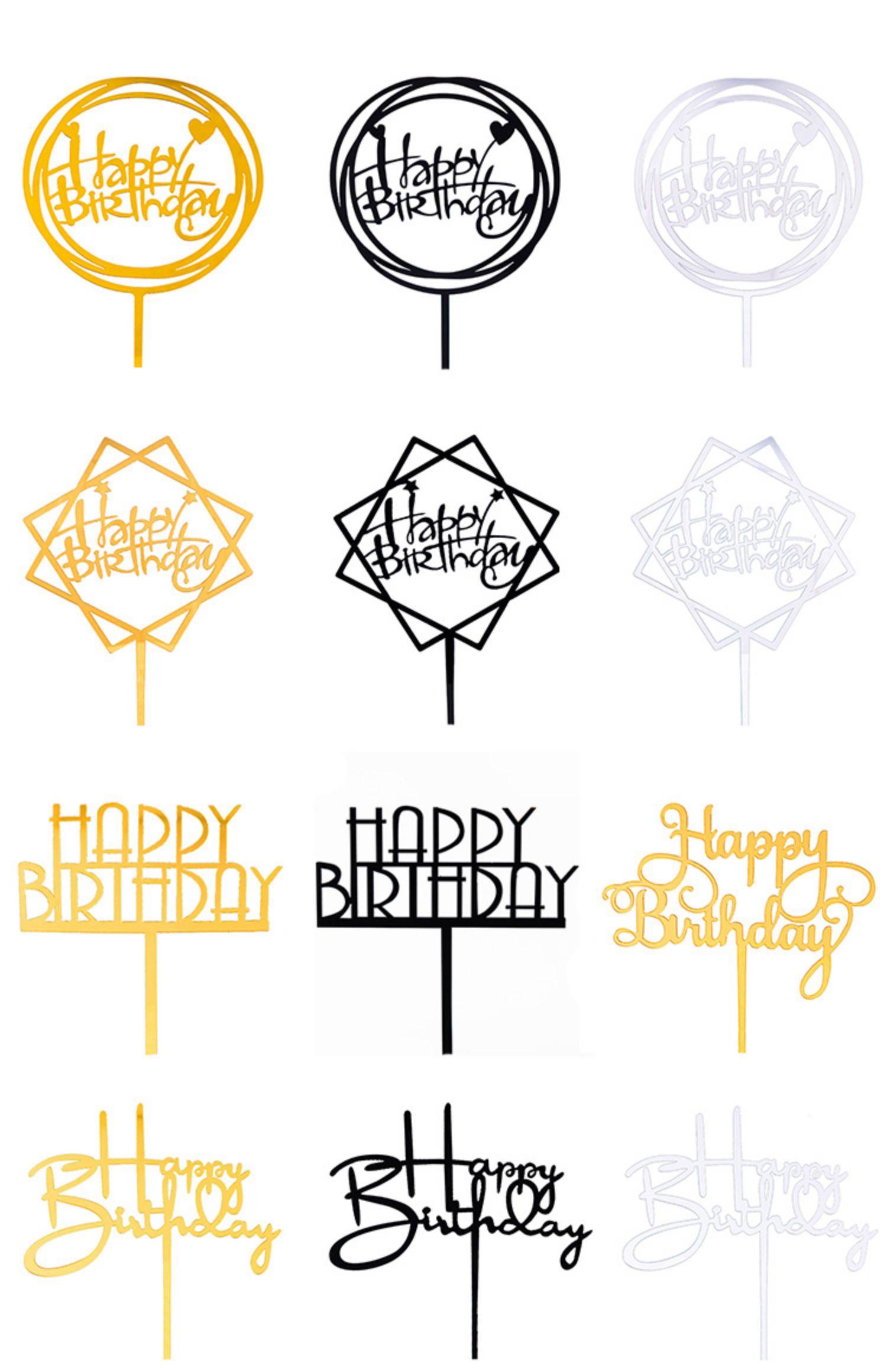50 Piezas de Tarjeta de Decoración de Pastel Acrílico Feliz Cumpleaños Bandera para Hornear Adornos Mesa de Postres Fiesta Nuevo Estilo