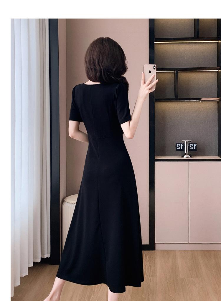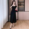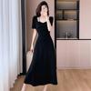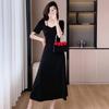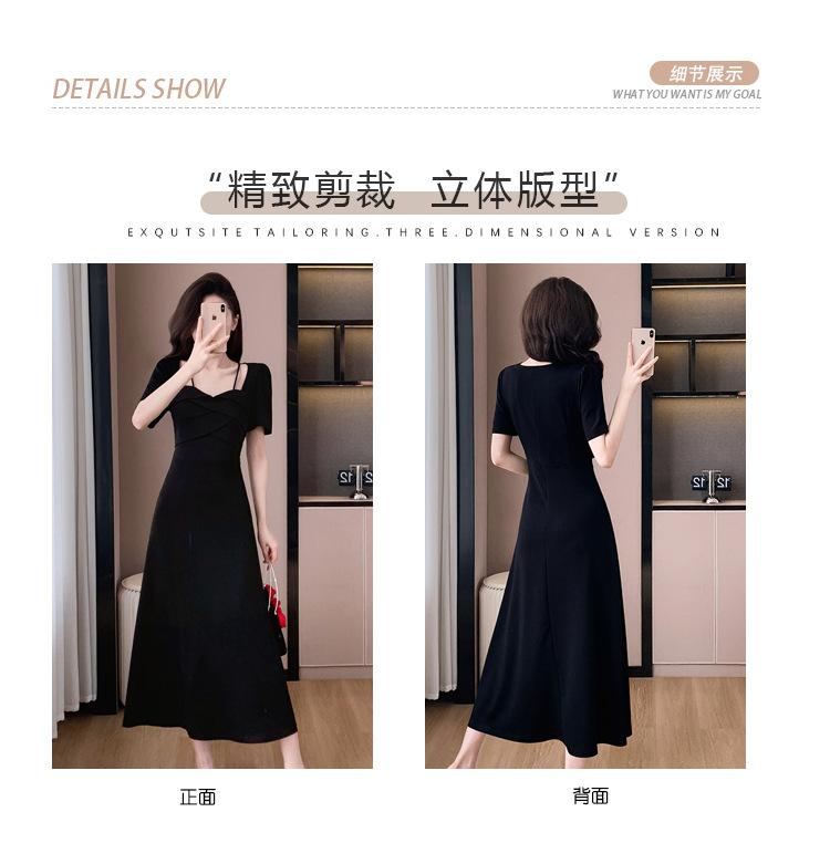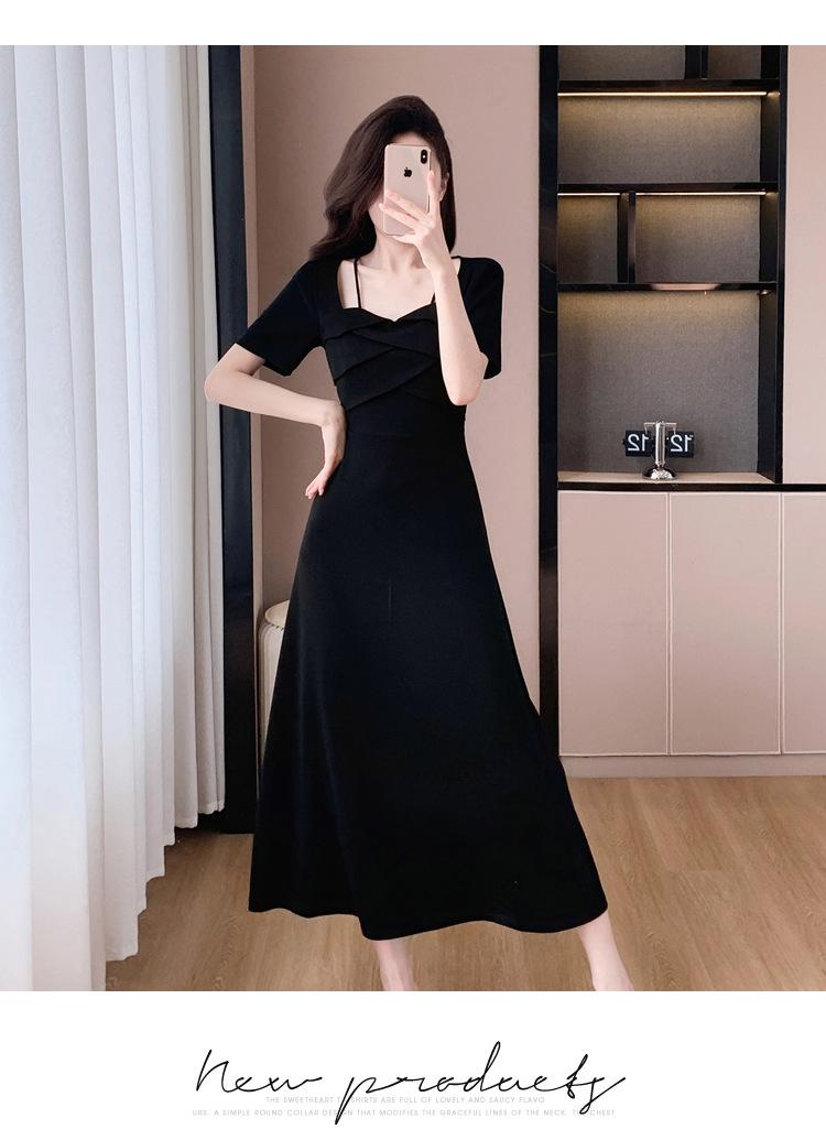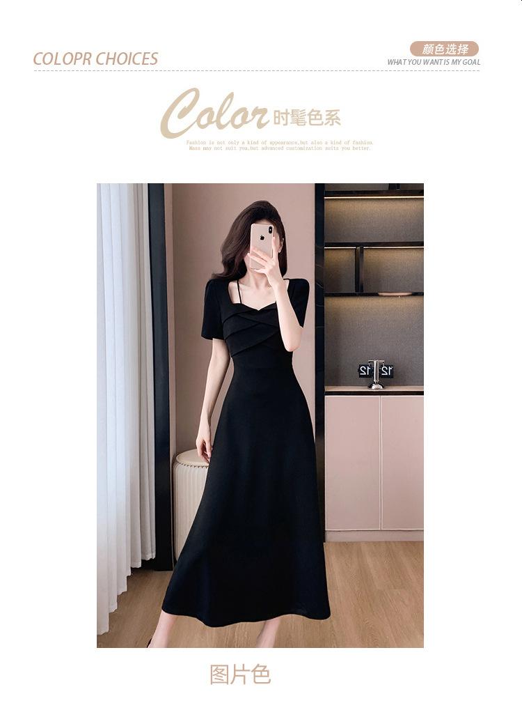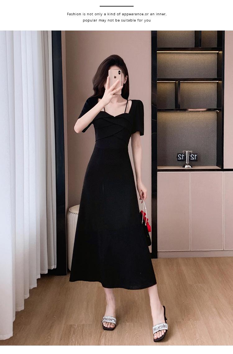 Vestido de verano de estilo coreano de alta calidad, estilo Hepburn, cuello francés, elegante, negro, ajustado, con diseño de tirantes.