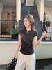 Camiseta de manga corta con hombros descubiertos, estilo americano, verano 2025, nueva camiseta ajustada con cuello cuadrado y escote en U grande.