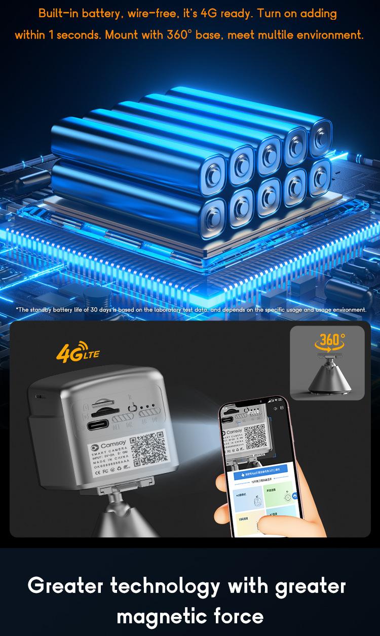 Cámara de vigilancia exterior 4G transfronteriza con WiFi magnético para el hogar, visión nocturna de ultra alta definición, inalámbrica, sin instalación.